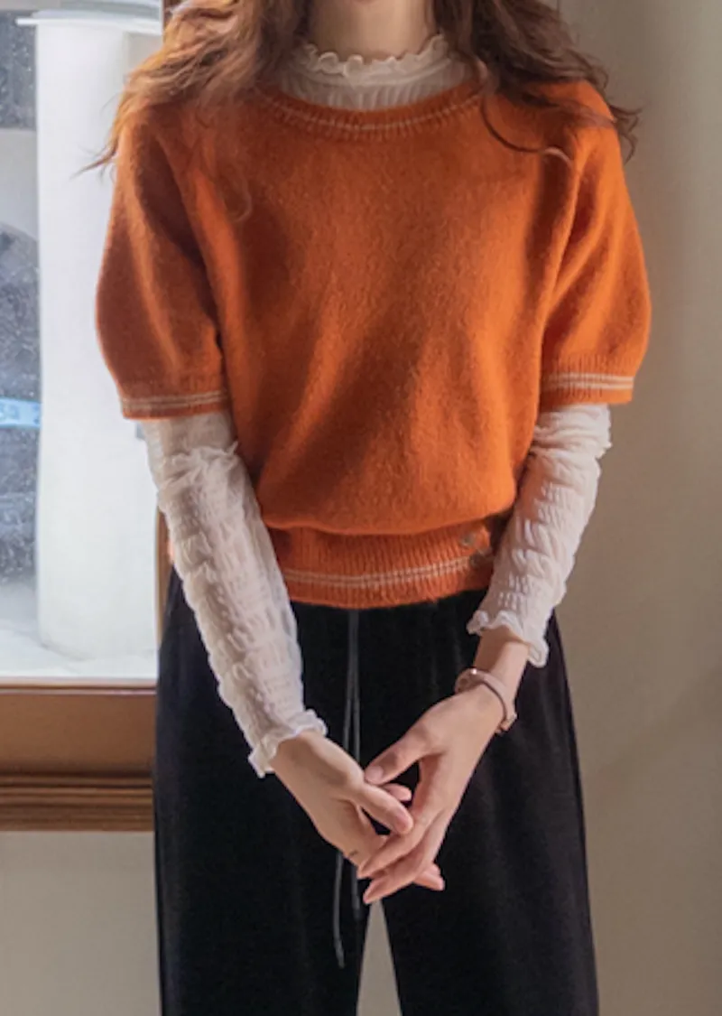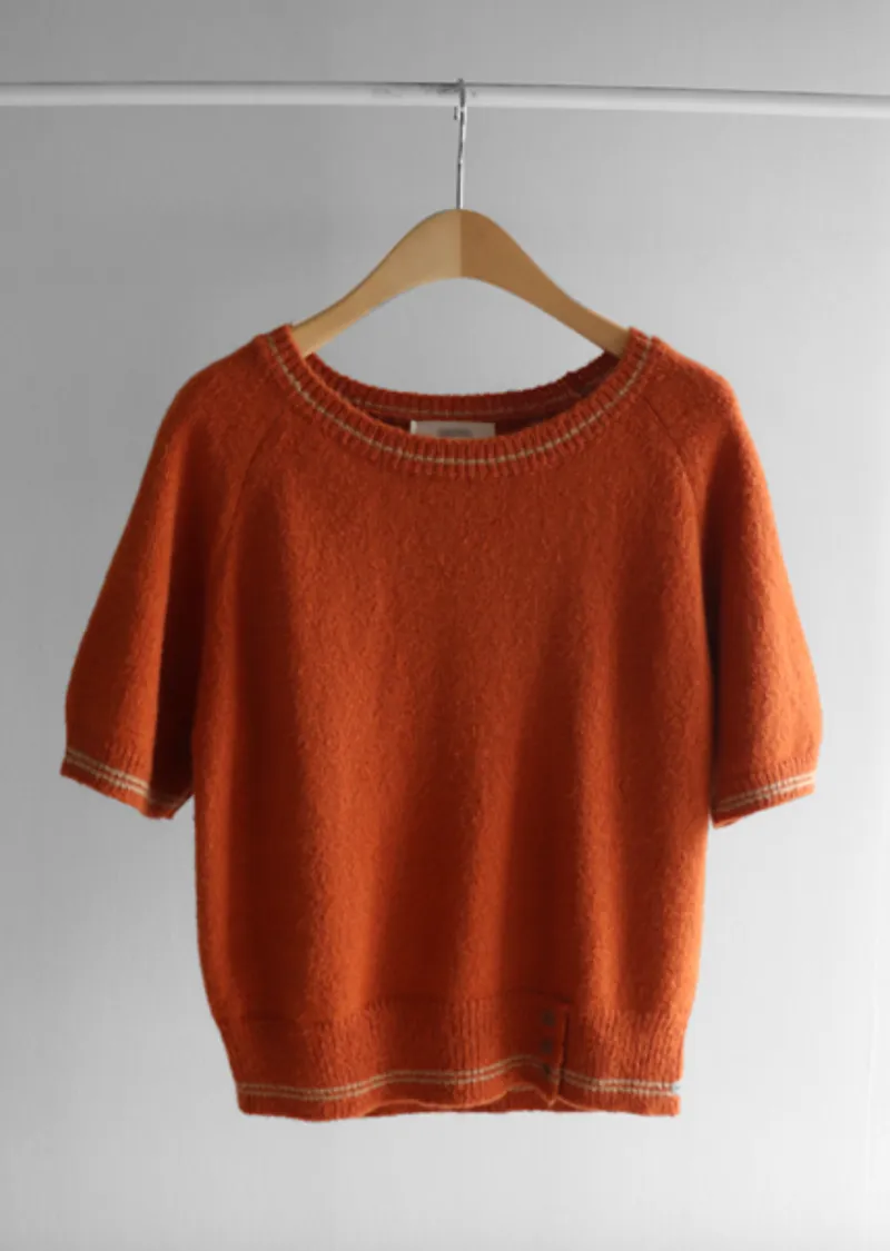【羊毛材質,穿著舒適♥】【線條設計,時尚感十足! 】【三鈕扣設計,休閒時尚】【適合疊穿的短袖上衣~】