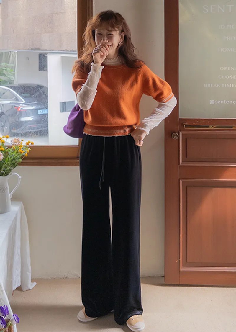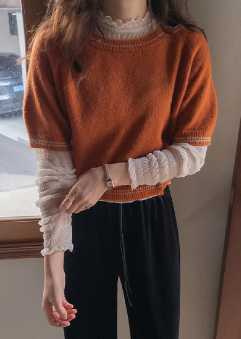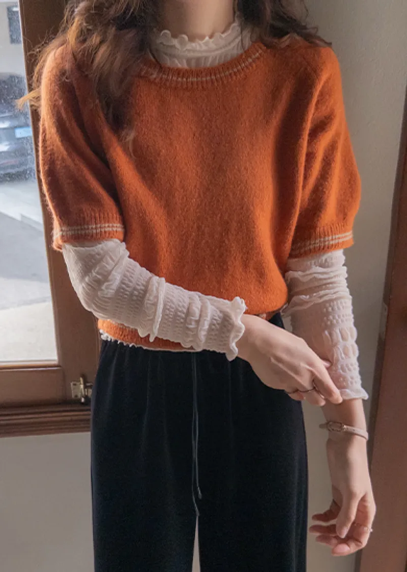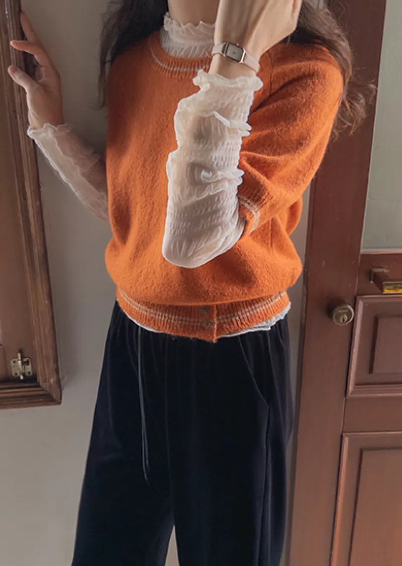 可愛微妙蕾絲線條波浪邊半高領內搭透膚上衣