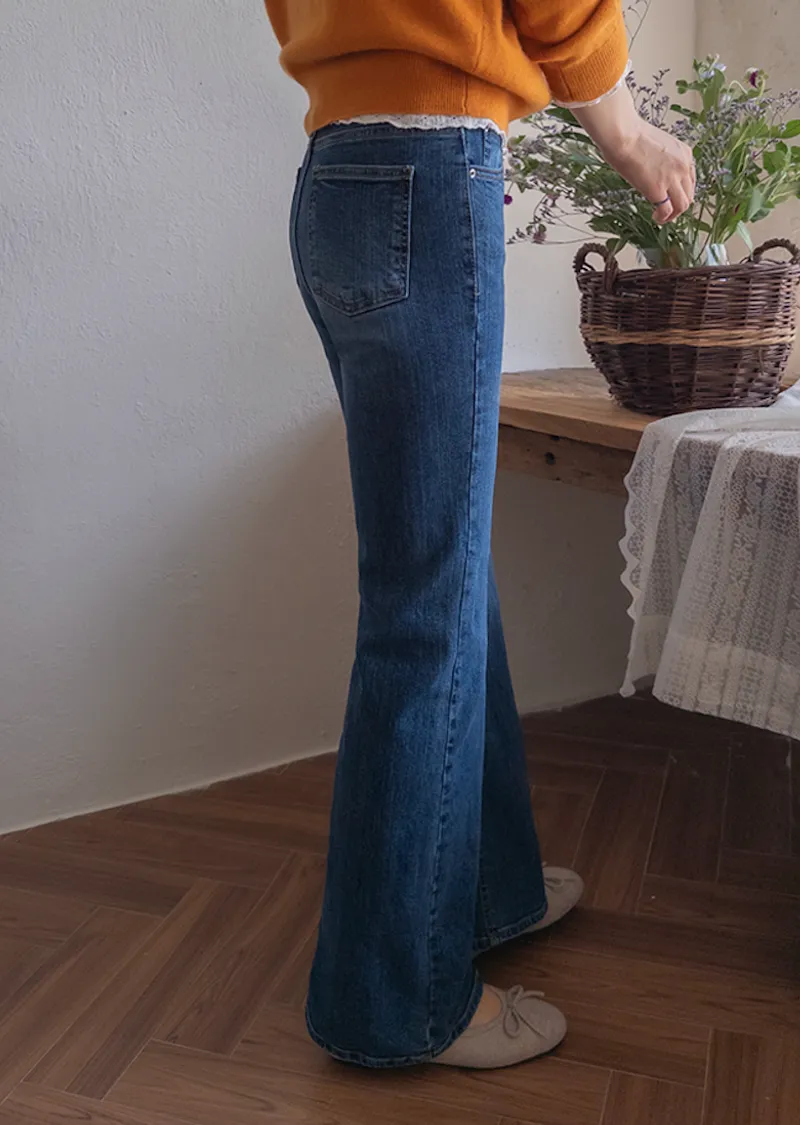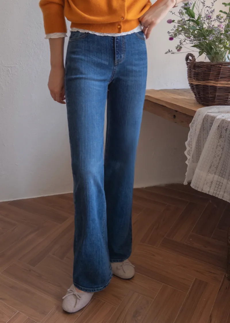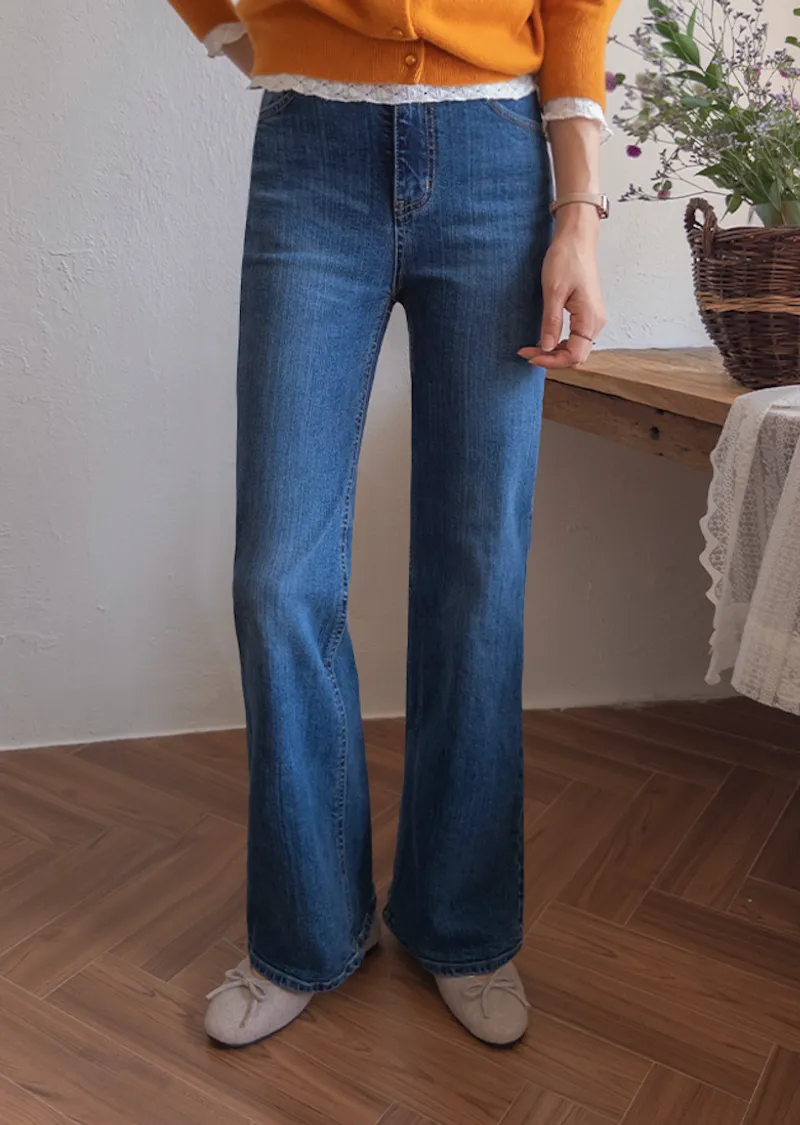 【高級感十足的垂直斜紋牛仔褲】 【零負擔! !標準靴行褲型】 【哇! !超彈性褲型】 【修身版型】