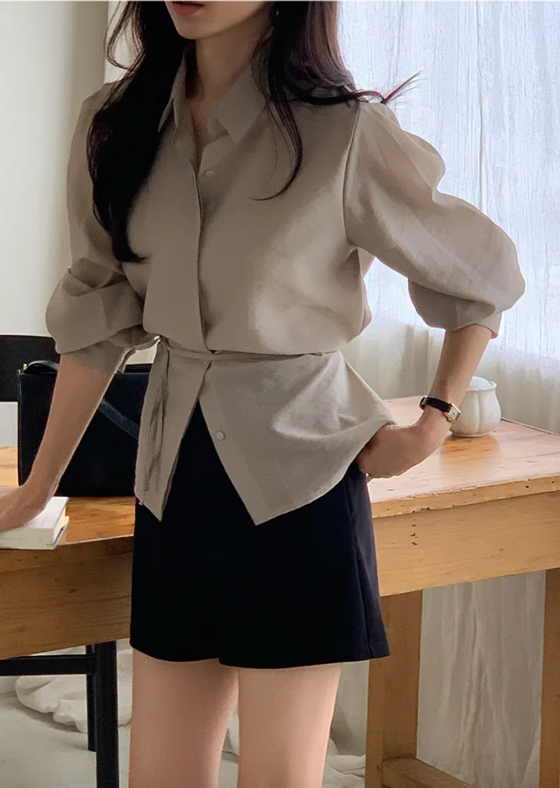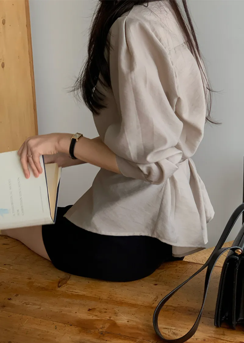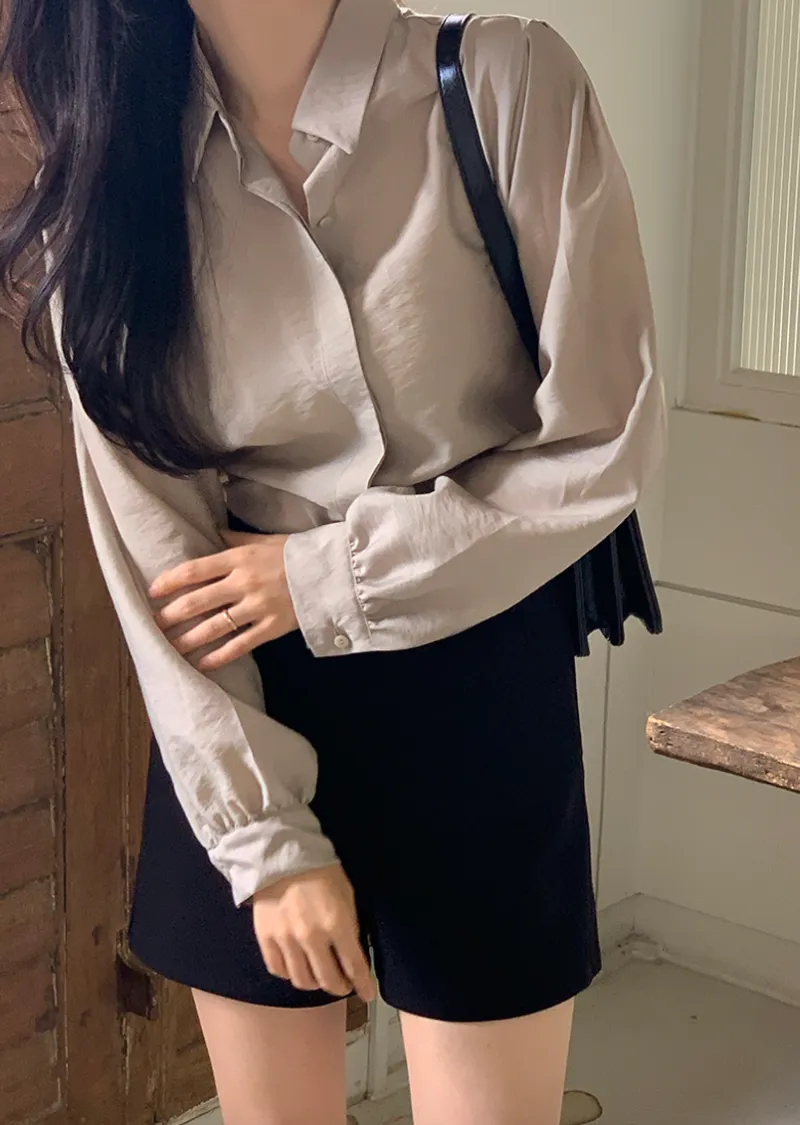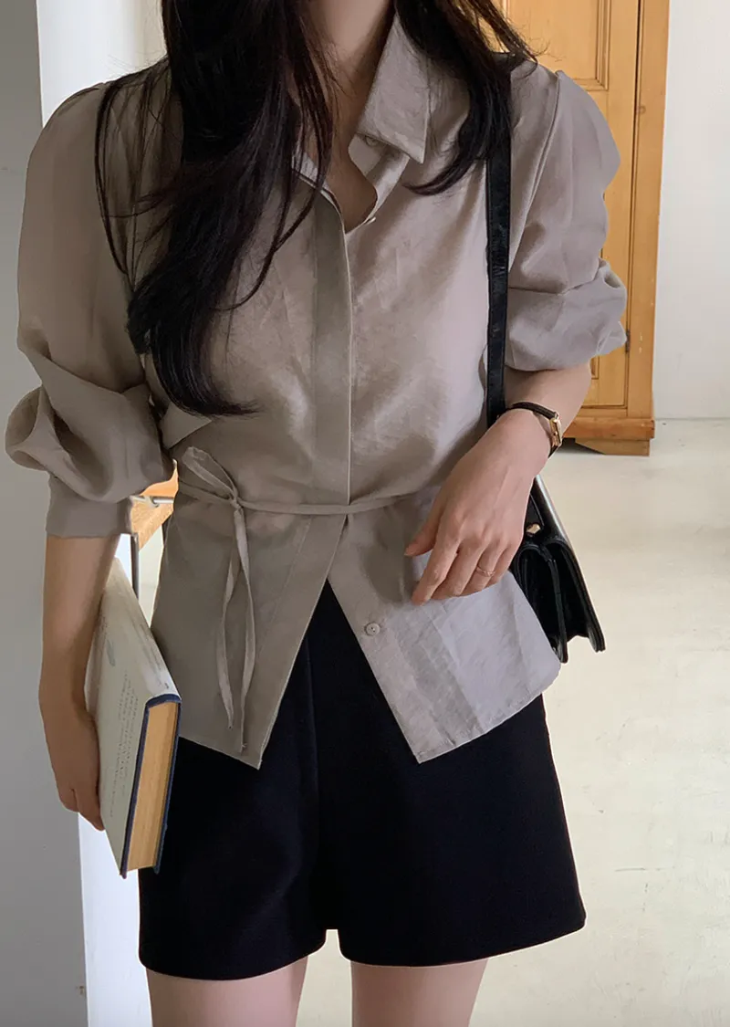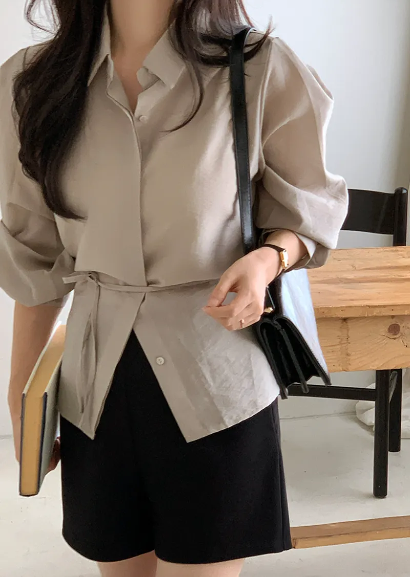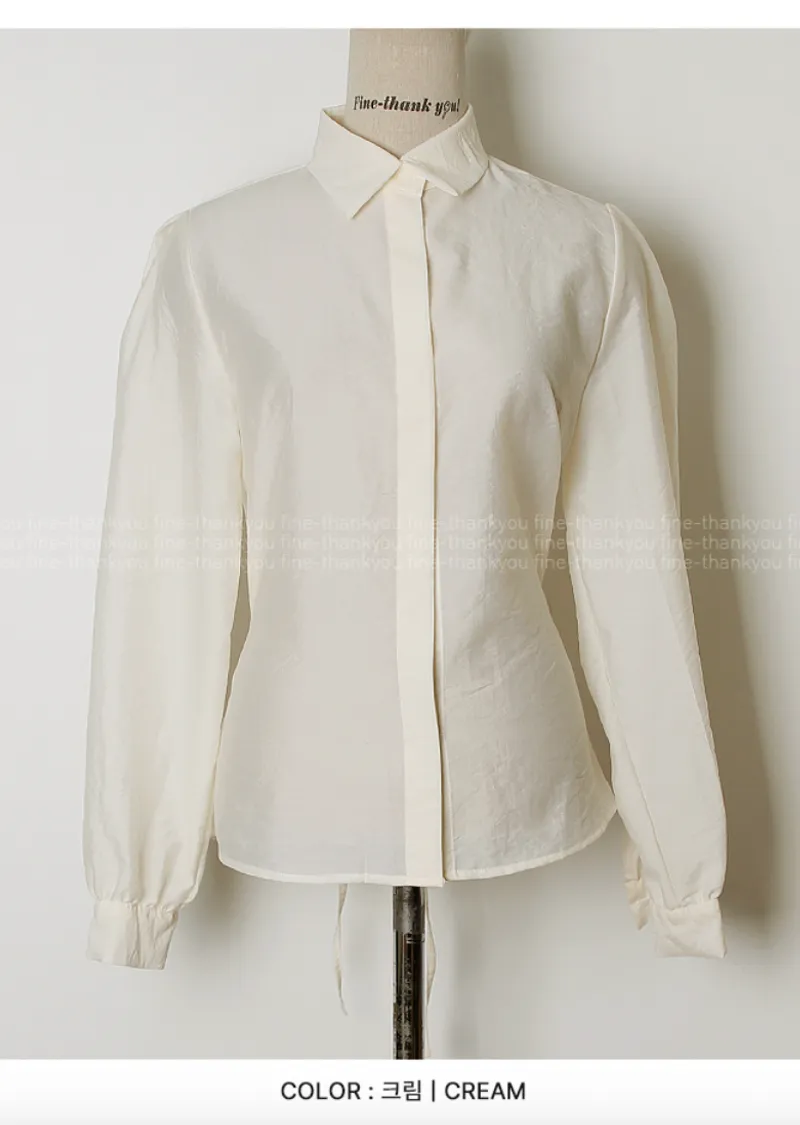 具有現代和女性氣息的襯衫 !整齊的領口細節很整潔,泡泡袖增添了女性魅力♡材料具有微妙的光澤,對材料賦予的女性氣質非常滿意:)側面的肩帶強調了腰線, 營造出更女性化的輪廓 ,還賦予它現代感 ,可以在工作、婚禮嘉賓造型和正式造型中穿著它 :)