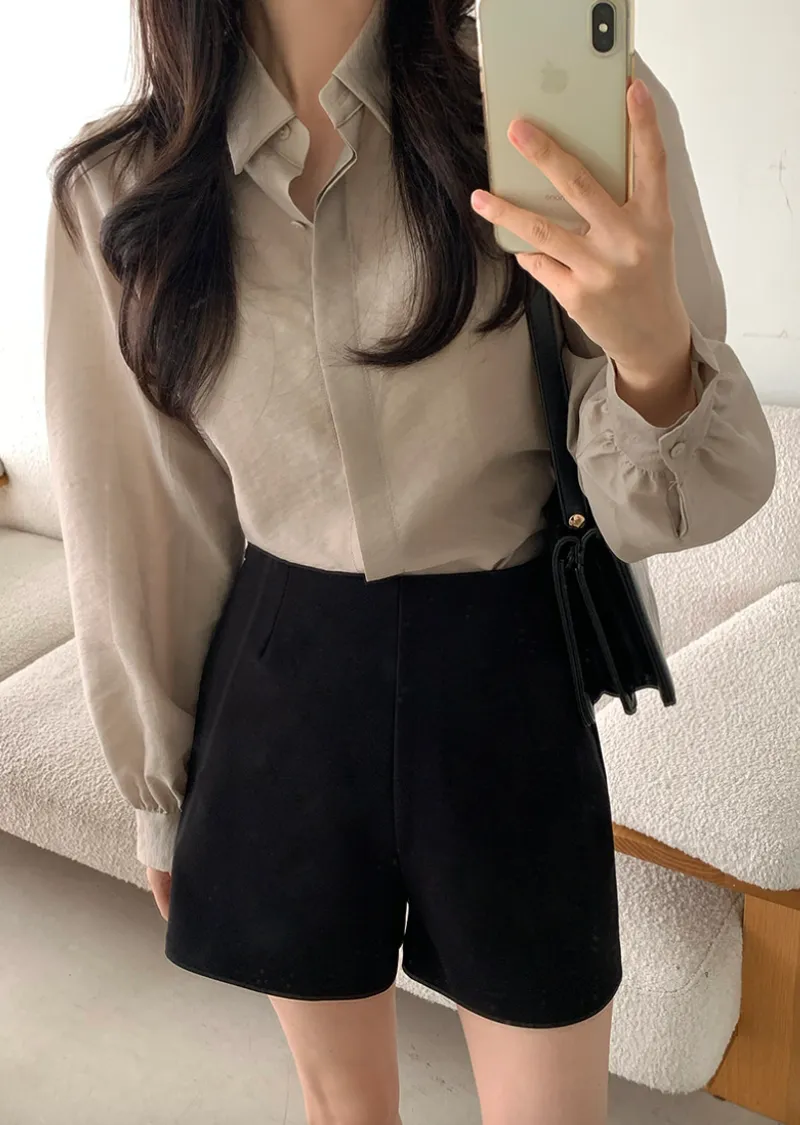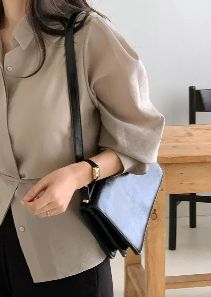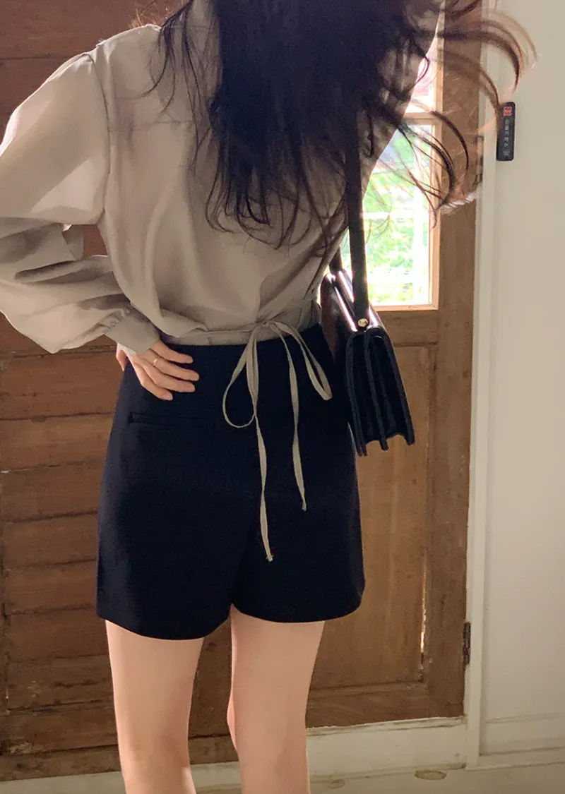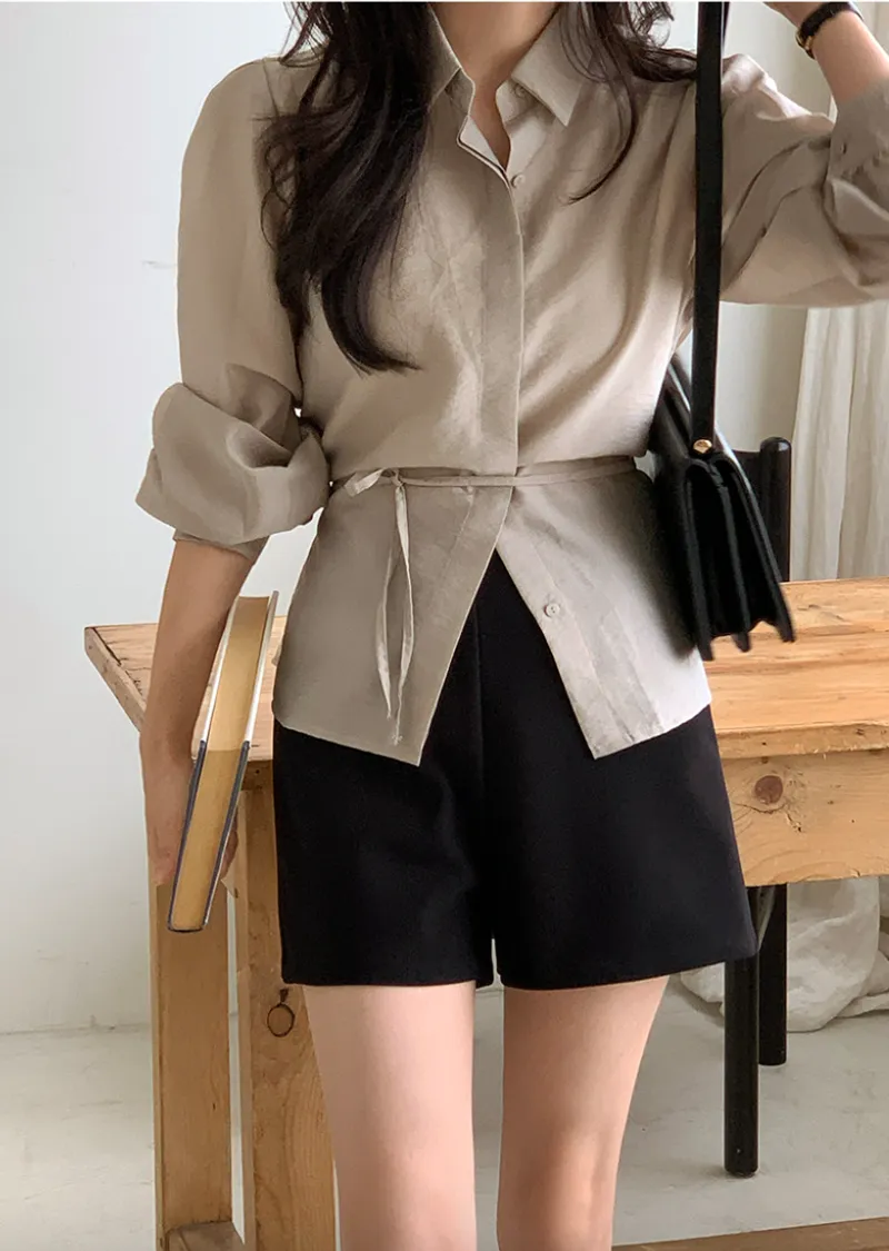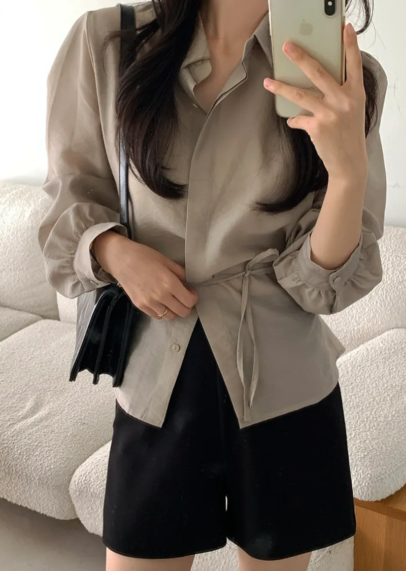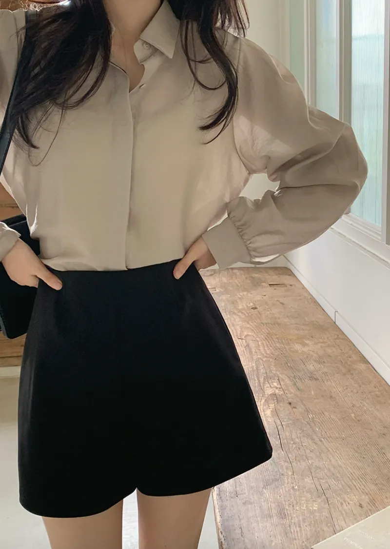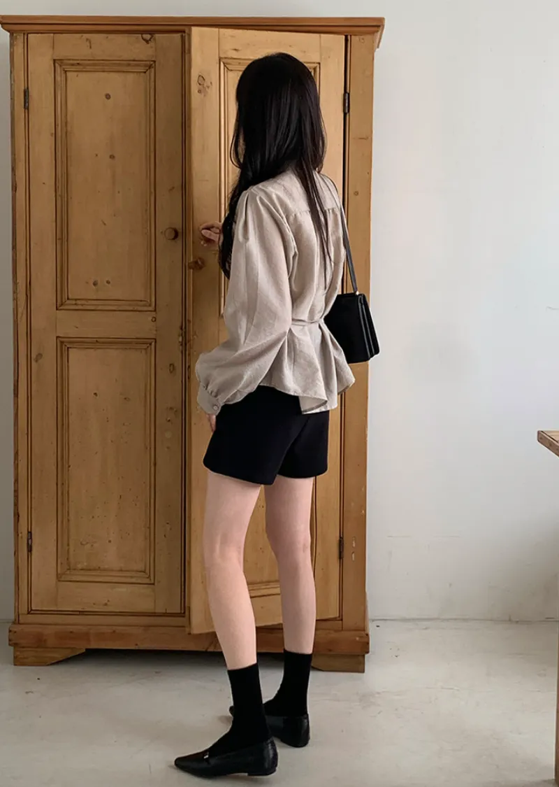 具有現代和女性氣息的襯衫 !整齊的領口細節很整潔,泡泡袖增添了女性魅力♡材料具有微妙的光澤,對材料賦予的女性氣質非常滿意:)側面的肩帶強調了腰線, 營造出更女性化的輪廓 ,還賦予它現代感 ,可以在工作、婚禮嘉賓造型和正式造型中穿著它 :)
