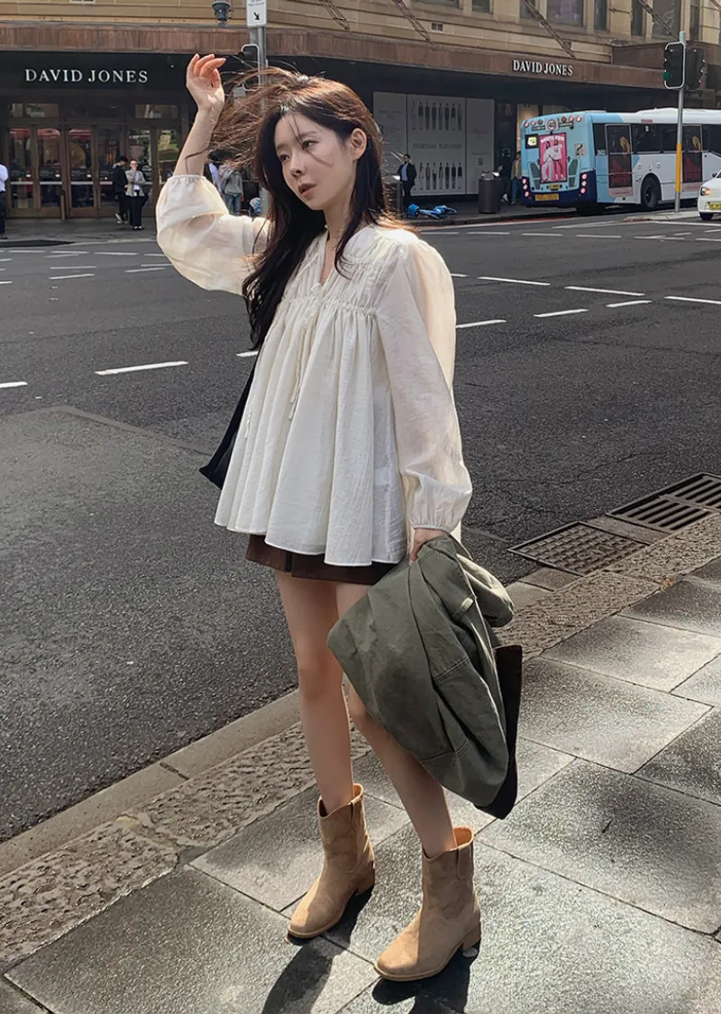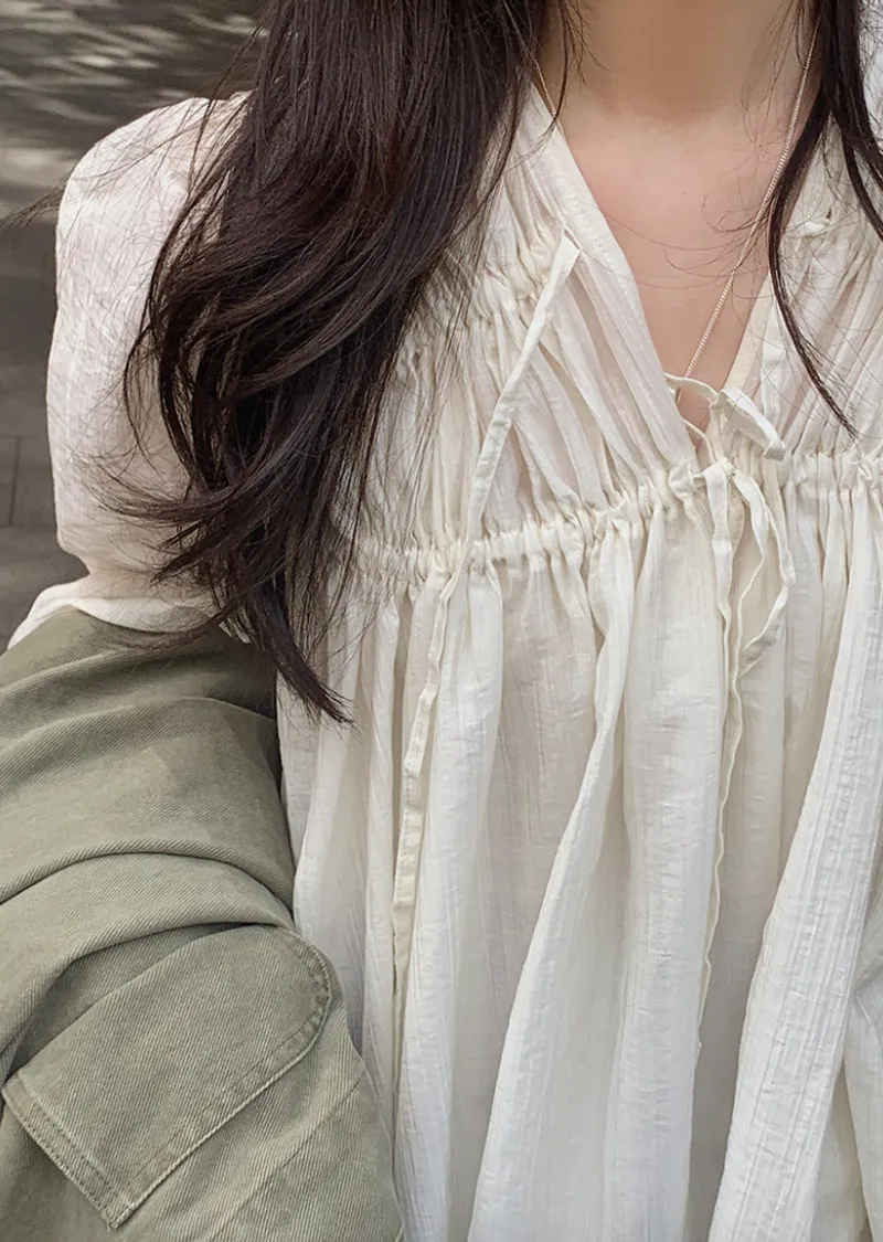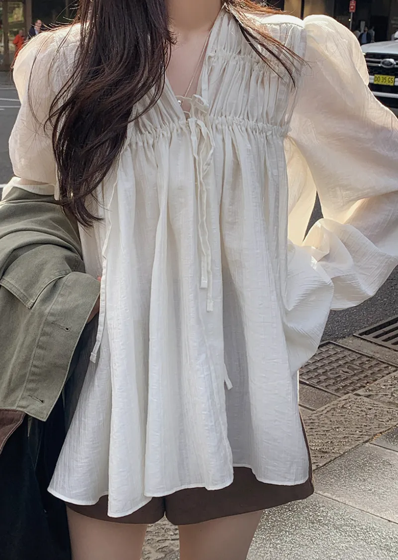 可愛復古輪廓褶皺綁帶傘擺上衣