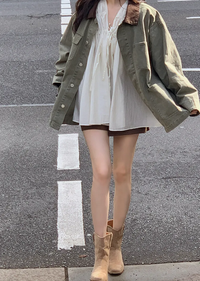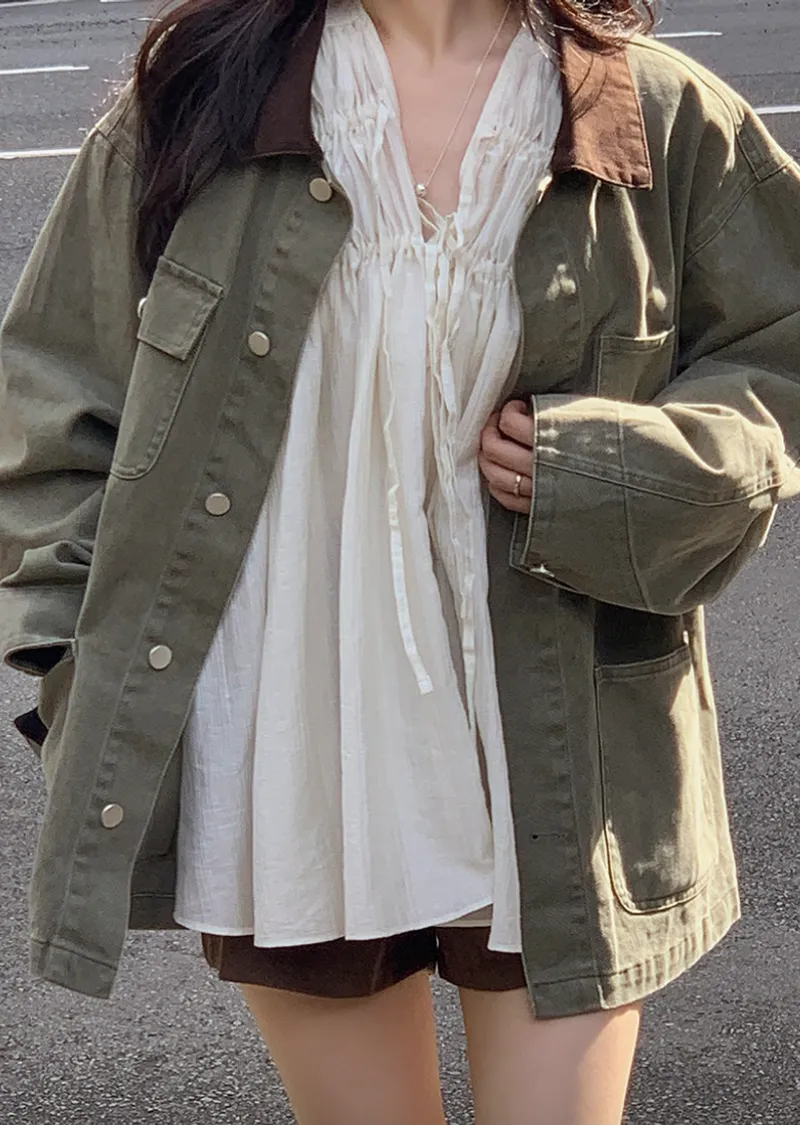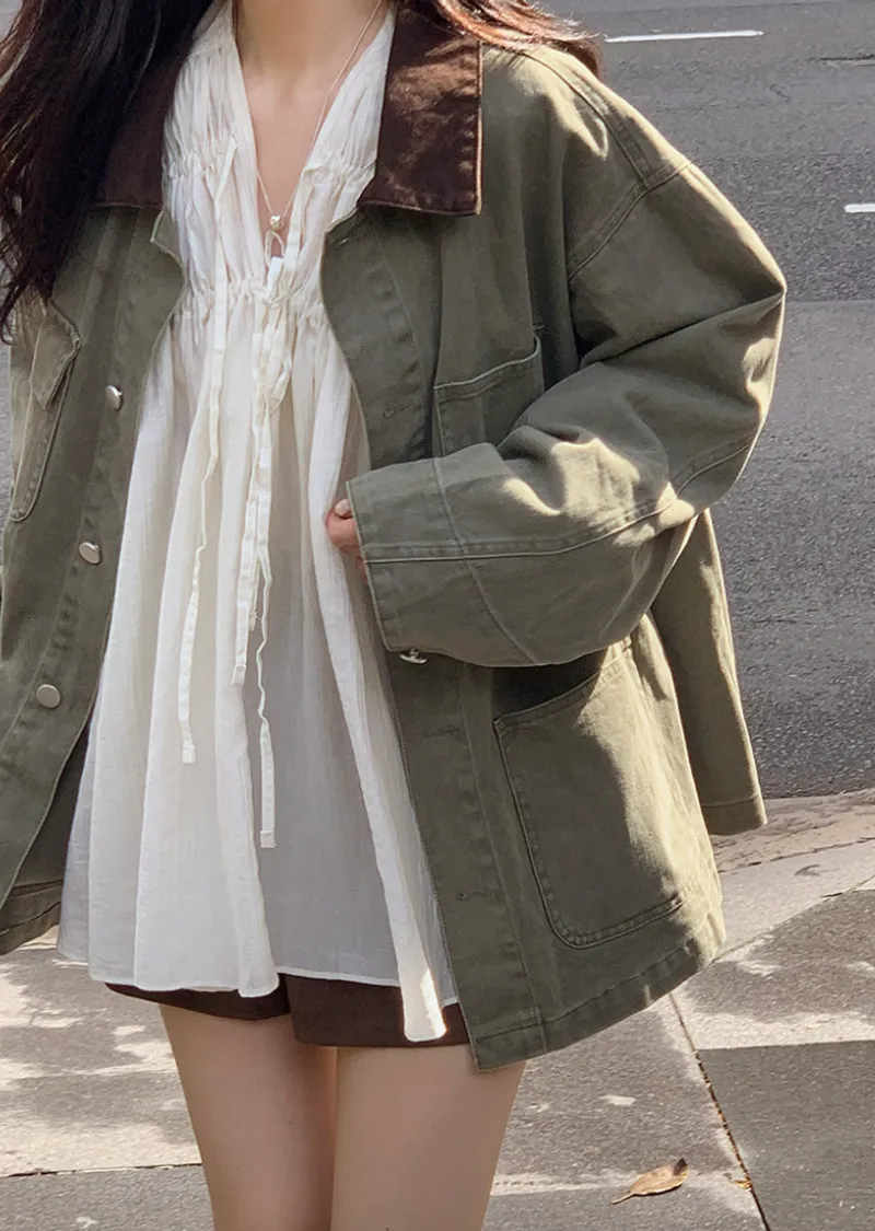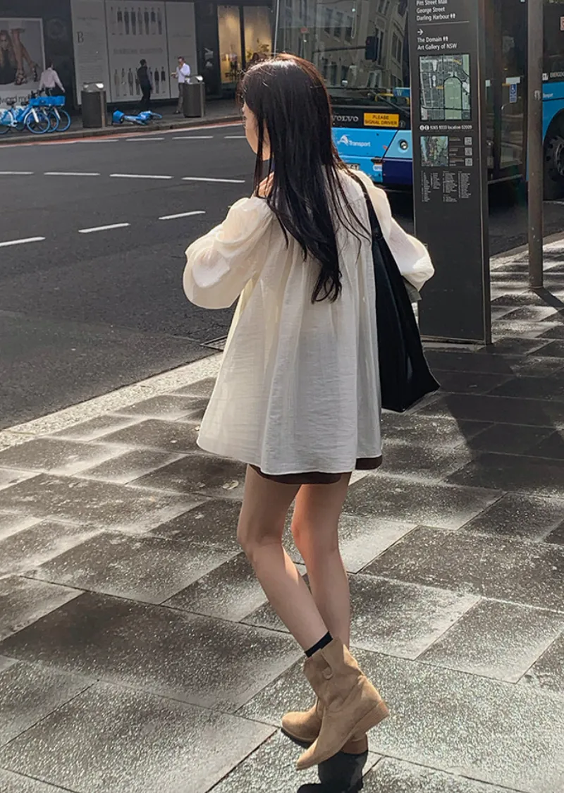 可愛復古輪廓褶皺綁帶傘擺上衣