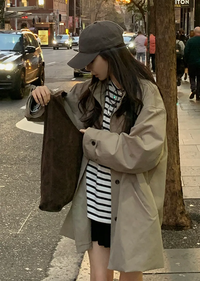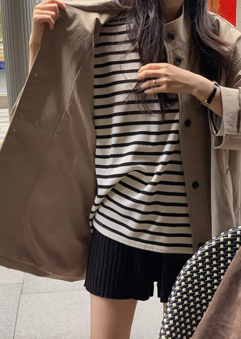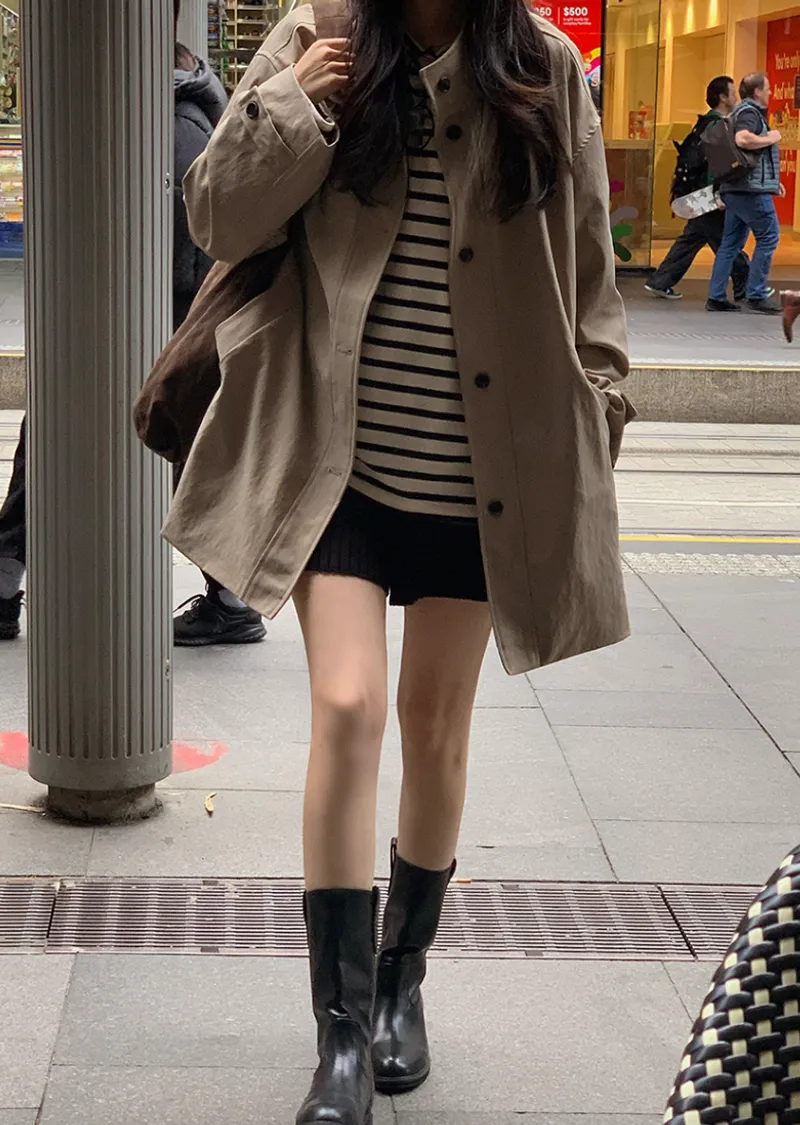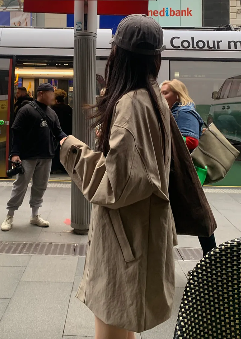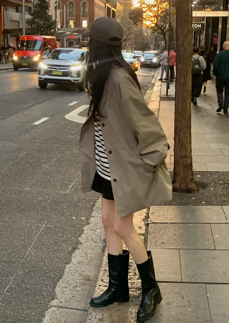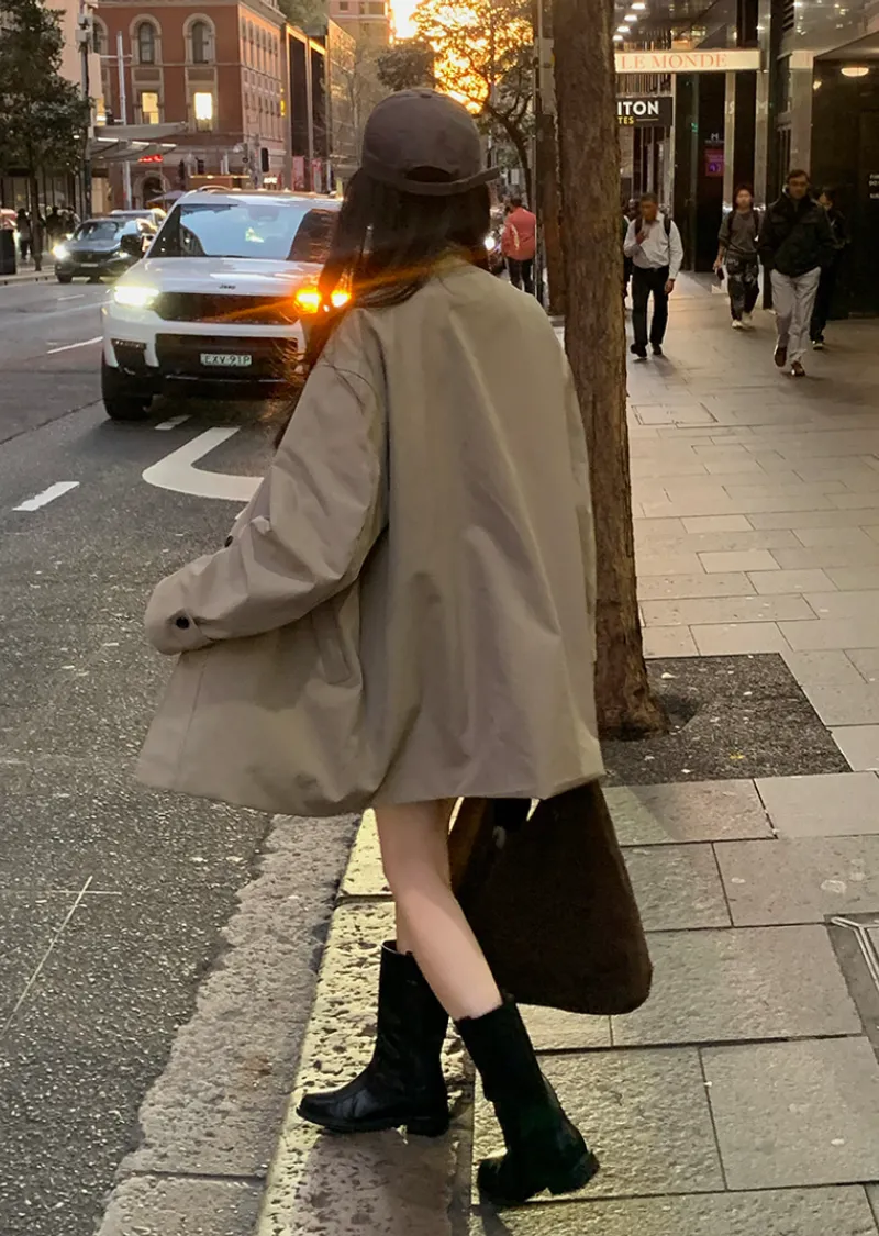 一件休閒的外套:)寬鬆的版型,長度蓋過臀部,適合任何身材!是換季時的絕佳外套。口袋提供充足的儲物空間和實用性,跳色的開合紐扣更增添了一絲微妙的質感 :)像風衣一樣沙沙作響的材質非常適合寒冷多風的日子,略高的領口設計讓它成為溫差較大的換季時必備單品 ,遮蓋頸部。看起來像是夾克和大衣混合的設計,顏色柔和,非常適合秋冬季節的日常穿著 :)