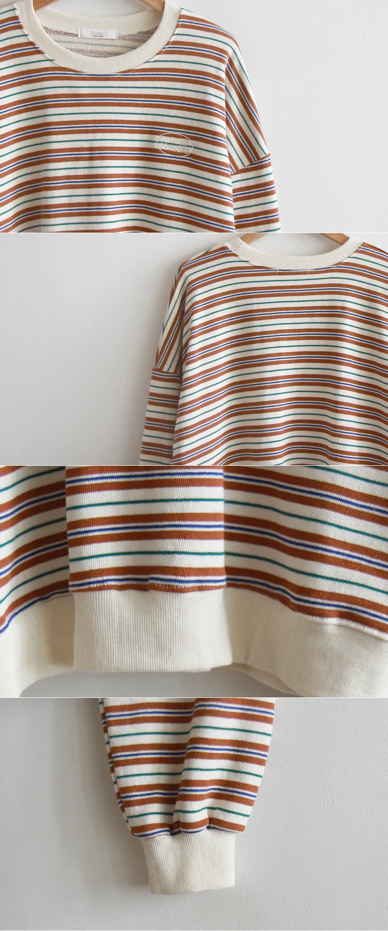 【舒適的棉質布料】【以字母刺繡為亮點,非常適合秋季的棉質上衣】【時尚色彩和條紋圖案,盡顯時尚感】【作為百搭的秋季上衣,穿著舒適,可進行多種造型穿搭】