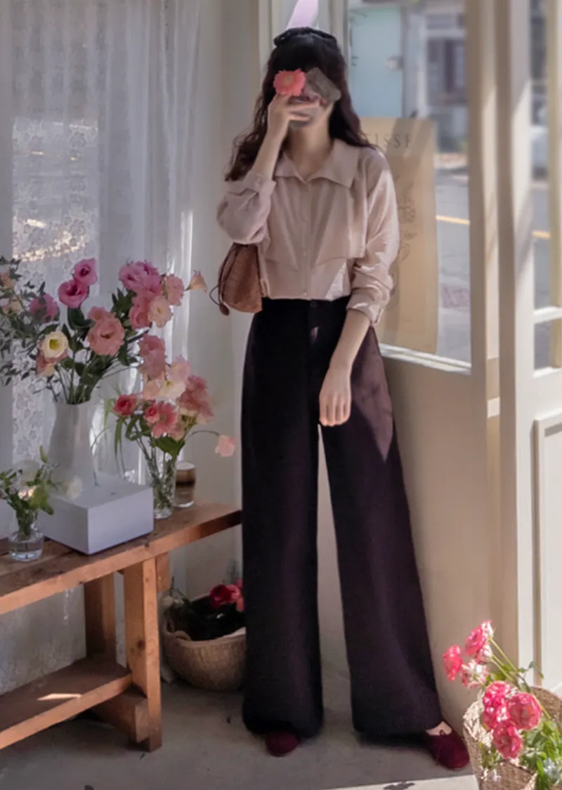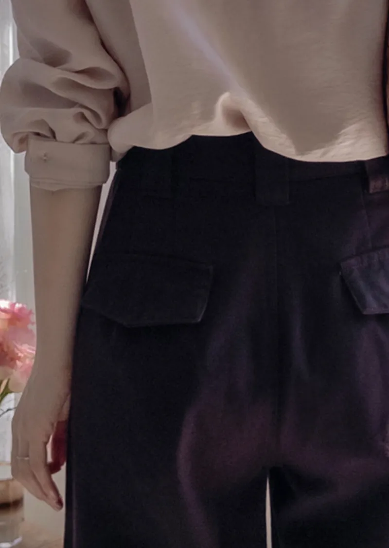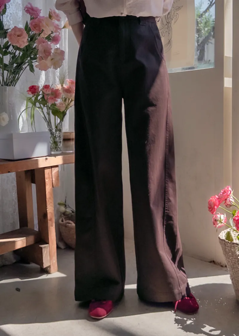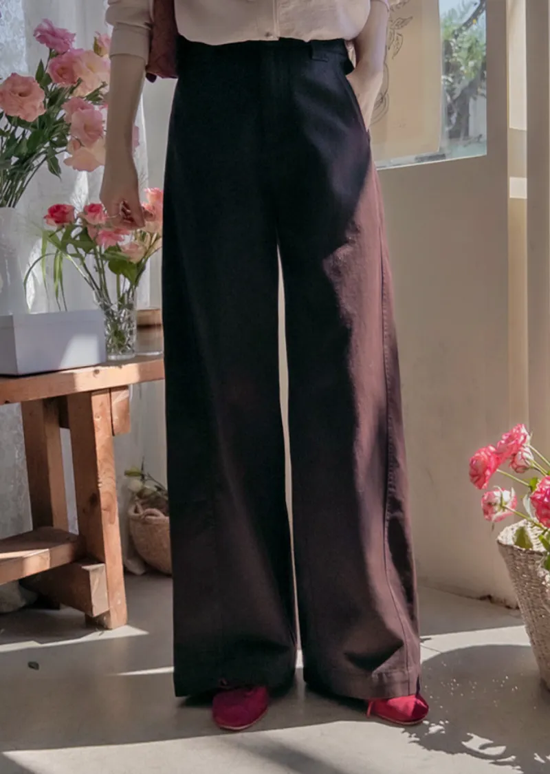【品牌品質】【含天絲15的柔軟面料】【舒適靈活的版型】【半寬版型褲子,剪裁引人注目】【柔軟的面料,寬鬆版型,非常適合秋季穿著】【舒適的貼邊設計,推薦秋季穿搭褲子】