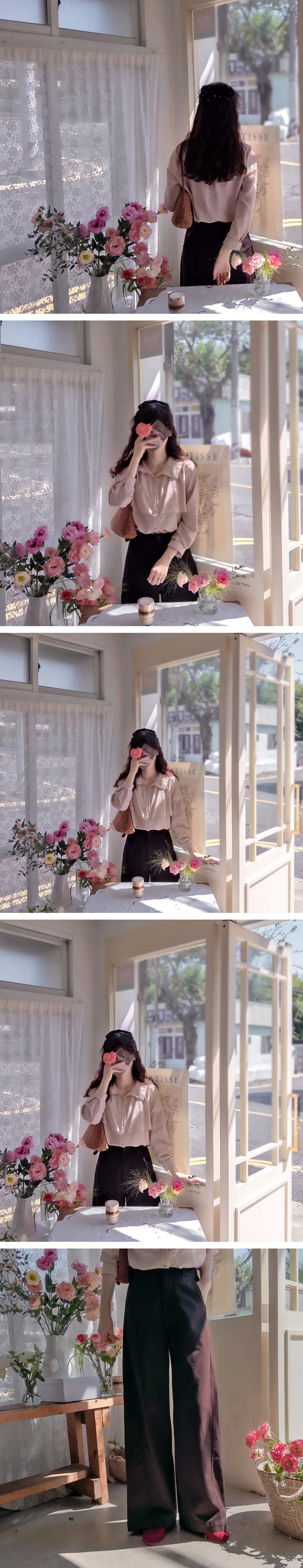 漂亮點綴袖末鏤空刺繡圓點點上衣