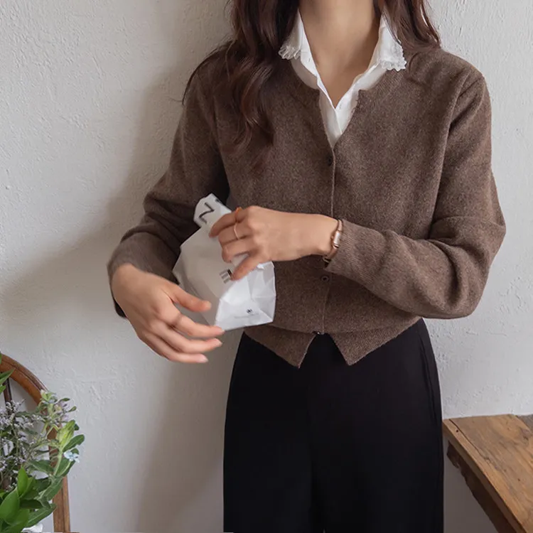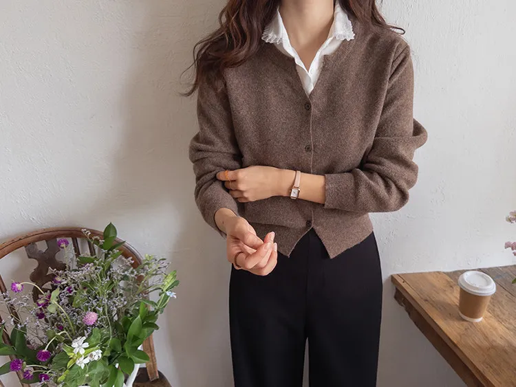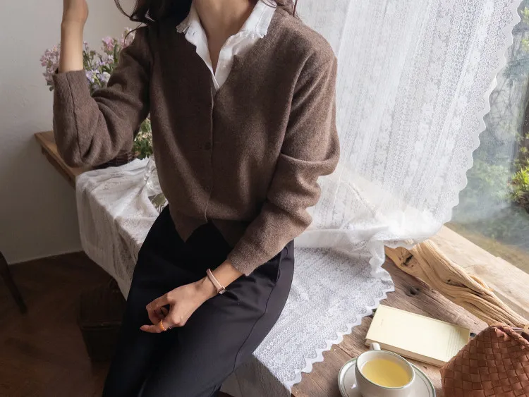設計感圓V領柔軟舒適開衫