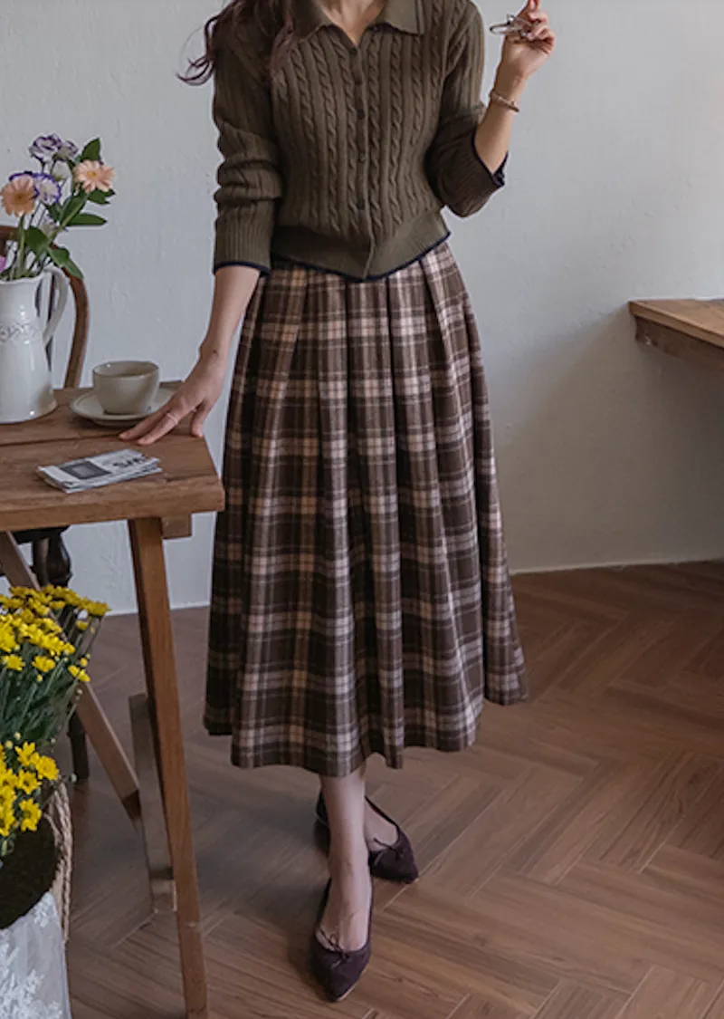 格紋,提升收藏價值-! ] [長傘擺形廓形,完美包覆身體] [後背彈性帶設計,舒適貼合^^]