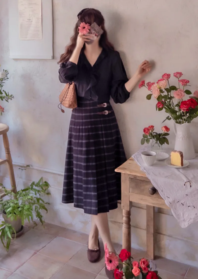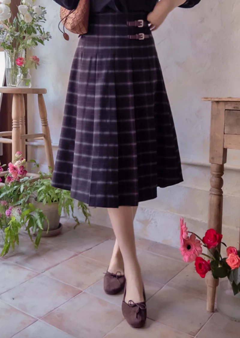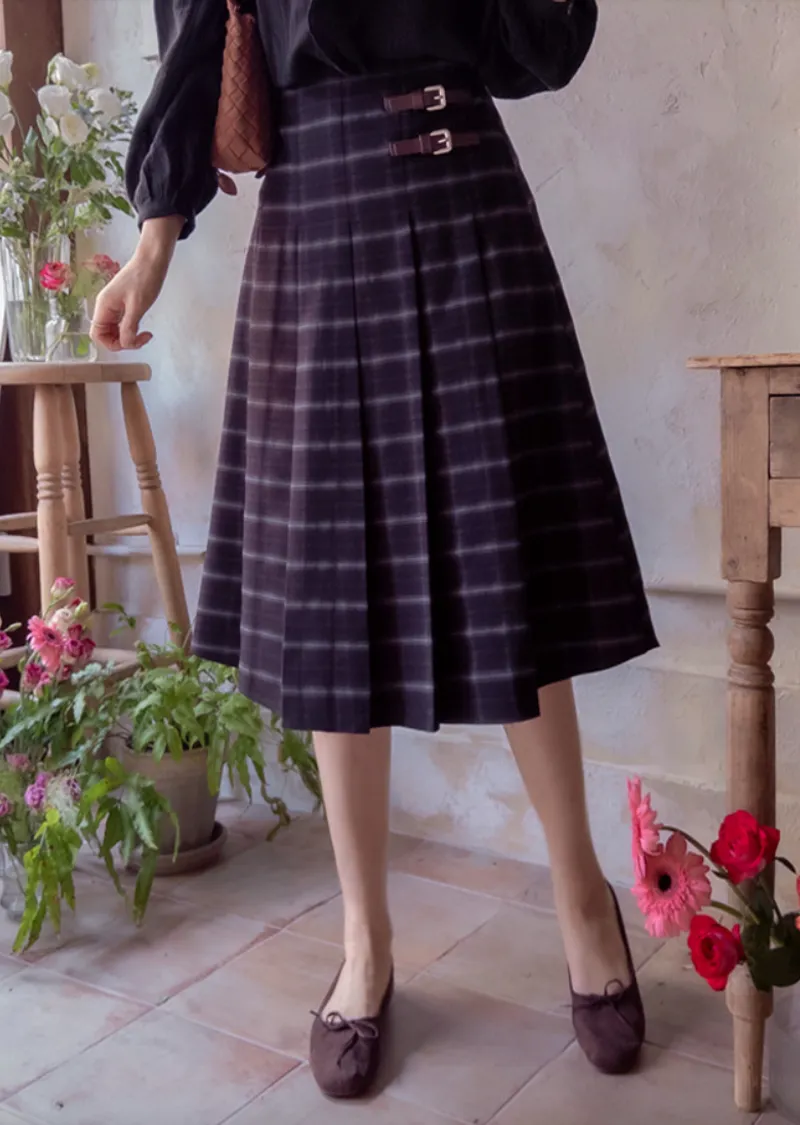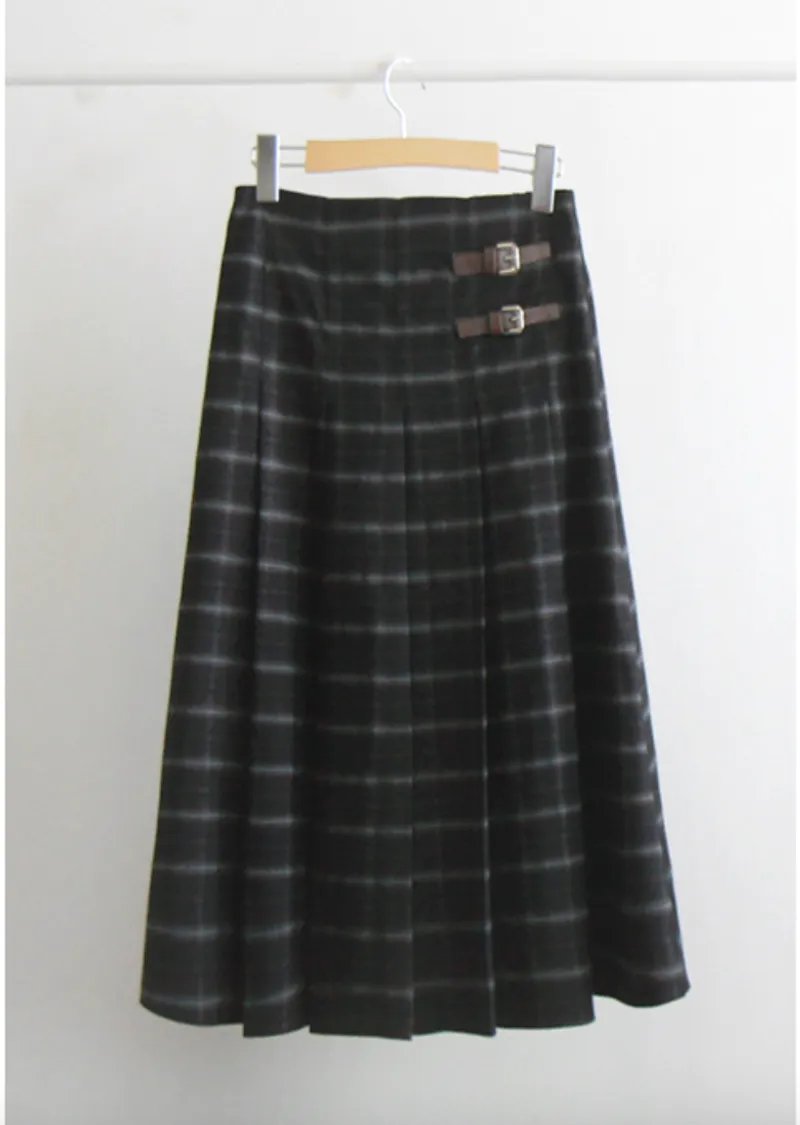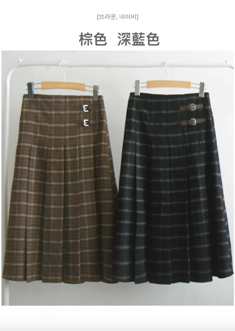 [聚酯纖維內襯] [後彈性帶] [後拉鍊] [柔軟的面料,充滿秋天的氣息] [腰扣裝飾營造出獨特的氛圍] [褶皺設計營造出貼身的下擺] [格紋裙,配色精緻] [非常適合秋季搭配的裙子] [作為時尚當季的裙子]