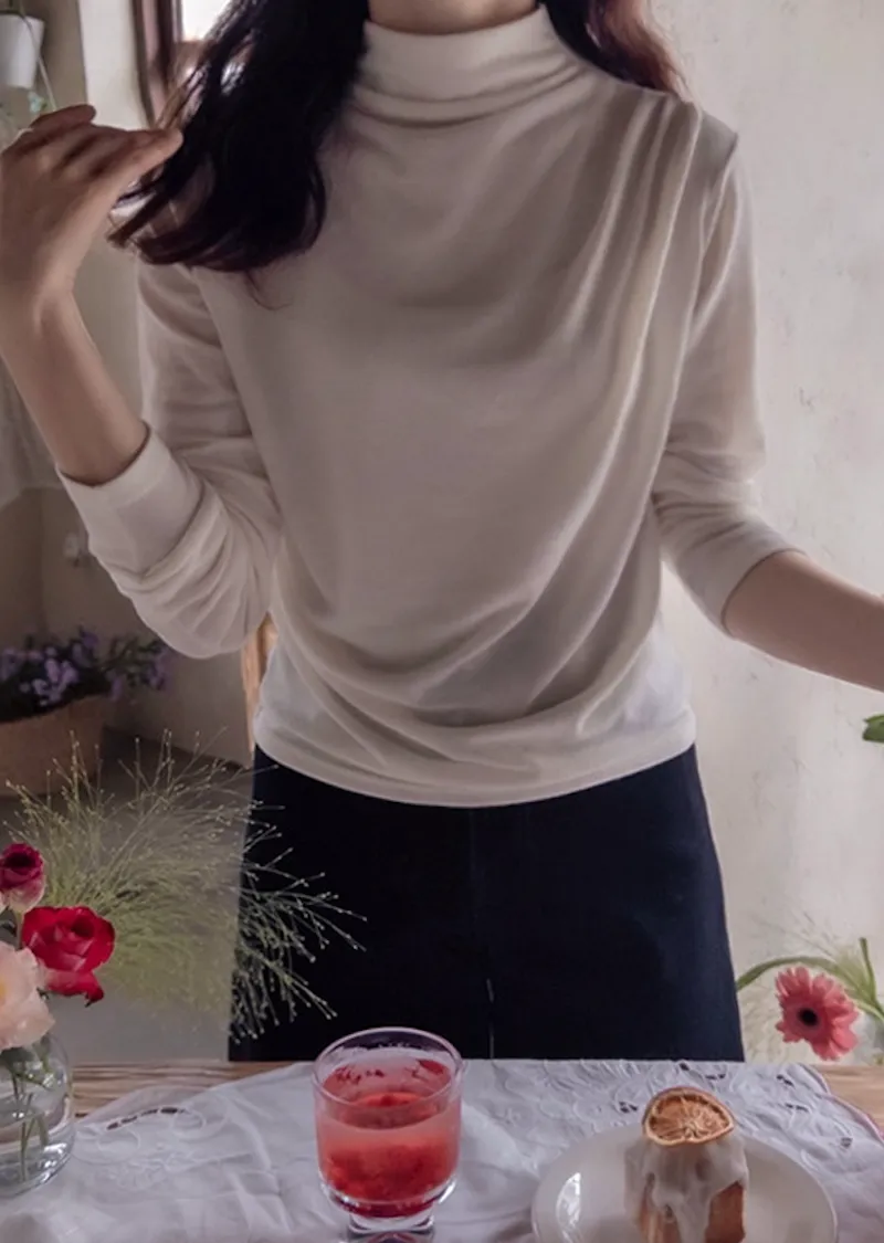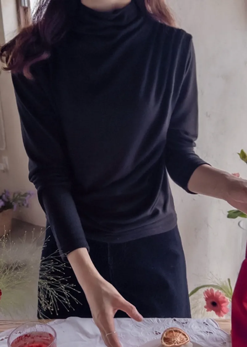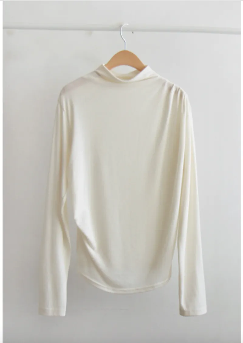 柔軟彈性肩線褶皺設計穿搭高領上衣