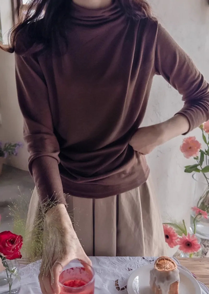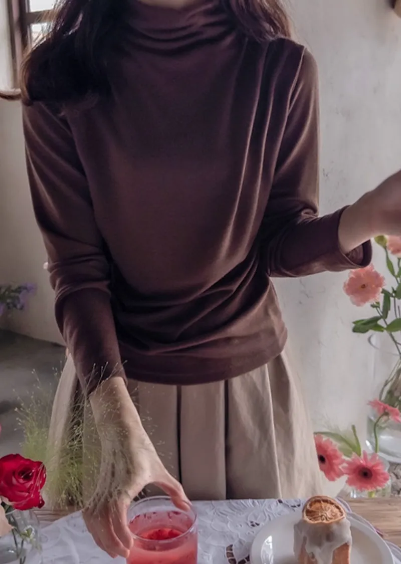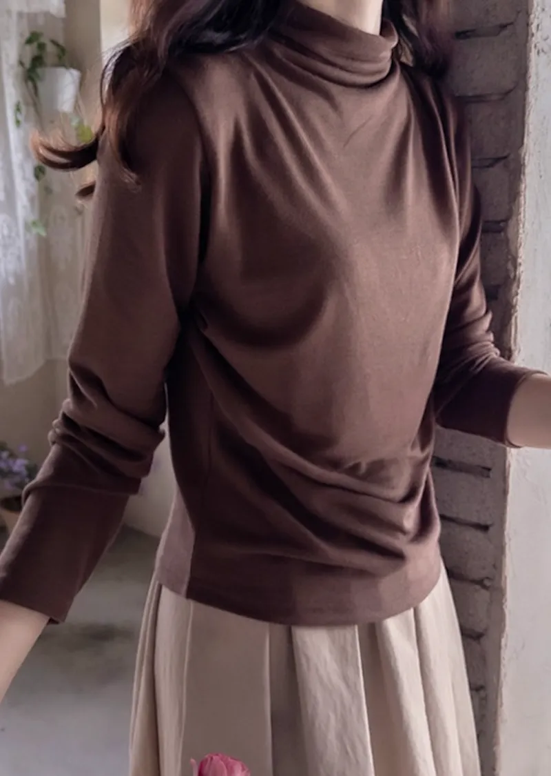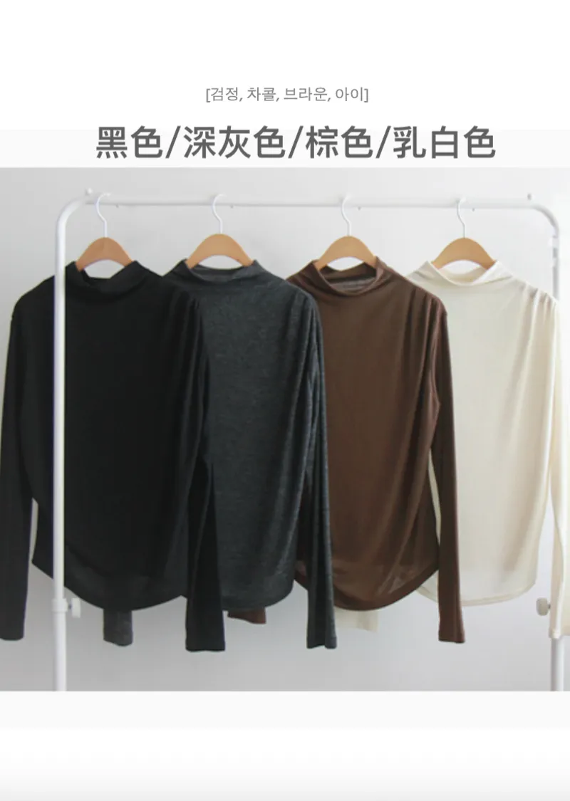 柔軟彈性肩線褶皺設計穿搭高領上衣