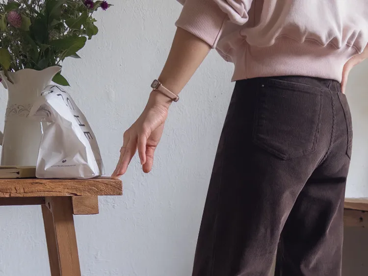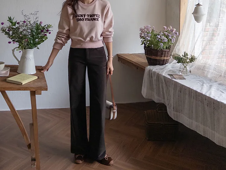 修長線條舒適直筒燈芯絨休閒褲 白S