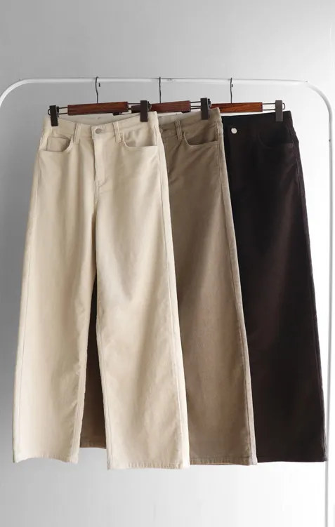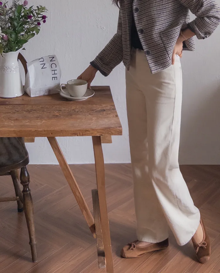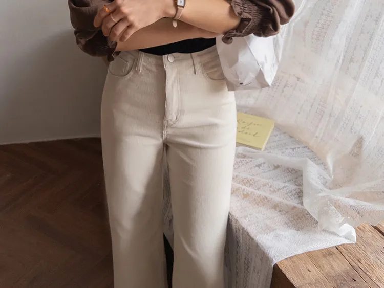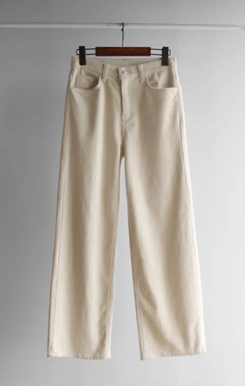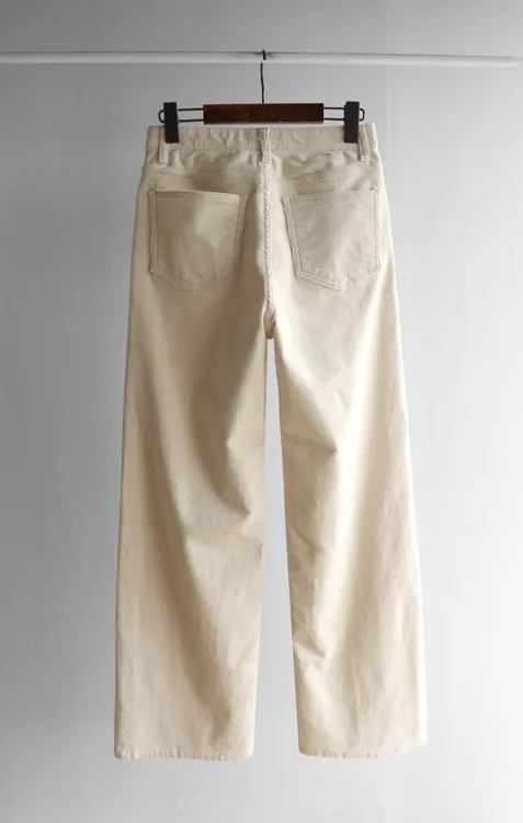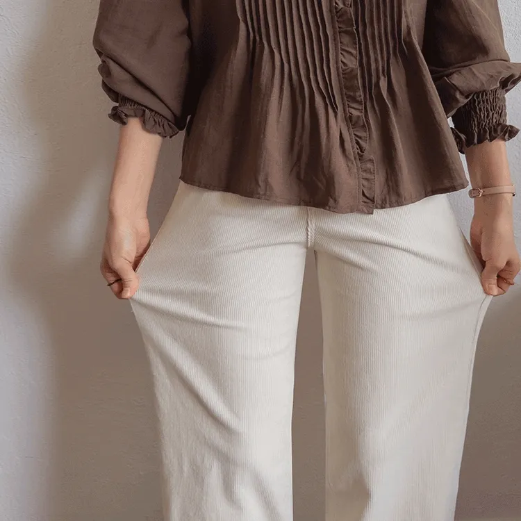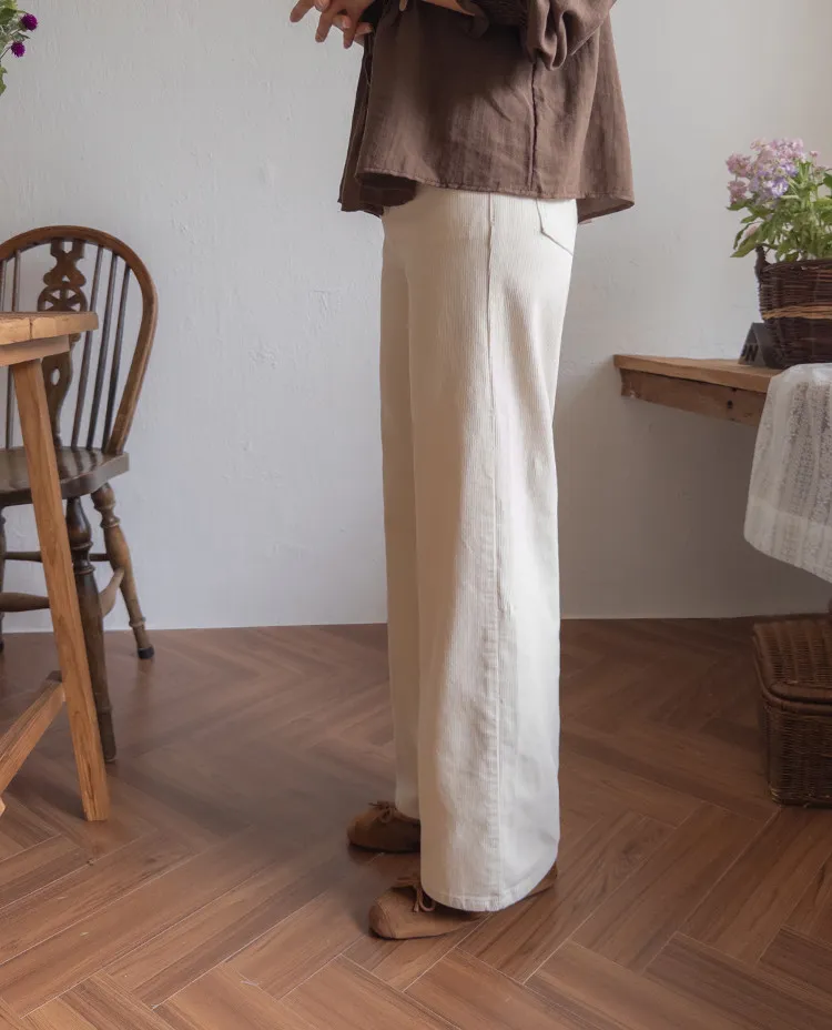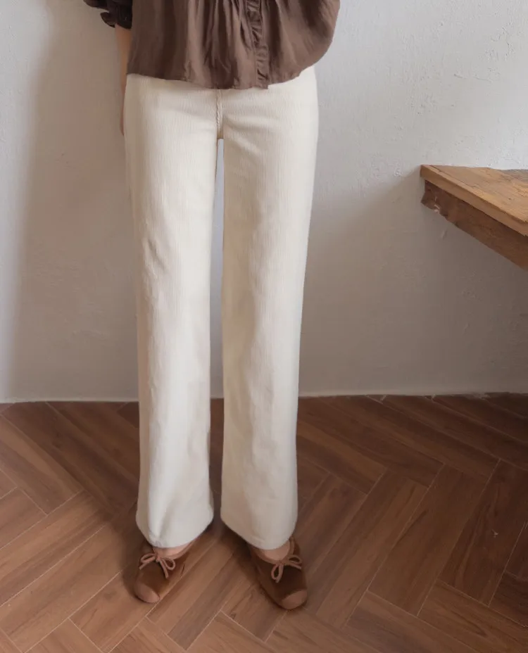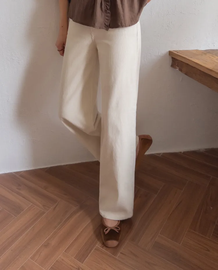 修長線條舒適直筒燈芯絨休閒褲 白S