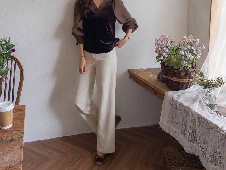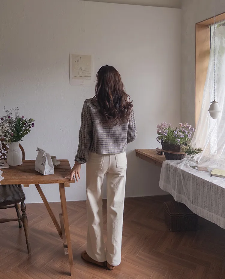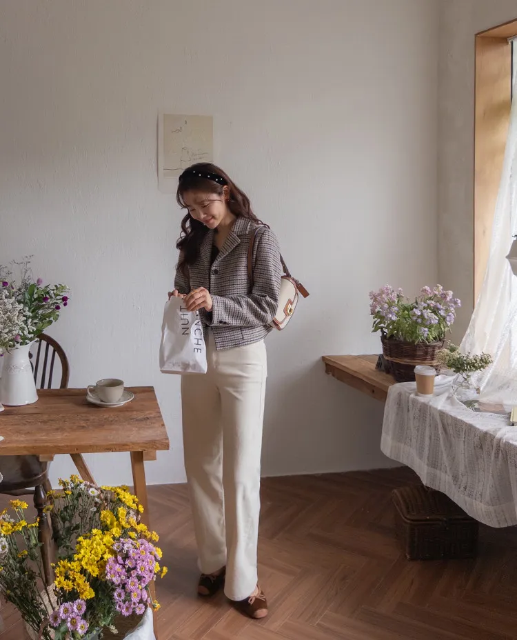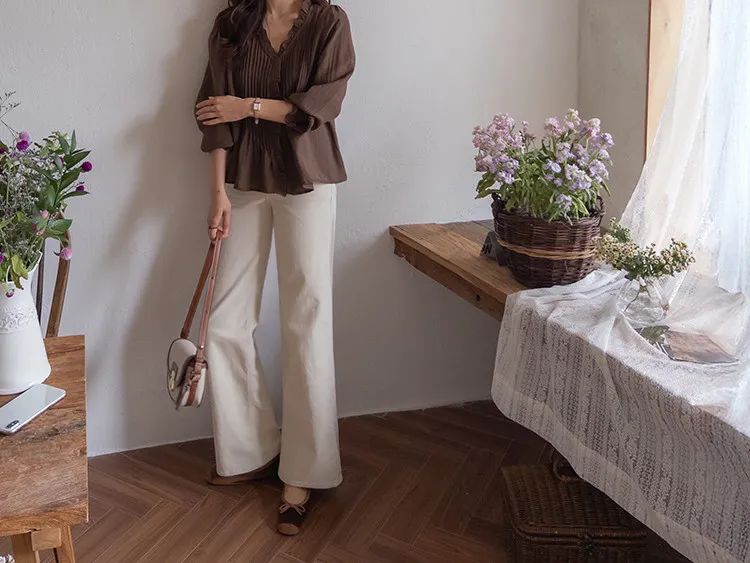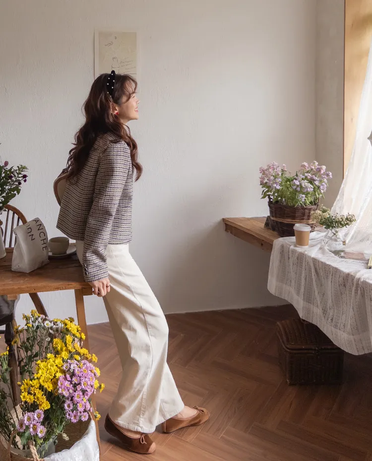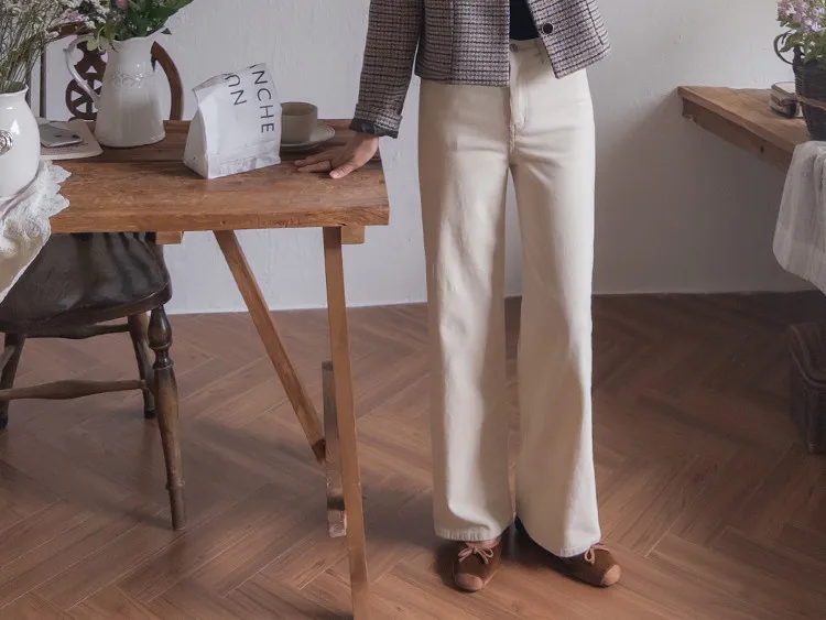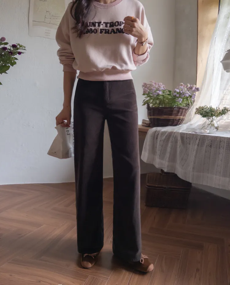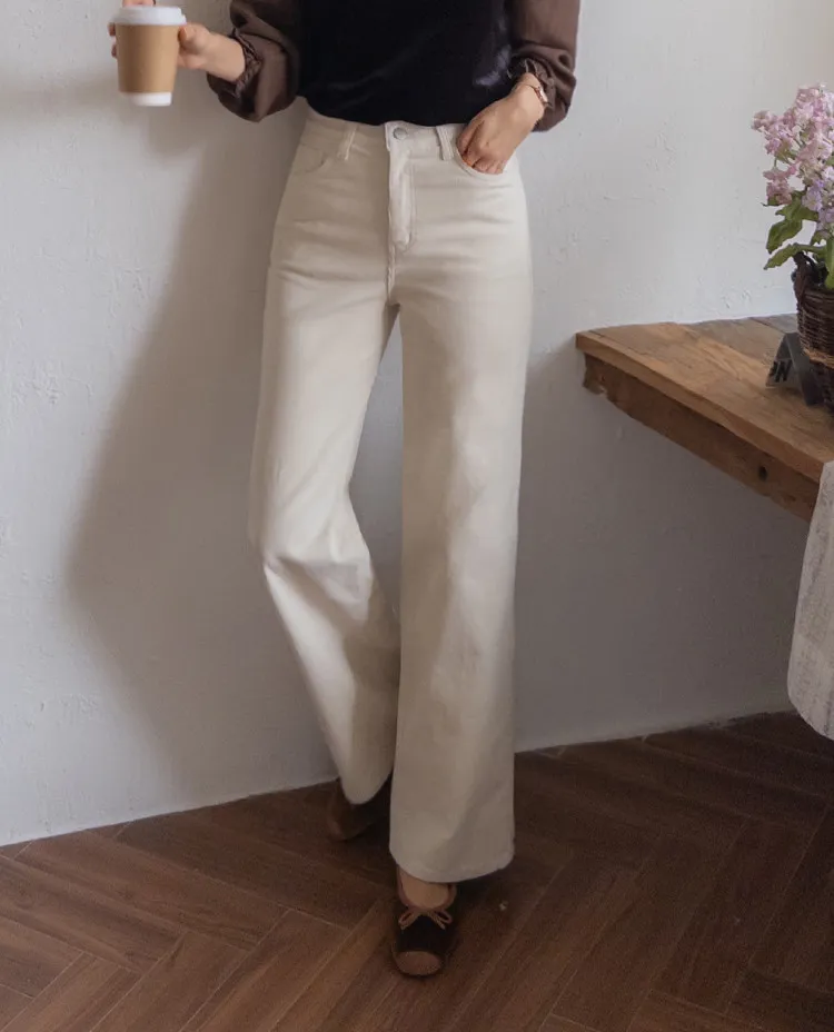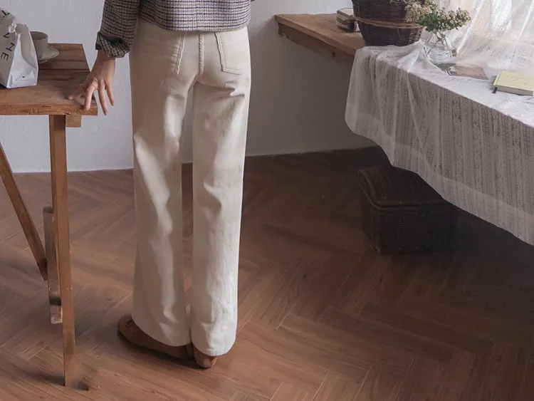 修長線條舒適直筒燈芯絨休閒褲 白S