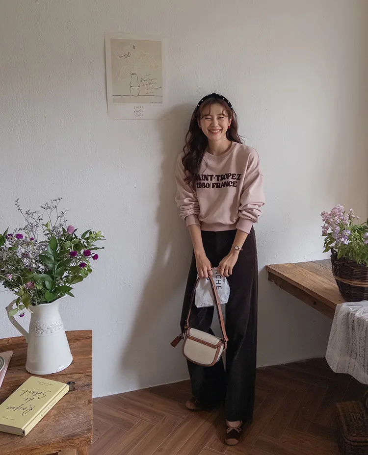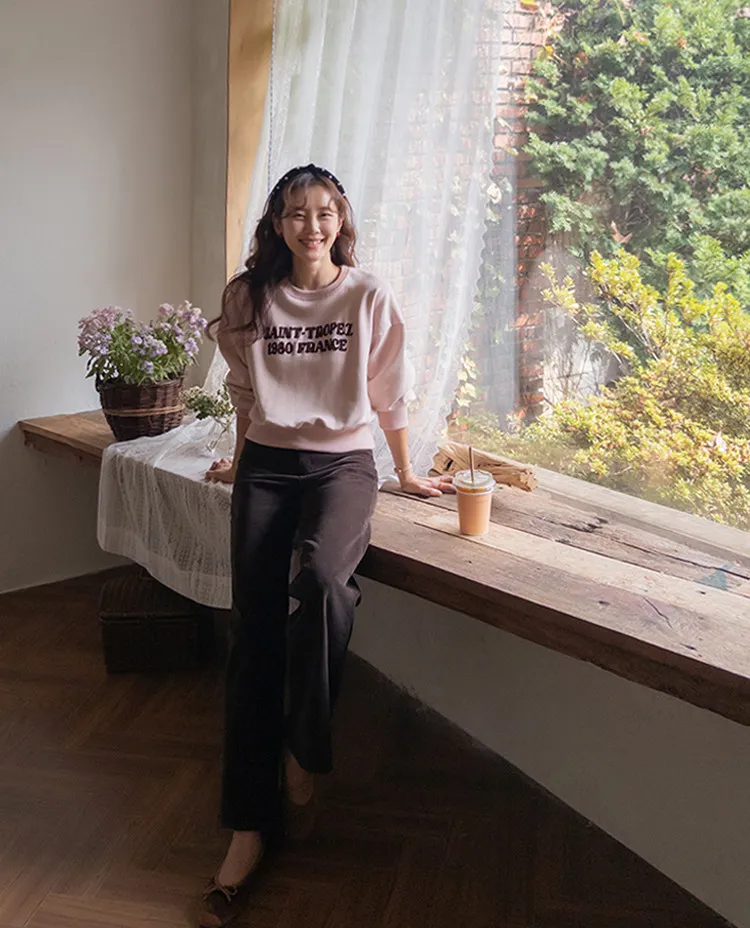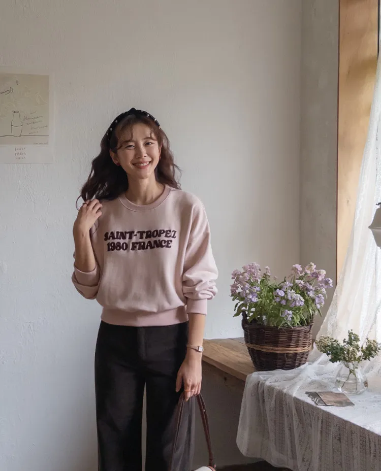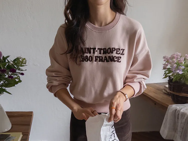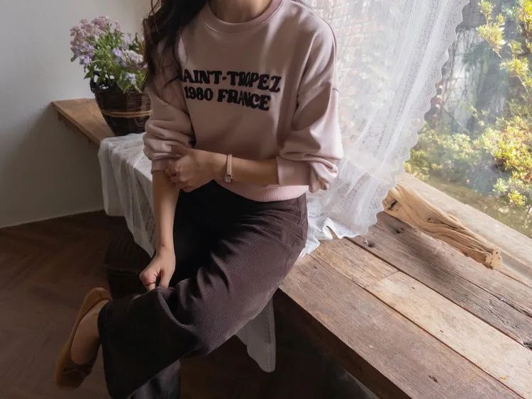 感性情調柔和色彩刺繡字母穿搭上衣