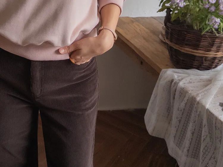 【乾淨俐落的直筒剪裁,修長筆直♥】 【燈芯絨布料,溫暖整個冬天^^】 【彈性十足,活動自如! 】 【隱藏式彈性帶,穿著舒適~】