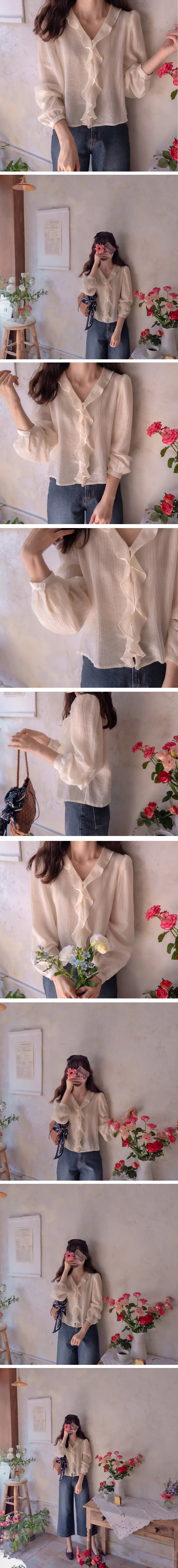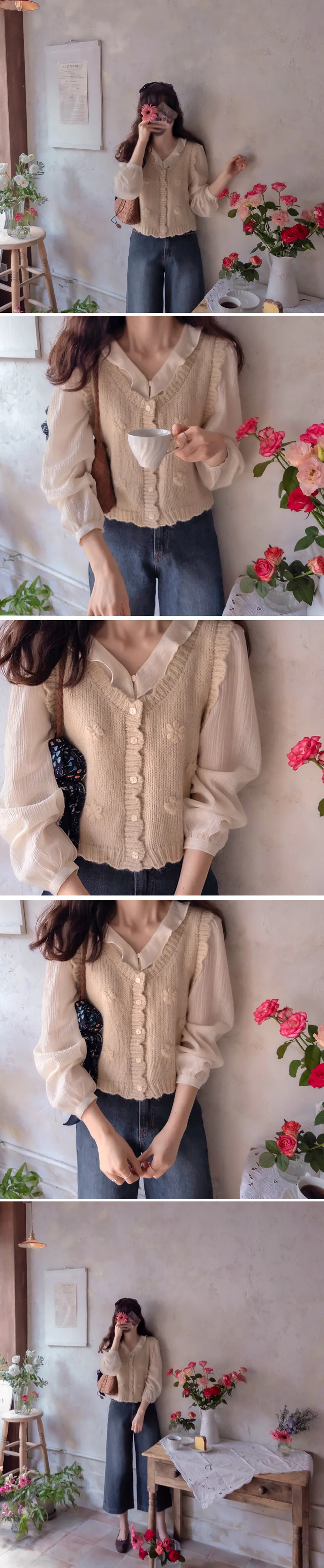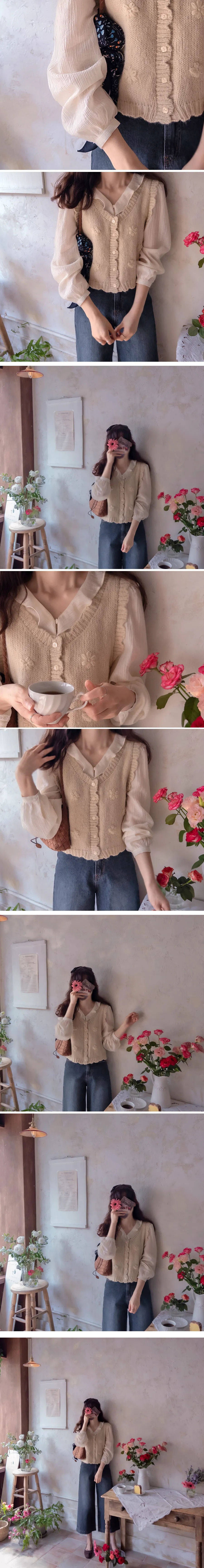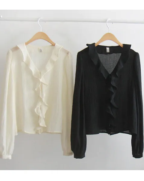 優雅可疊穿荷葉摺邊V領排扣上衣