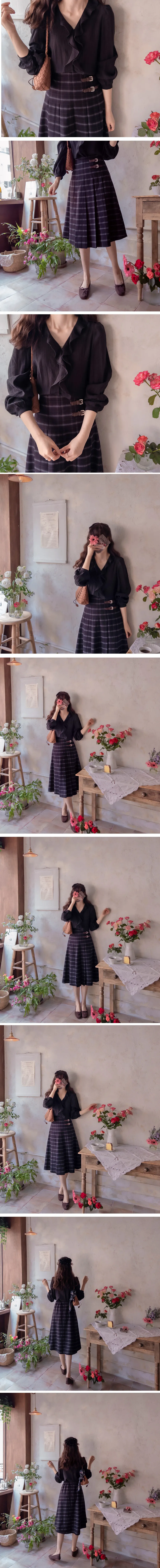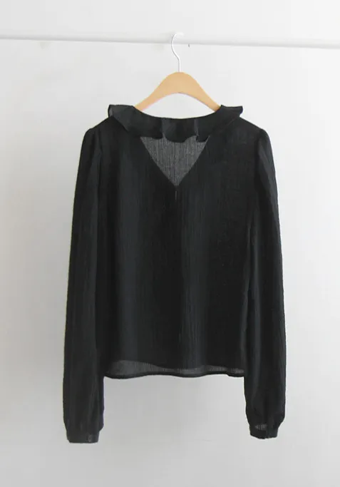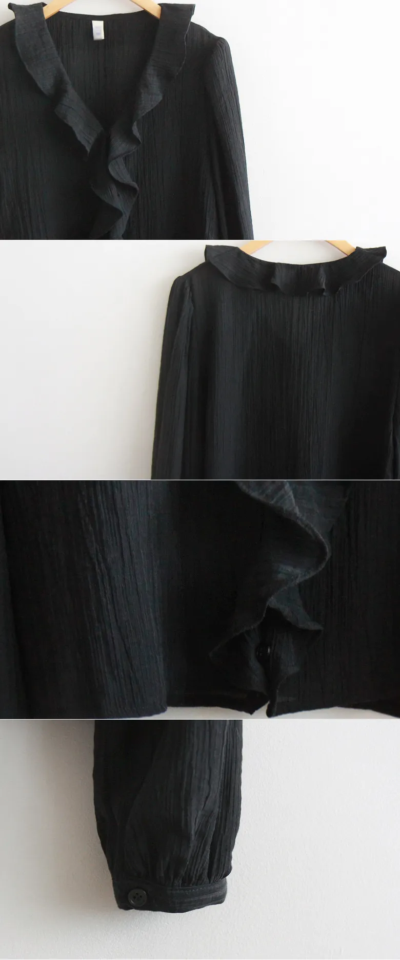 優雅可疊穿荷葉摺邊V領排扣上衣