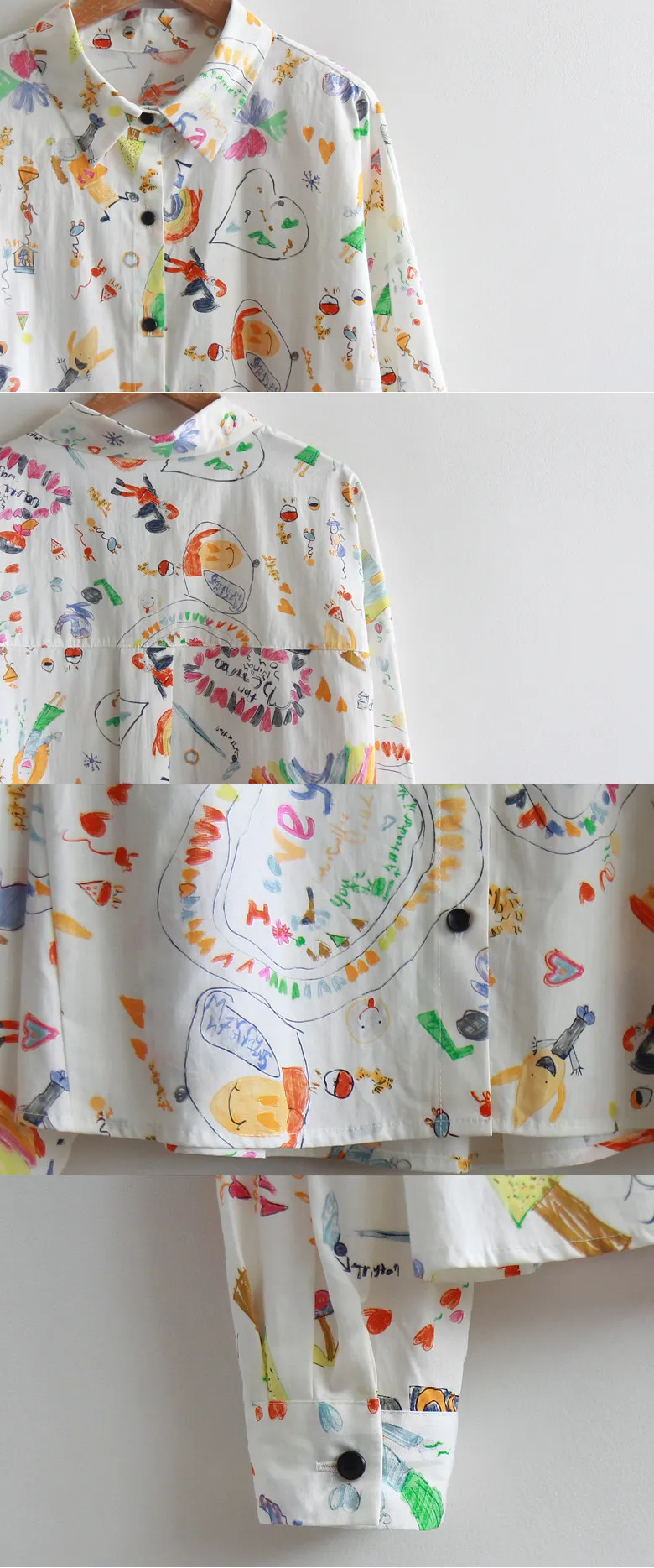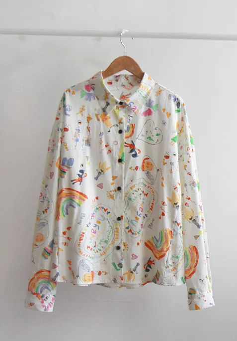 活潑感塗鴉風格秋季穿搭襯衫