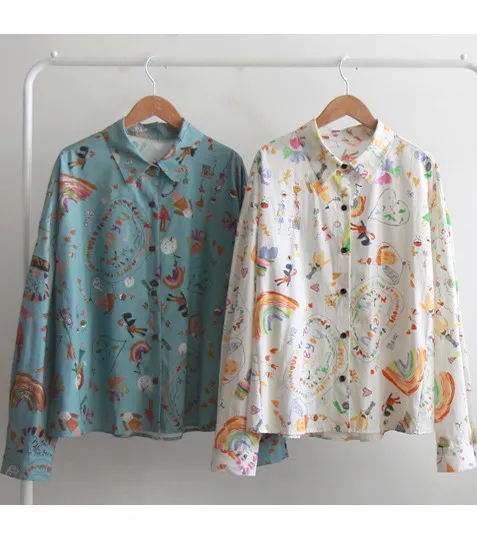 【以可愛女孩印花為焦點,適合秋季的襯衫】 【能提升時尚感又能增添季節感】 【精緻色彩搭配增添活力】 【作為秋季魅力襯衫】