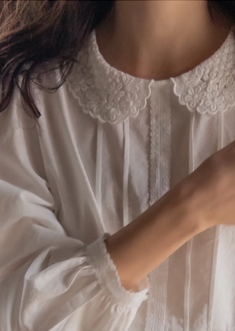 [可愛〜花朵蕾絲上衣✿] [從春天穿到冬天都很超值的單品] [棉質面料,質感紮實! ] [單穿或疊穿都很適合! ✨]