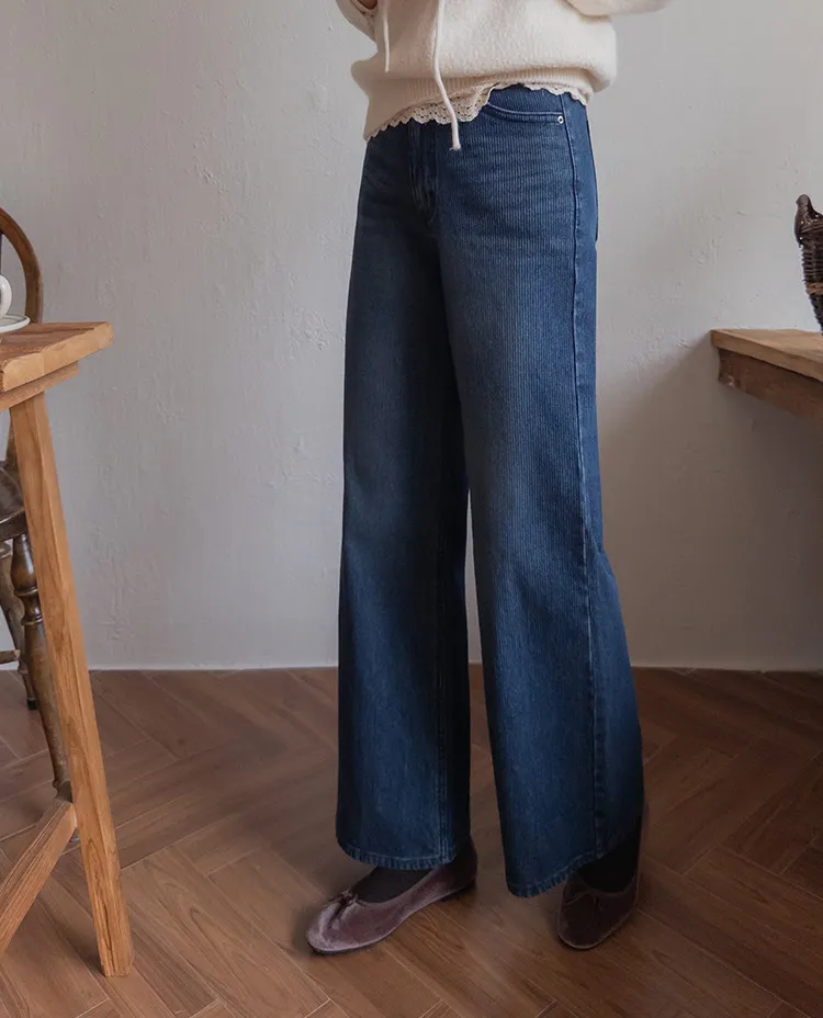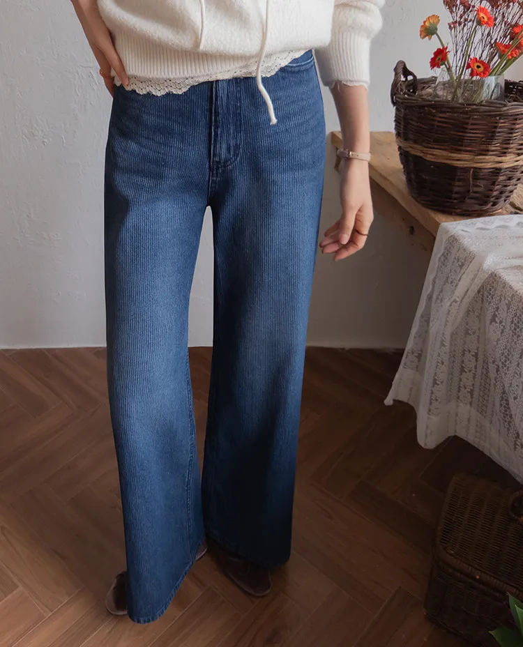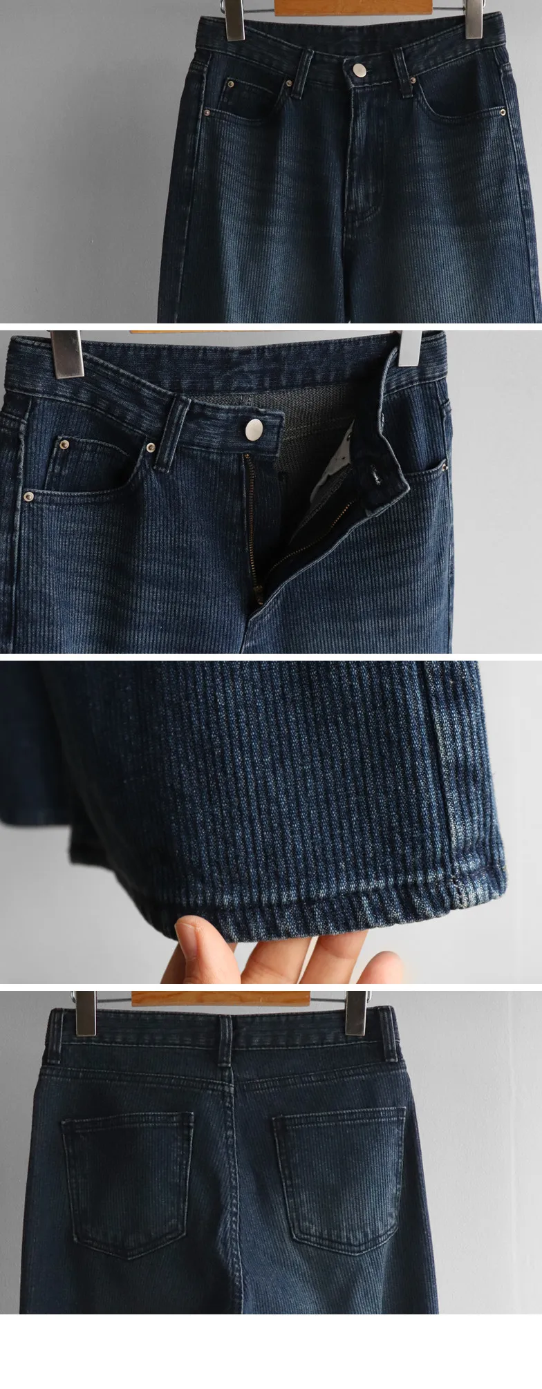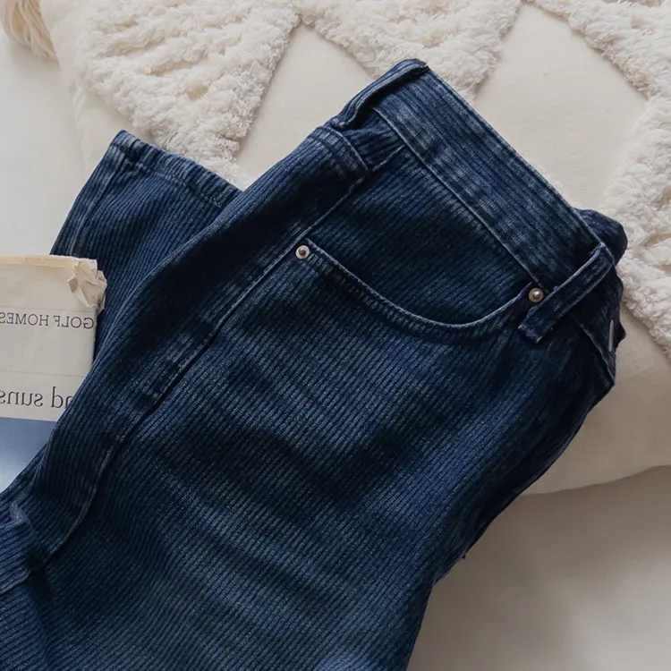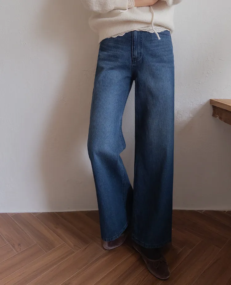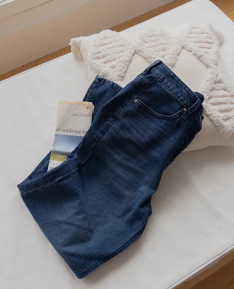 獨特情調垂直線條日常修身直筒版型牛仔褲