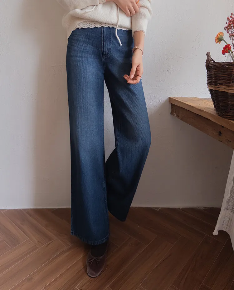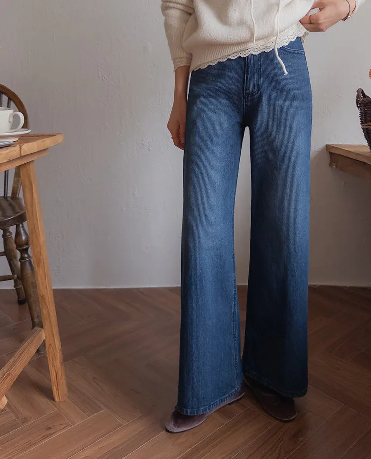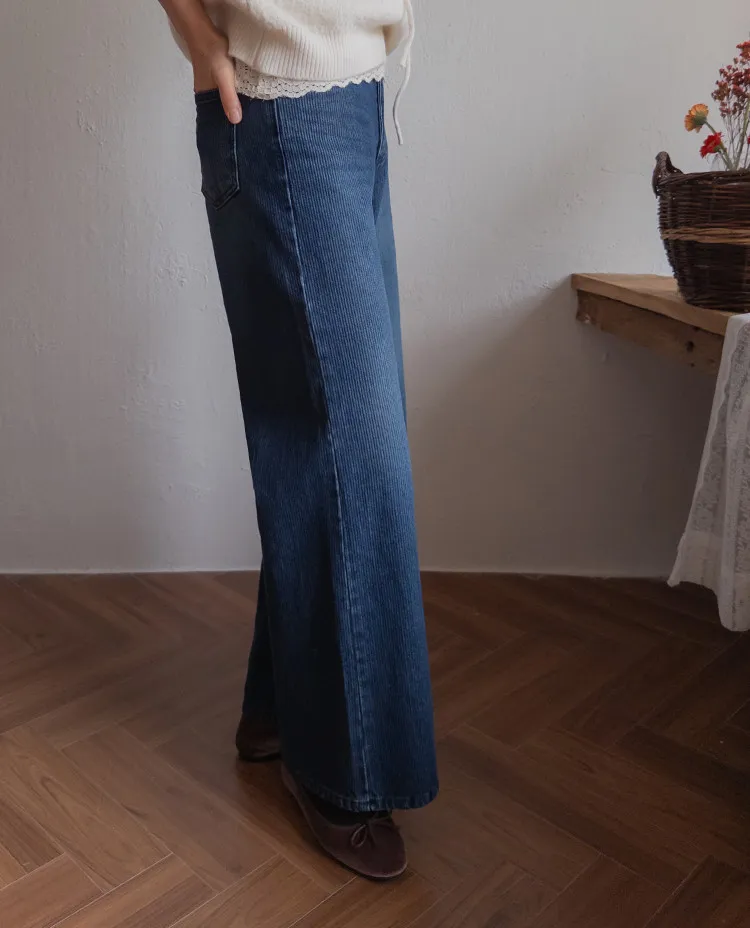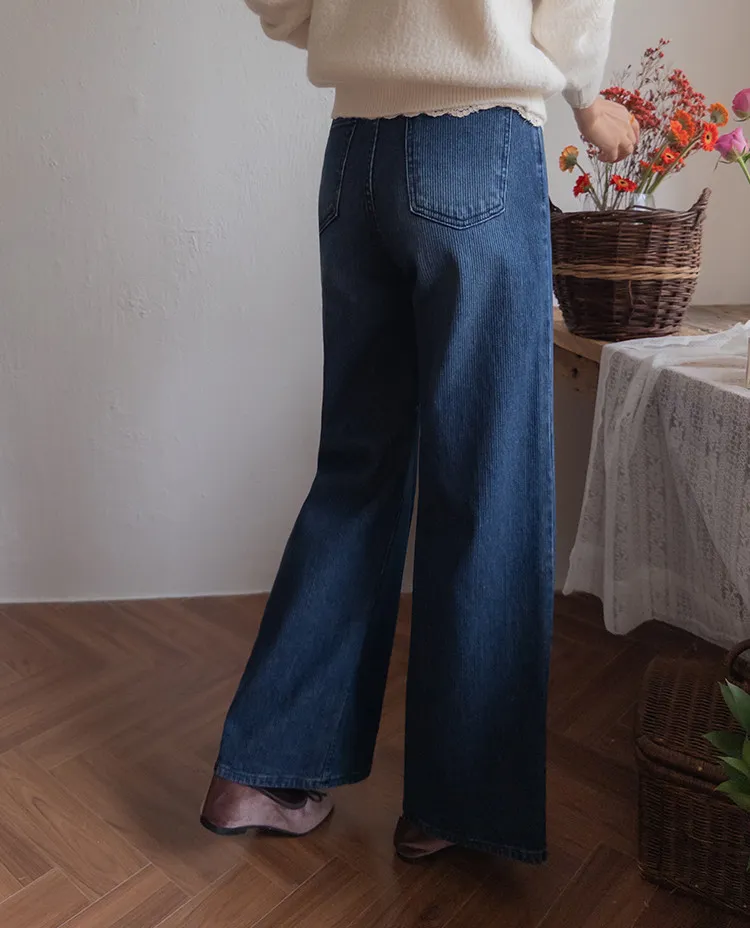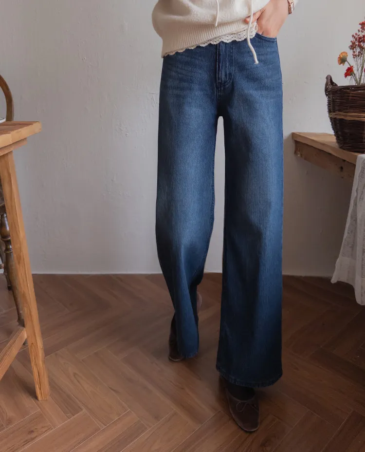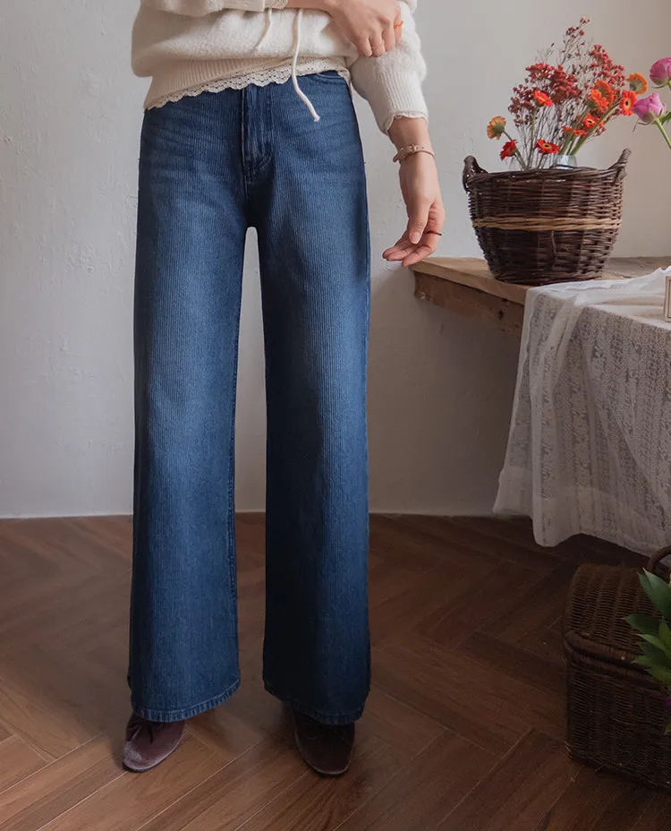 獨特情調垂直線條日常修身直筒版型牛仔褲