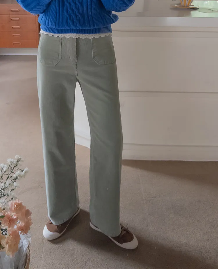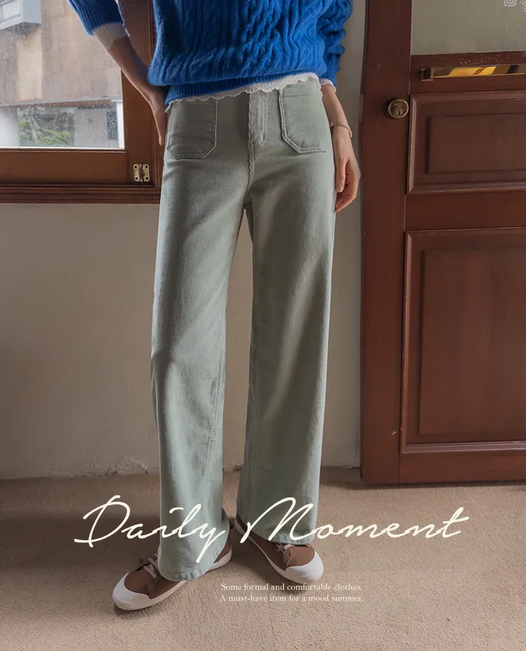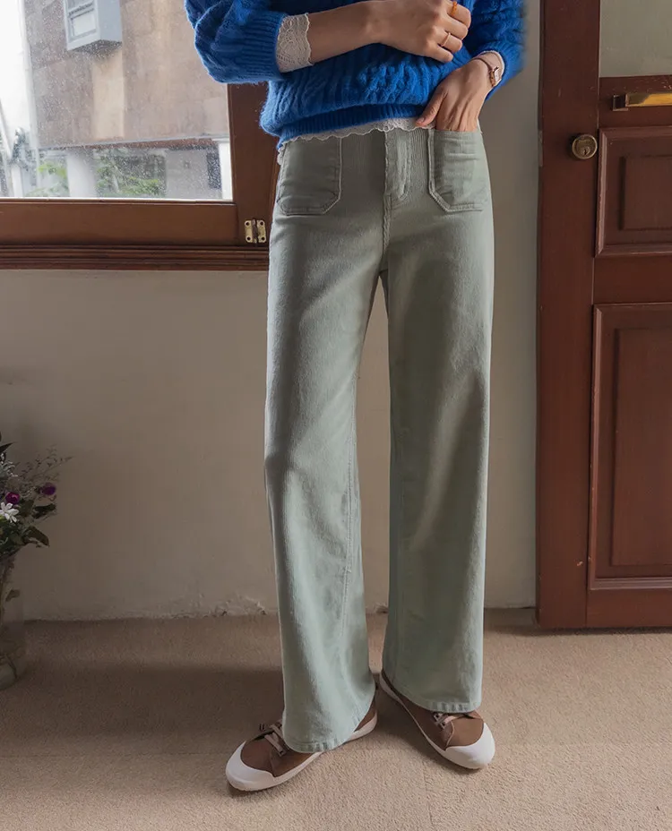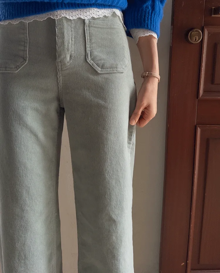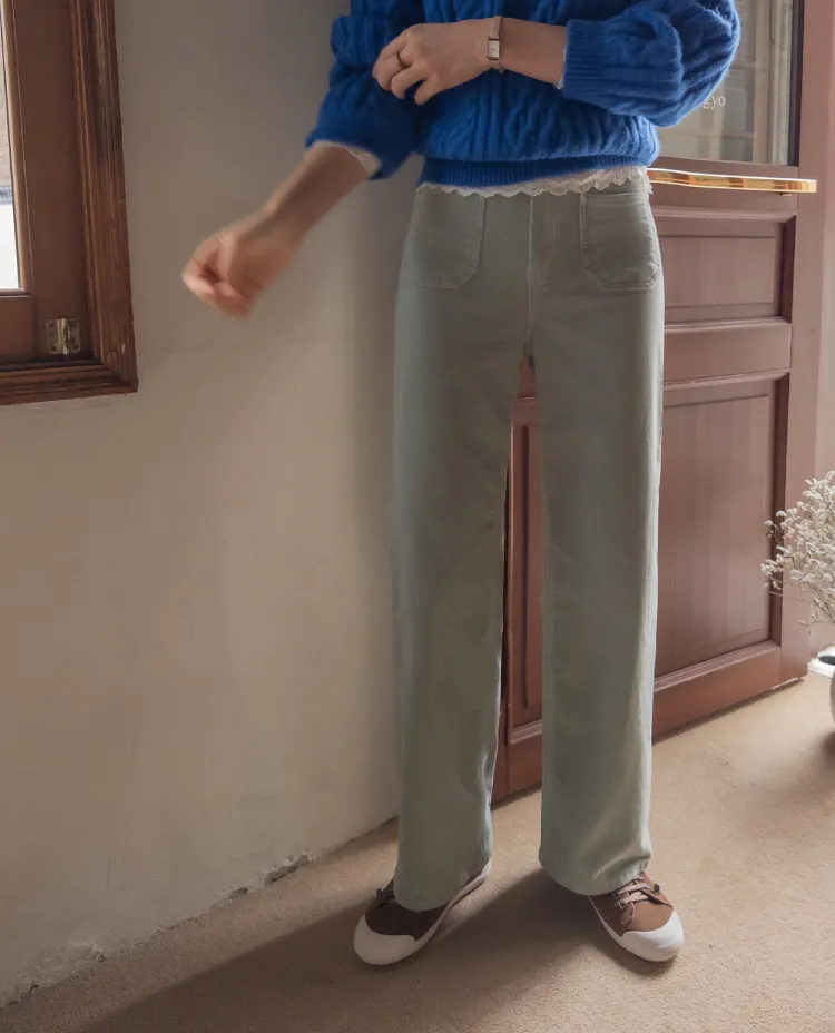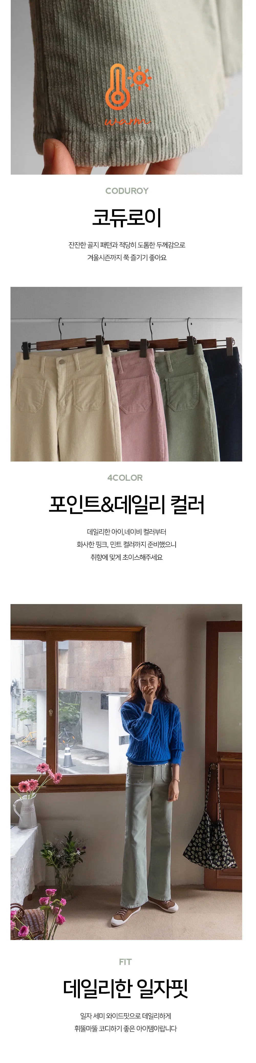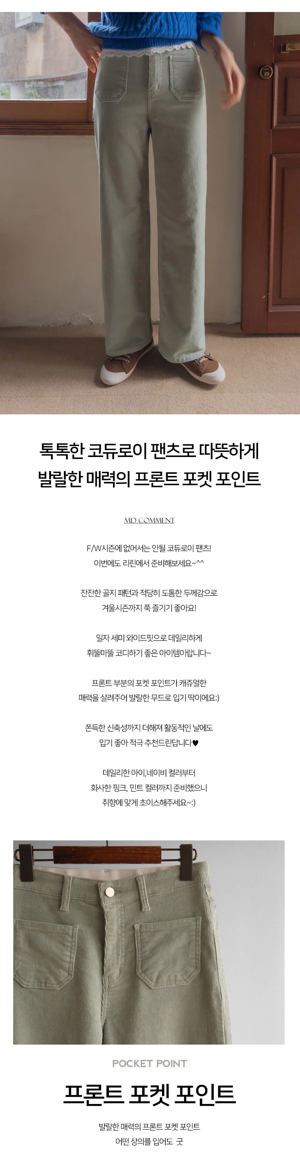 [厚實的燈芯絨褲子穿著保暖♨] [適合任何場合的完美日常直筒褲! ] [極度舒適且超有彈性] [活潑的前口袋裝飾✿]