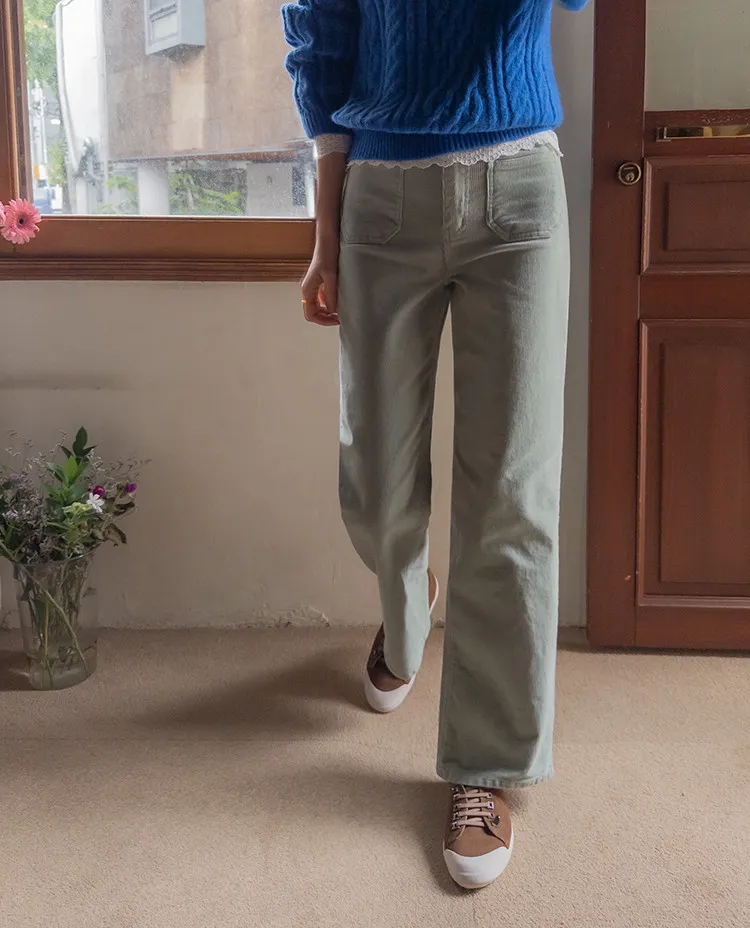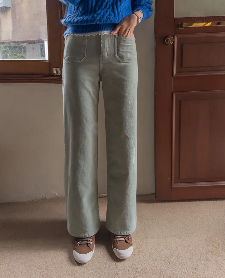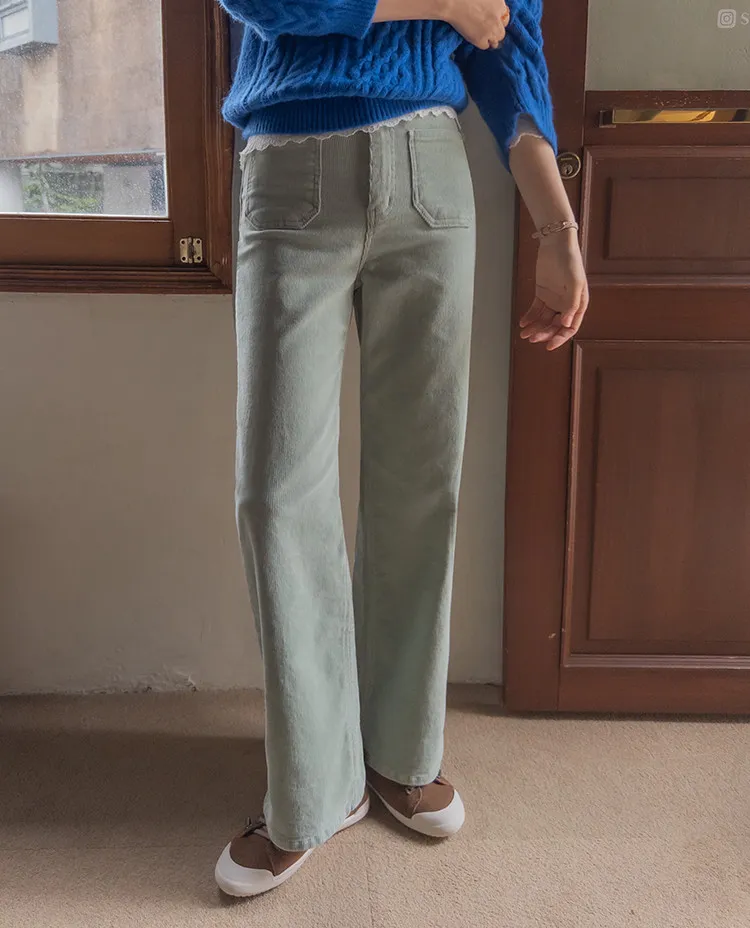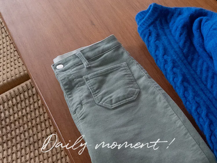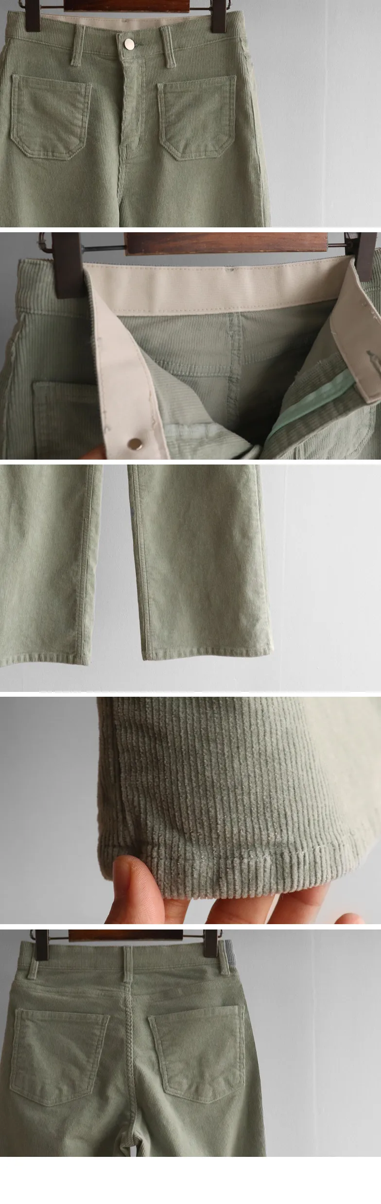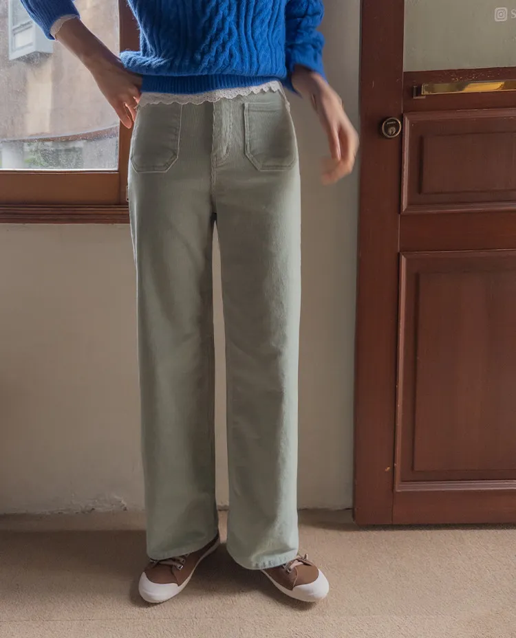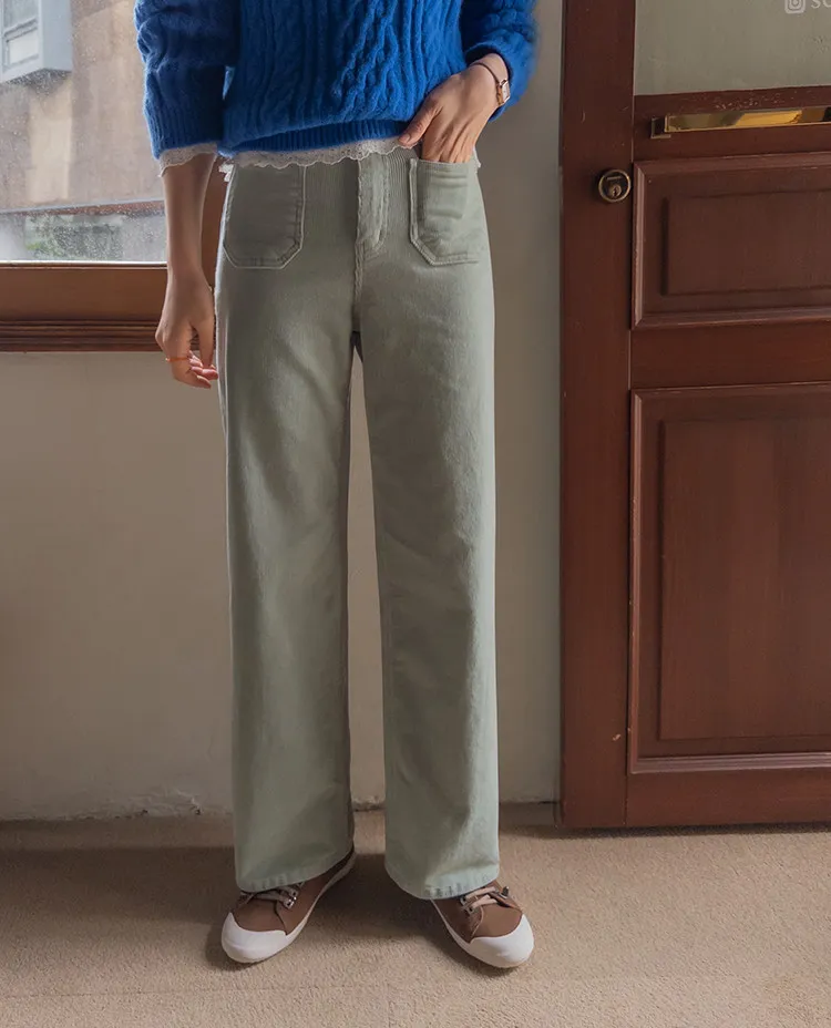 [厚實的燈芯絨褲子穿著保暖♨] [適合任何場合的完美日常直筒褲! ] [極度舒適且超有彈性] [活潑的前口袋裝飾✿]