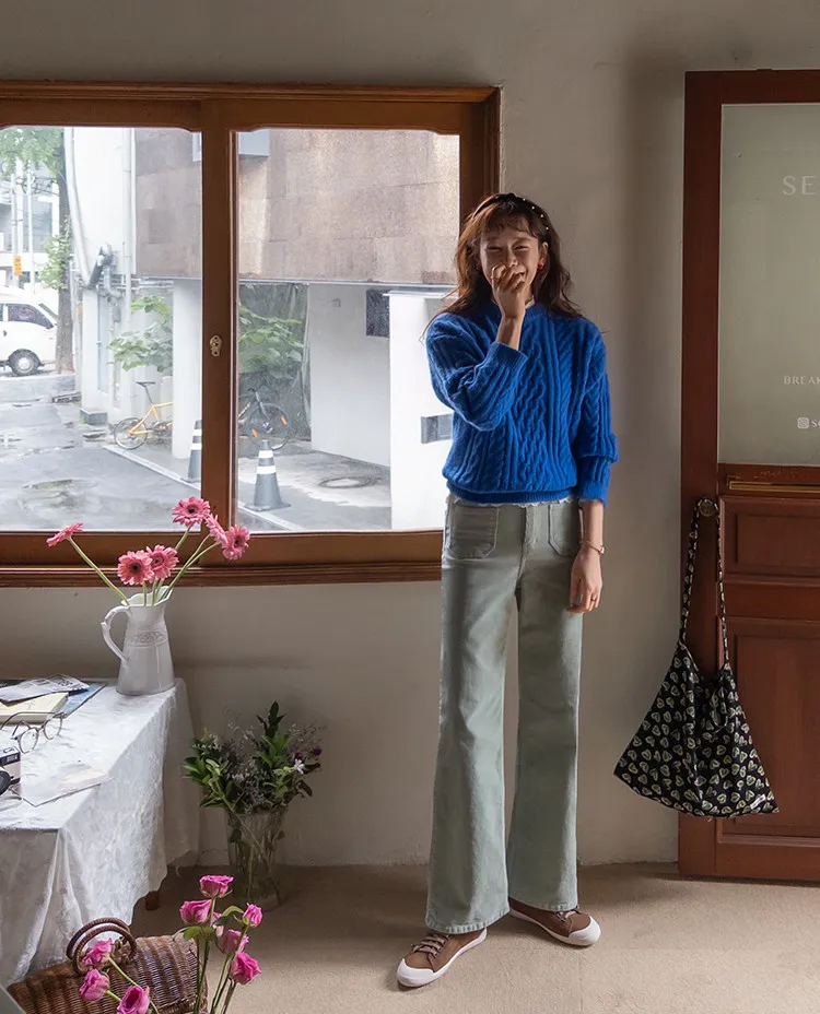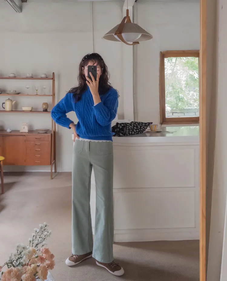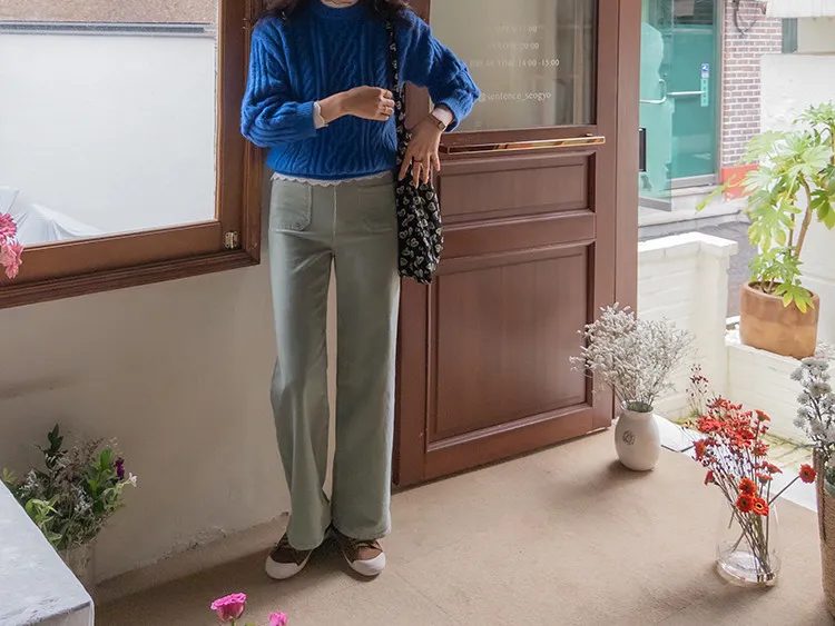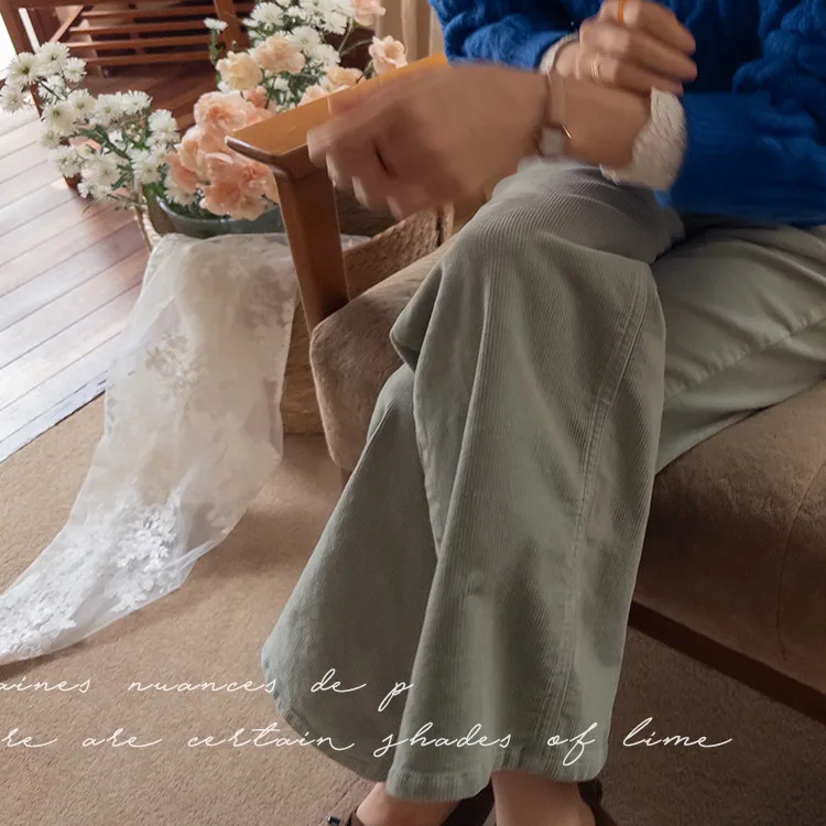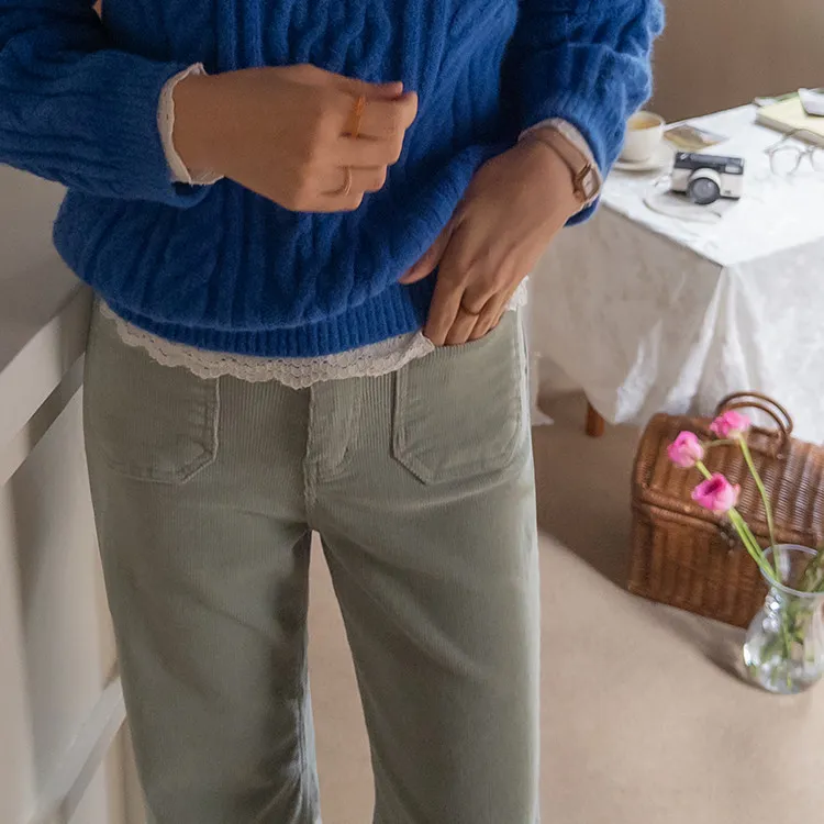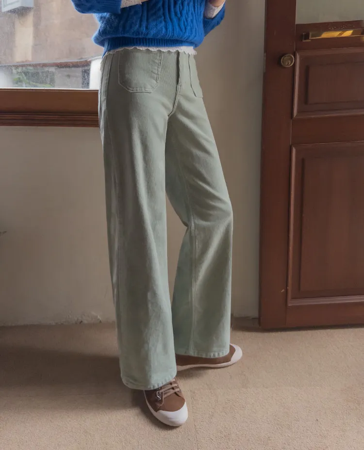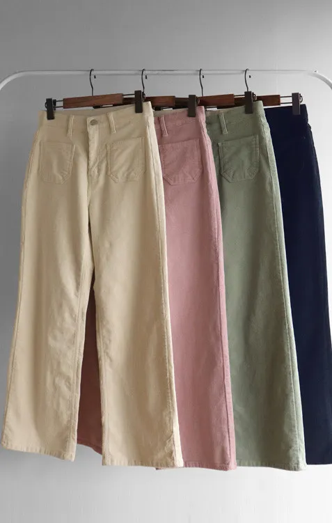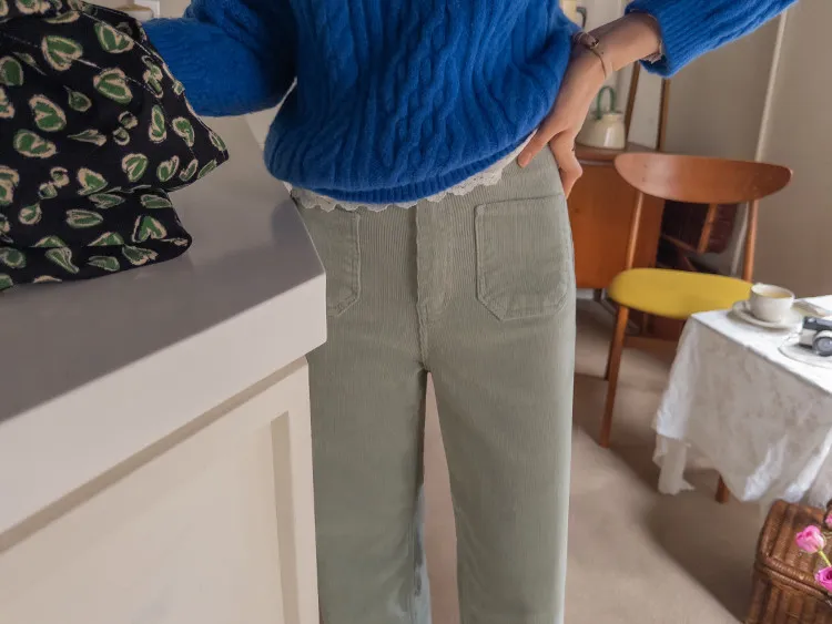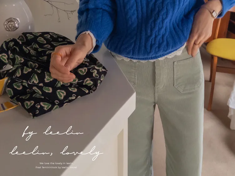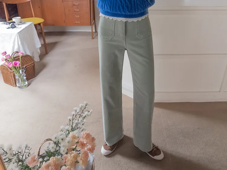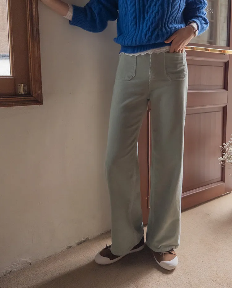 [厚實的燈芯絨褲子穿著保暖♨] [適合任何場合的完美日常直筒褲! ] [極度舒適且超有彈性] [活潑的前口袋裝飾✿]