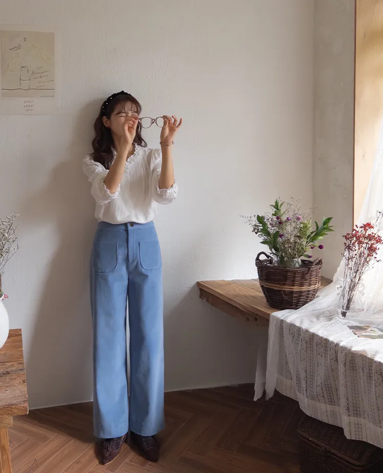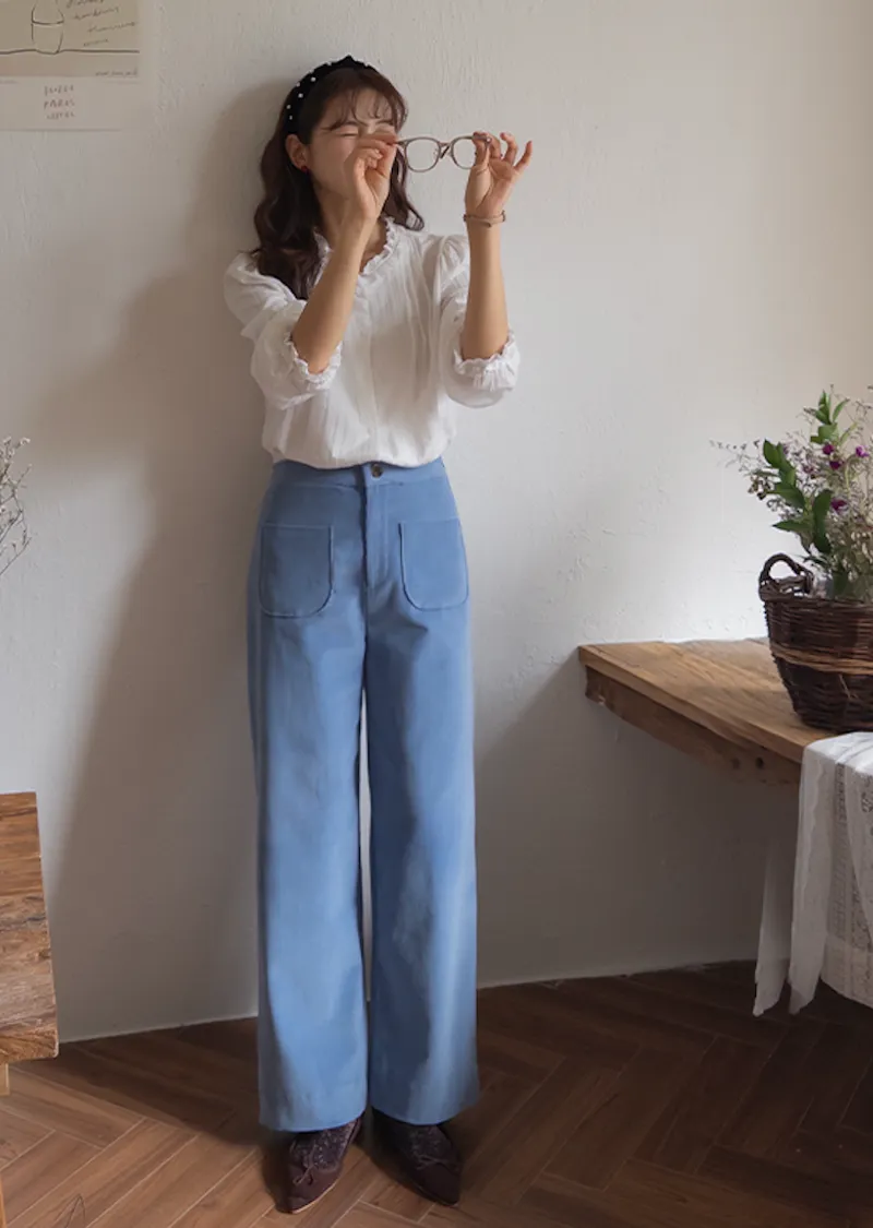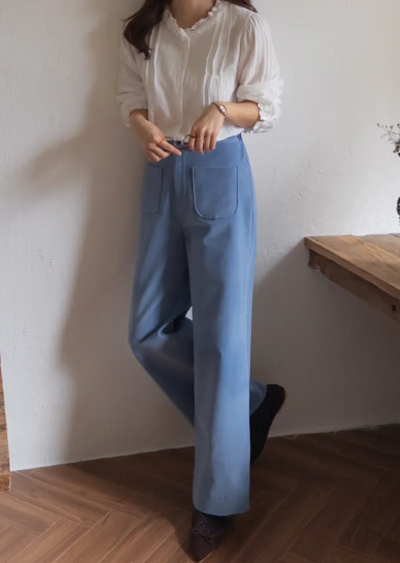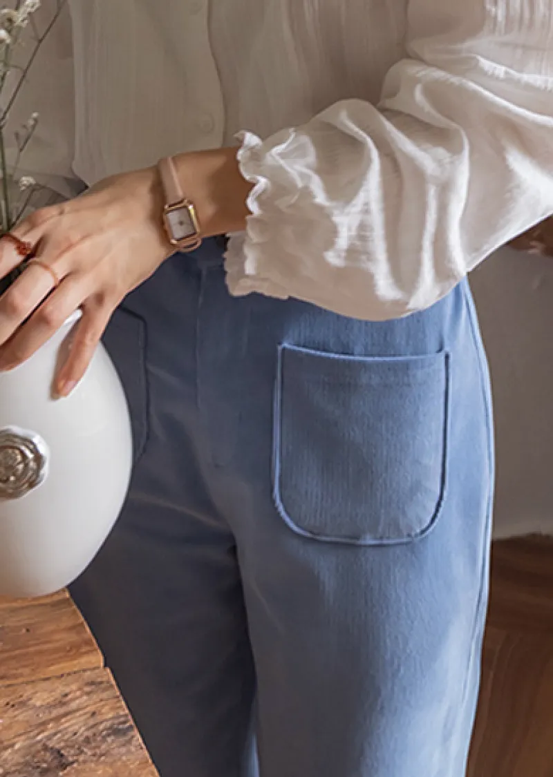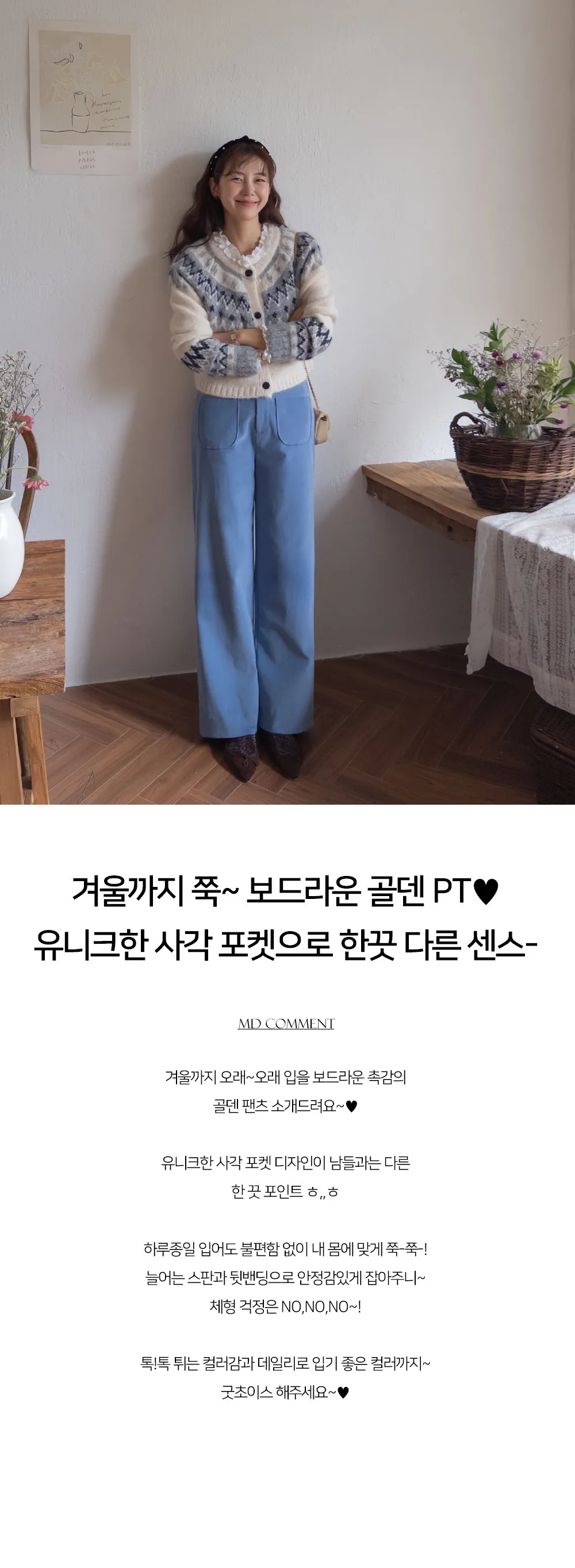 【一直到冬天~燈芯絨褲子♥】【獨特的方形口袋,增添時尚感~★】【穿著舒適~彈性氨綸】【後背有彈性帶】