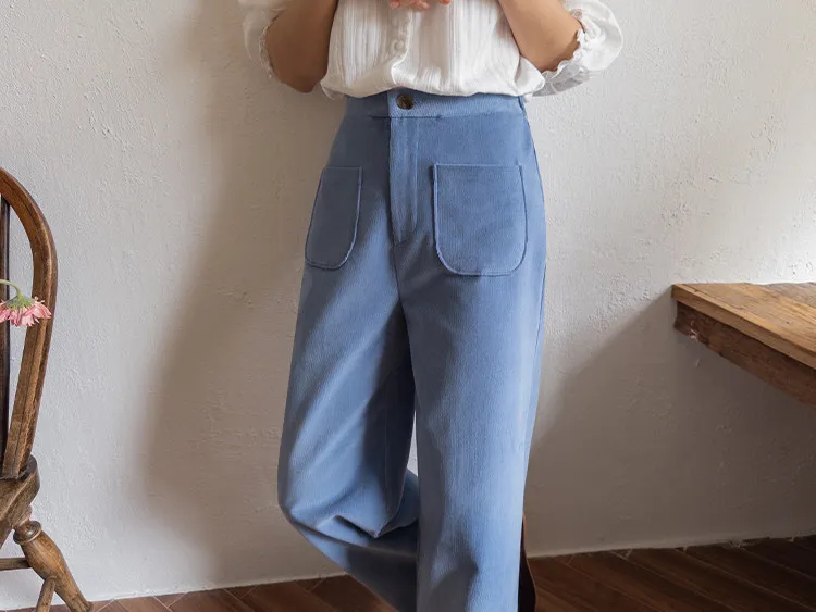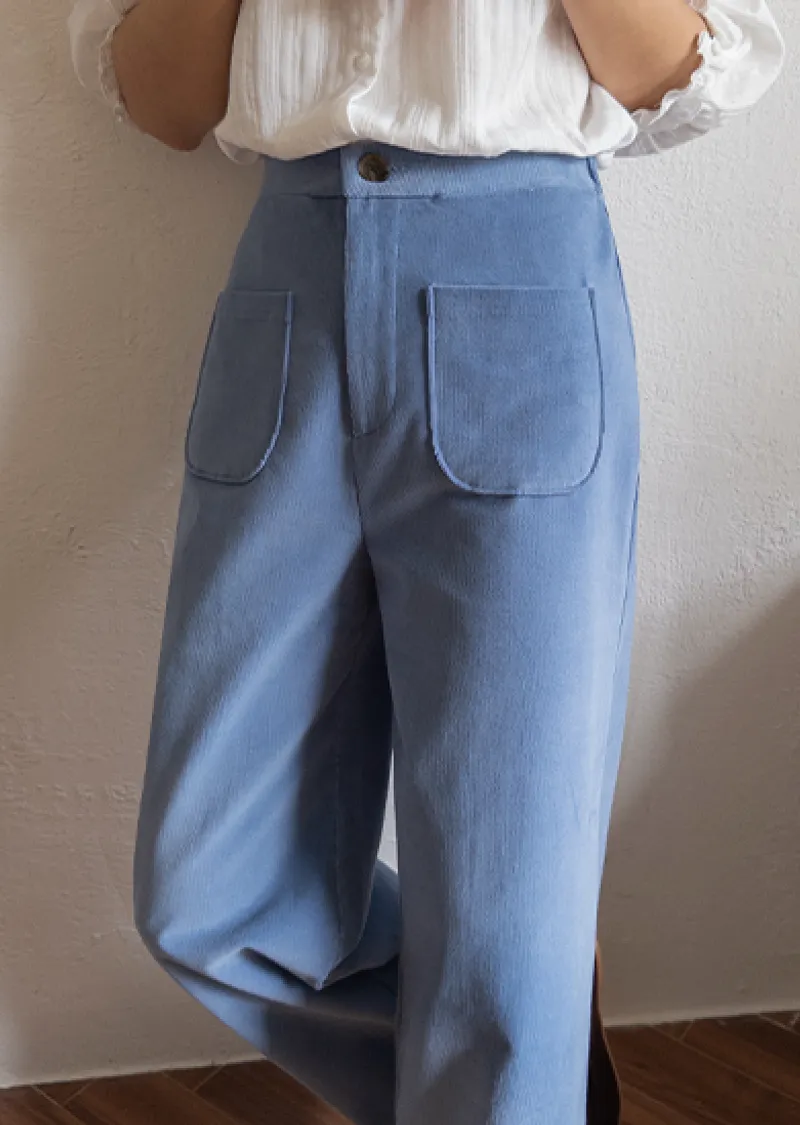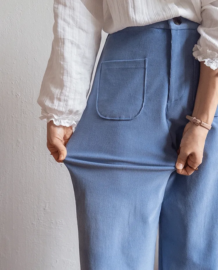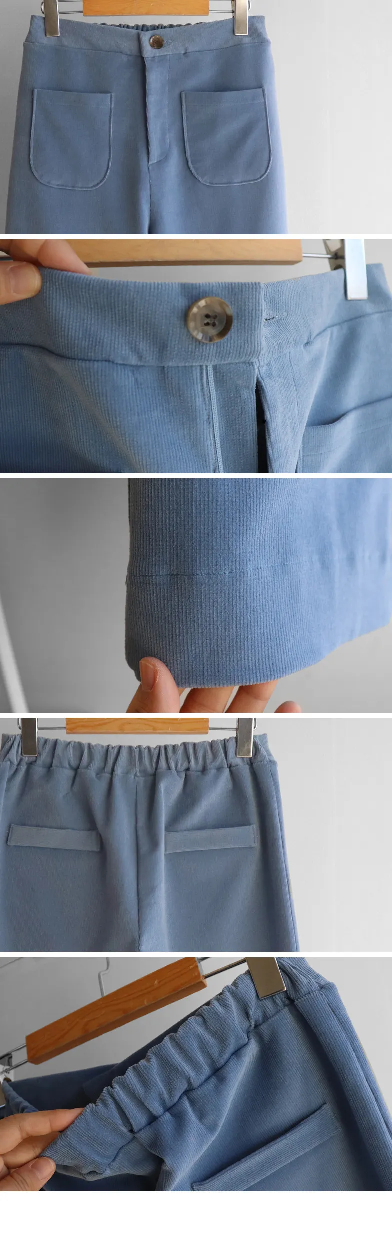 時尚獨特方形口袋彈性舒適燈芯絨休閒褲