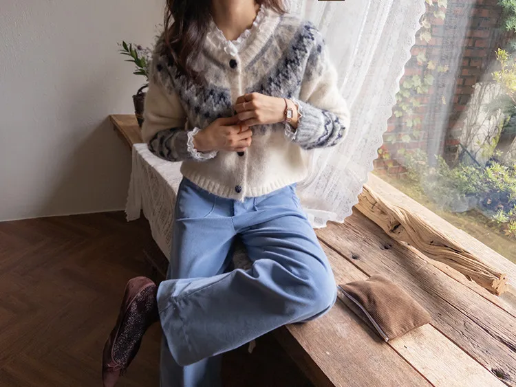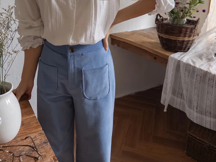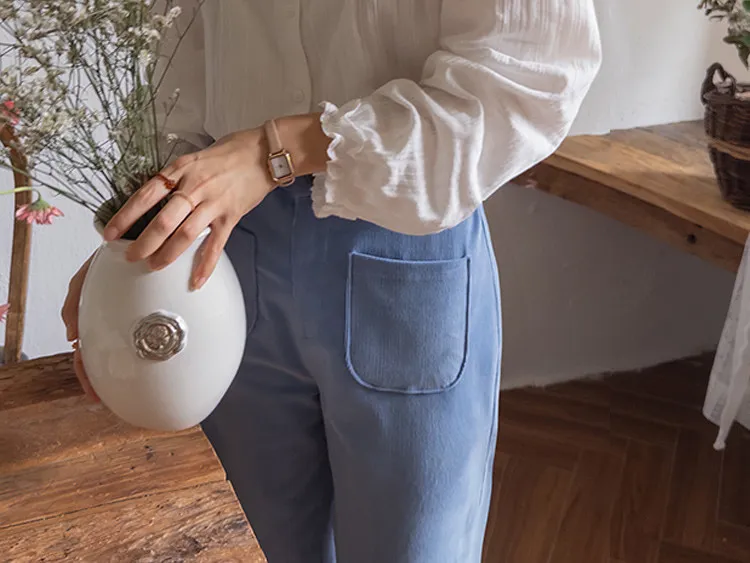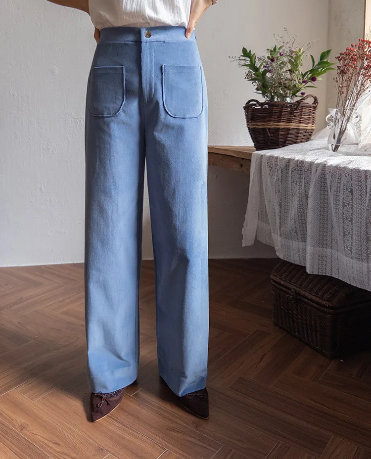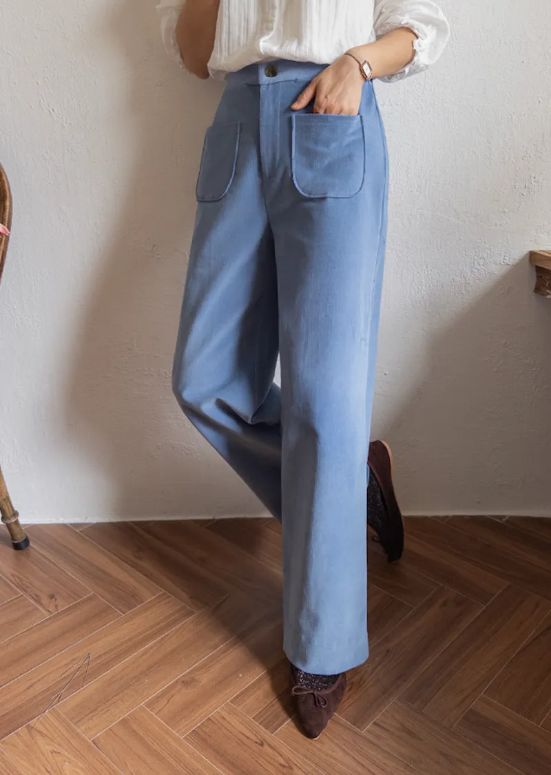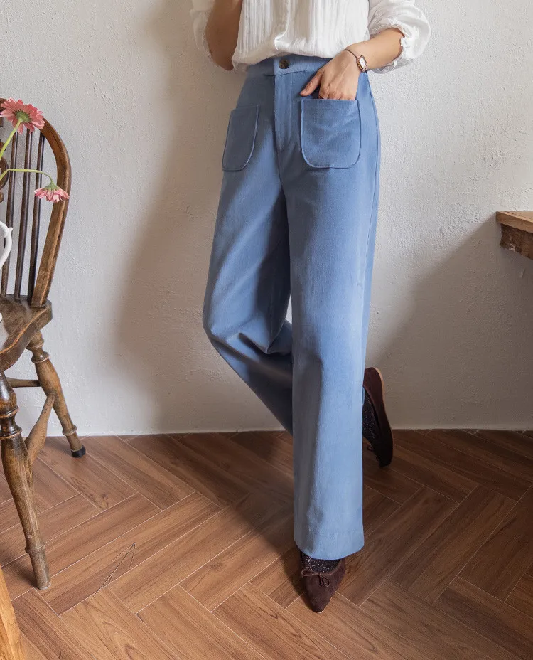 時尚獨特方形口袋彈性舒適燈芯絨休閒褲