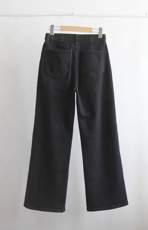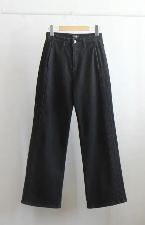 時尚獨特側剪裁修身及口袋設計黑色牛仔褲