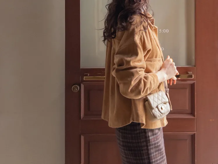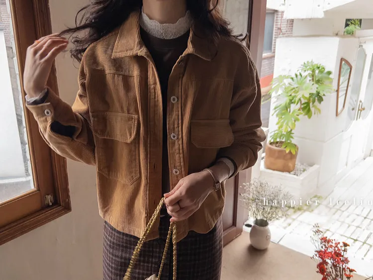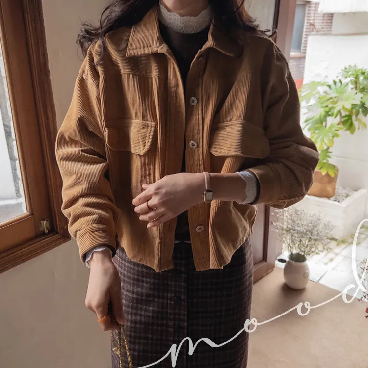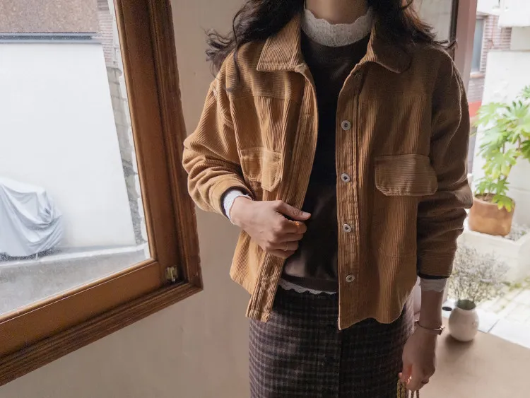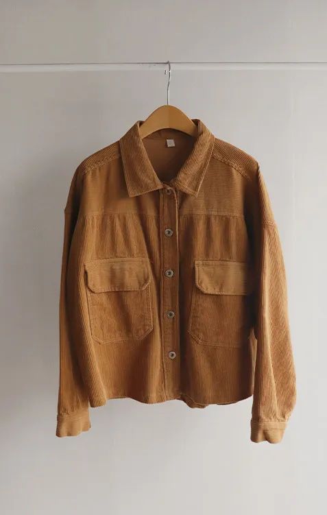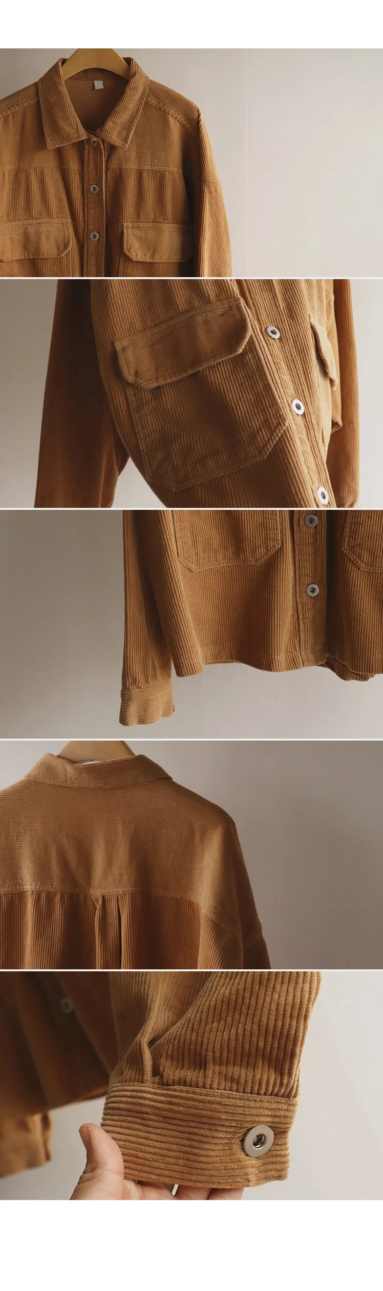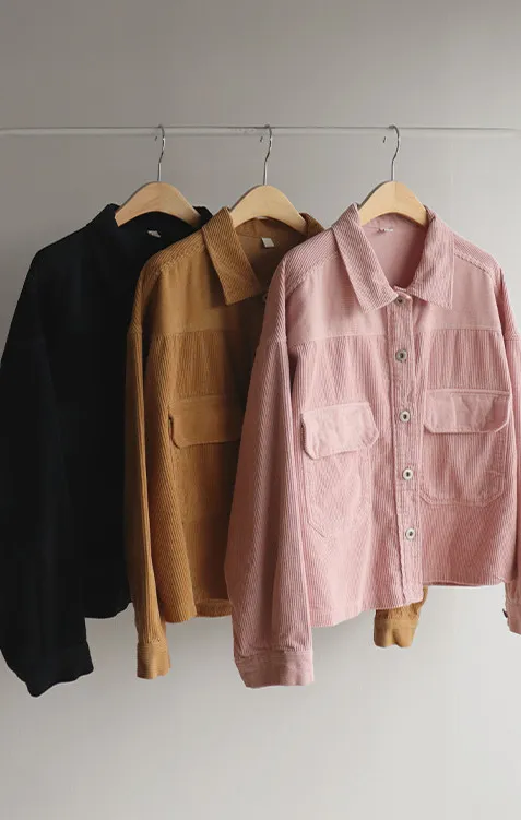 休閒氛圍大口袋舒適穿搭燈芯絨外套