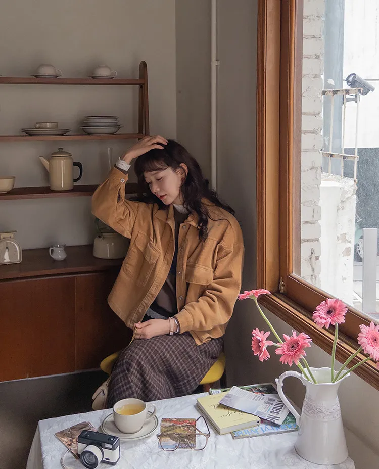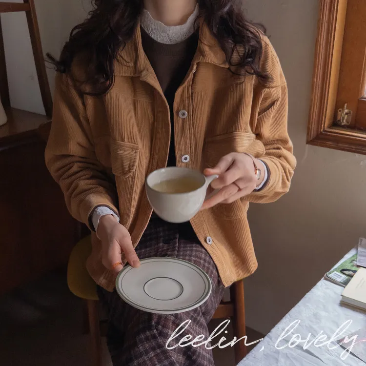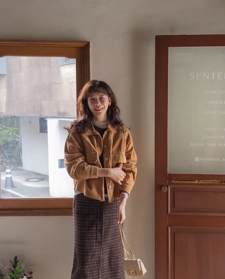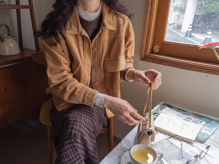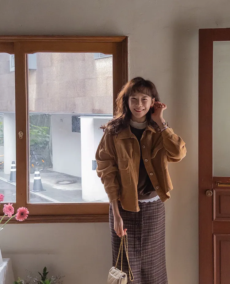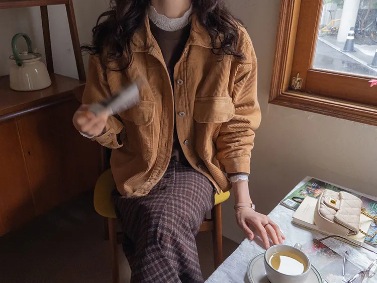 休閒氛圍大口袋舒適穿搭燈芯絨外套