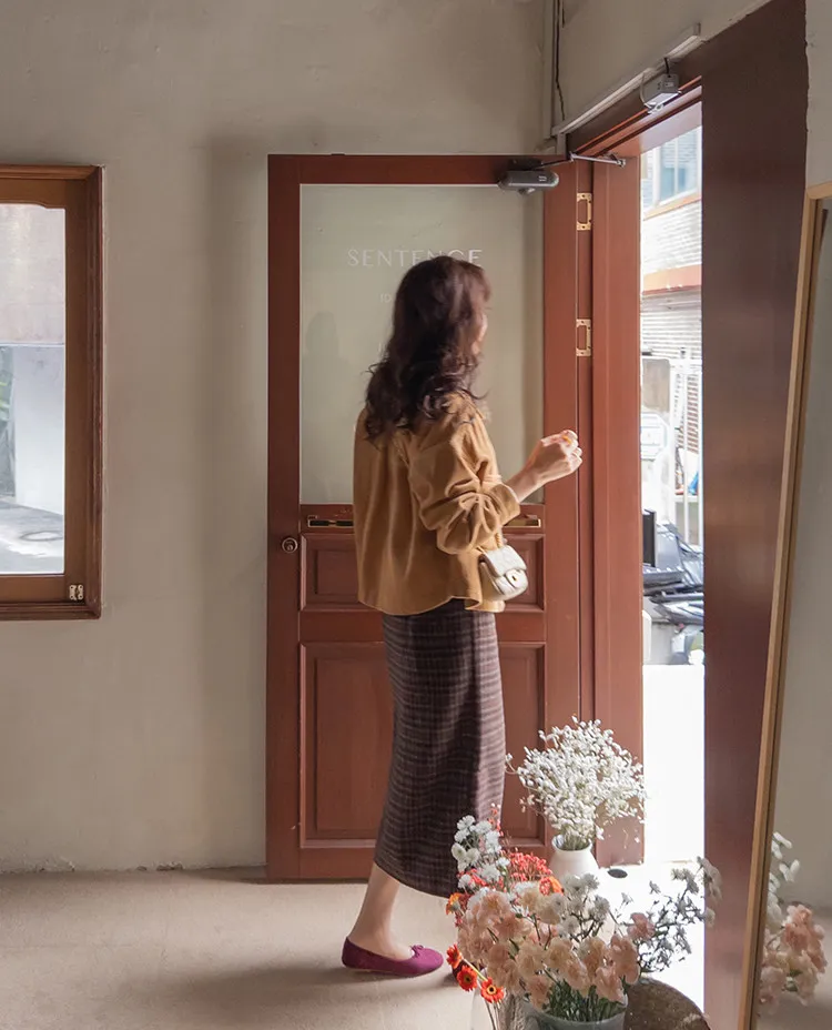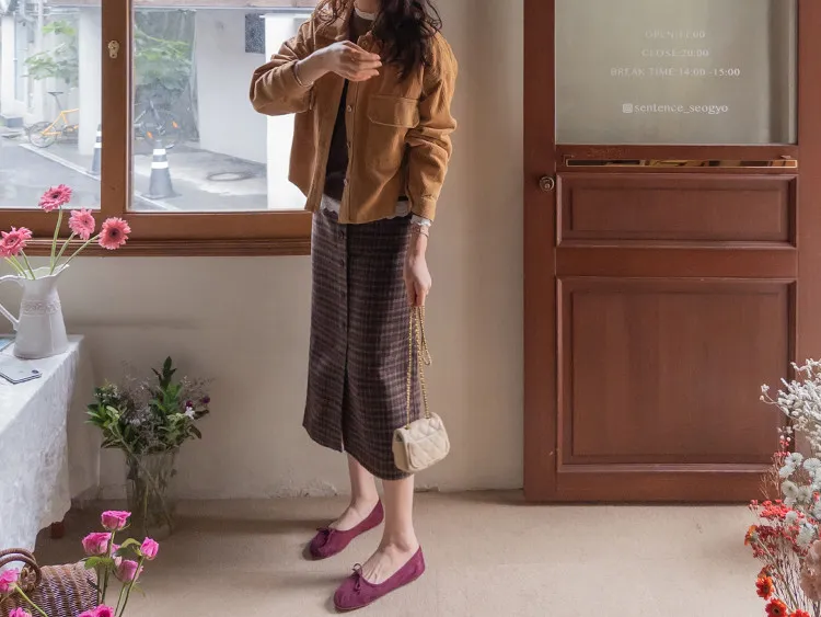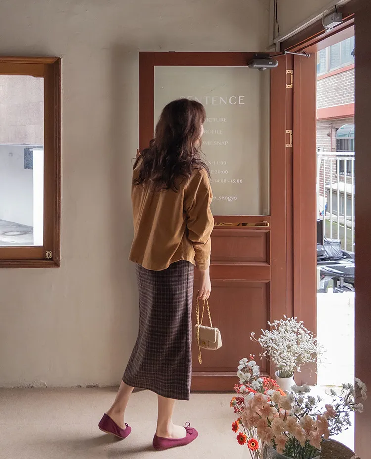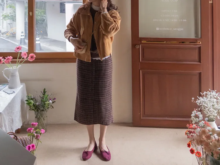 獨特魅力點綴排扣H剪裁格紋中長裙