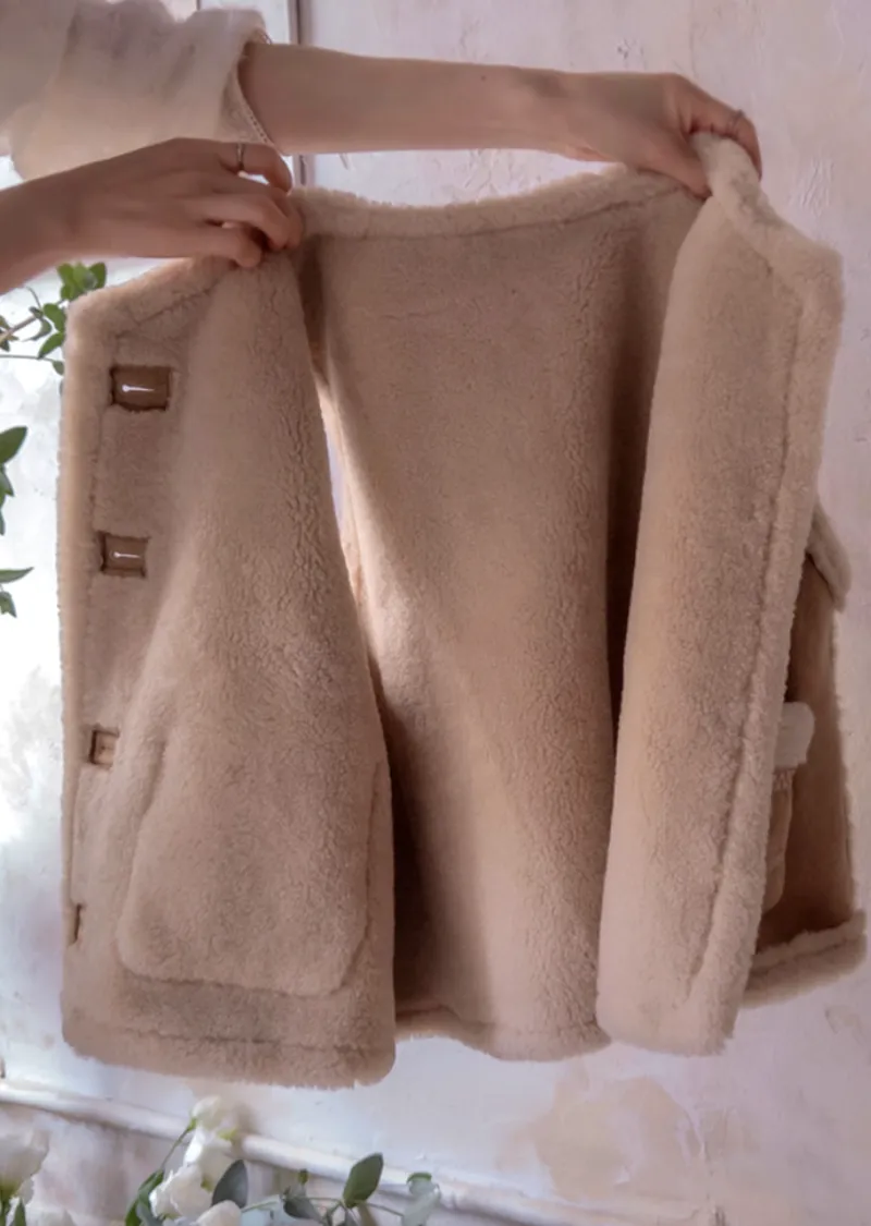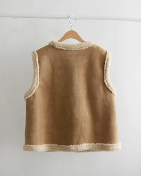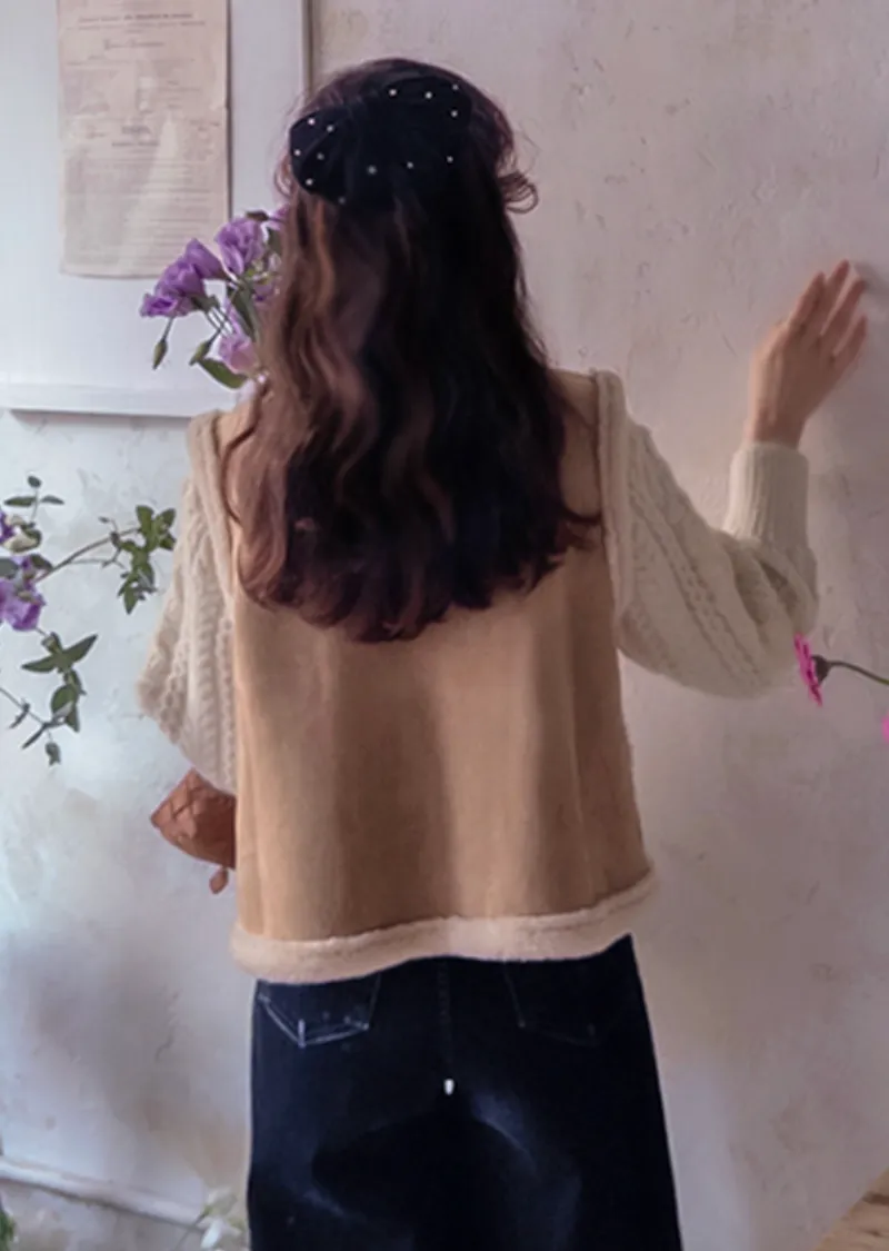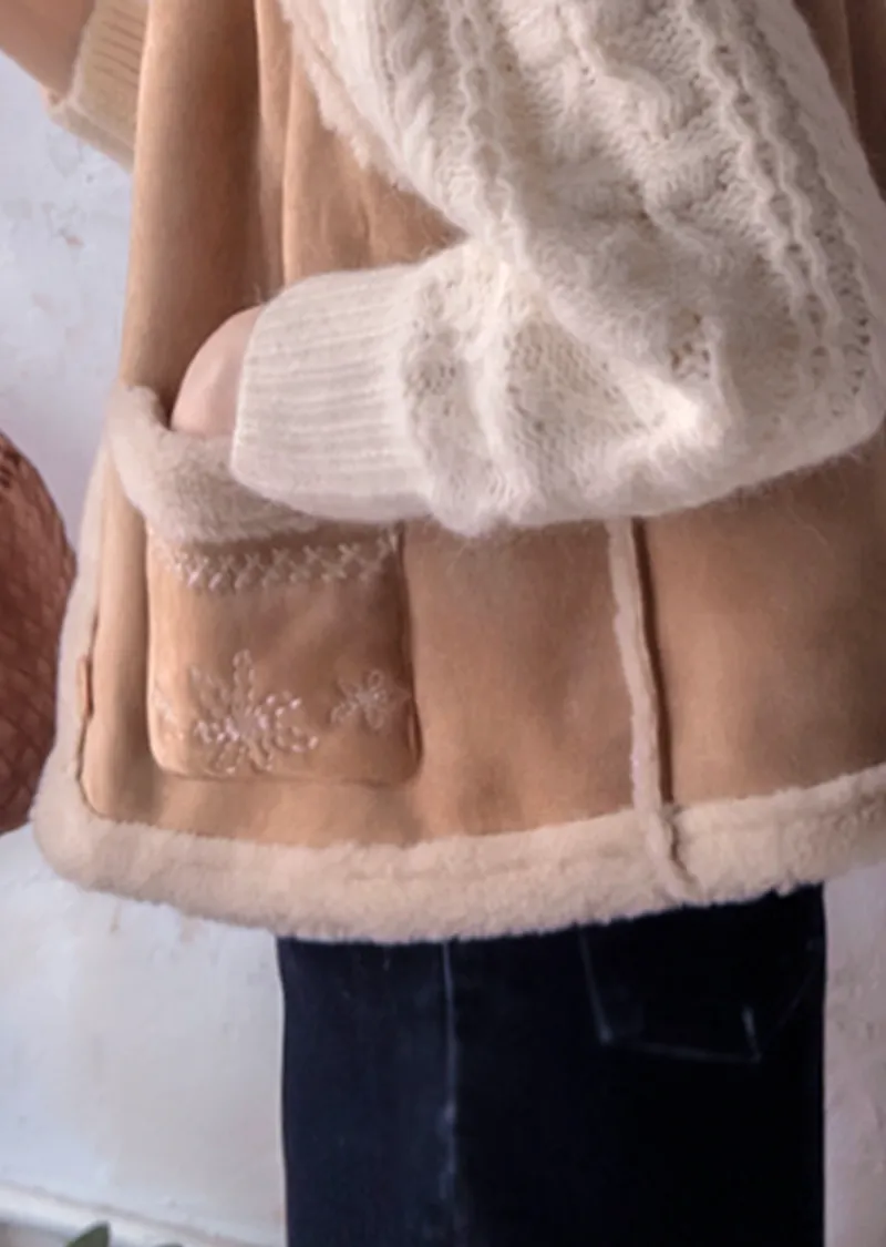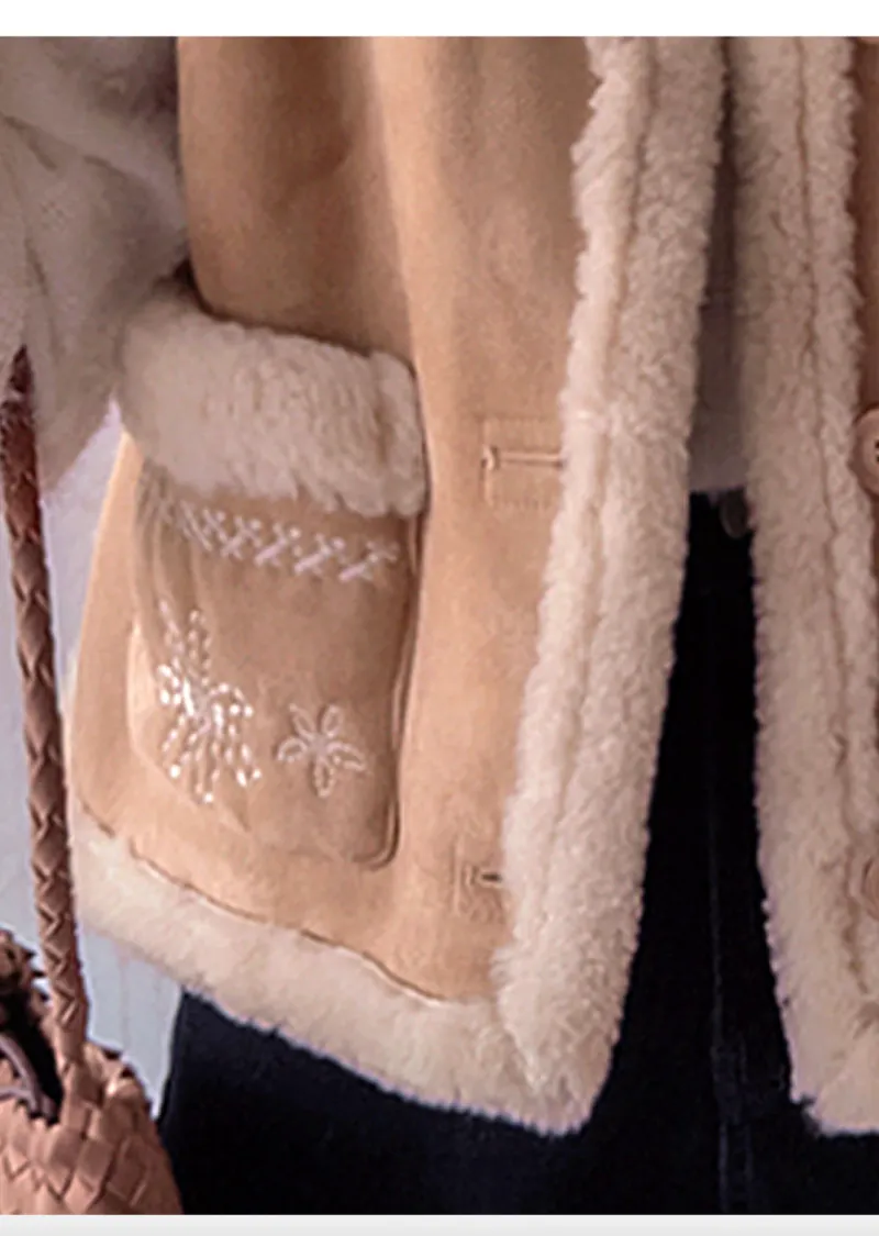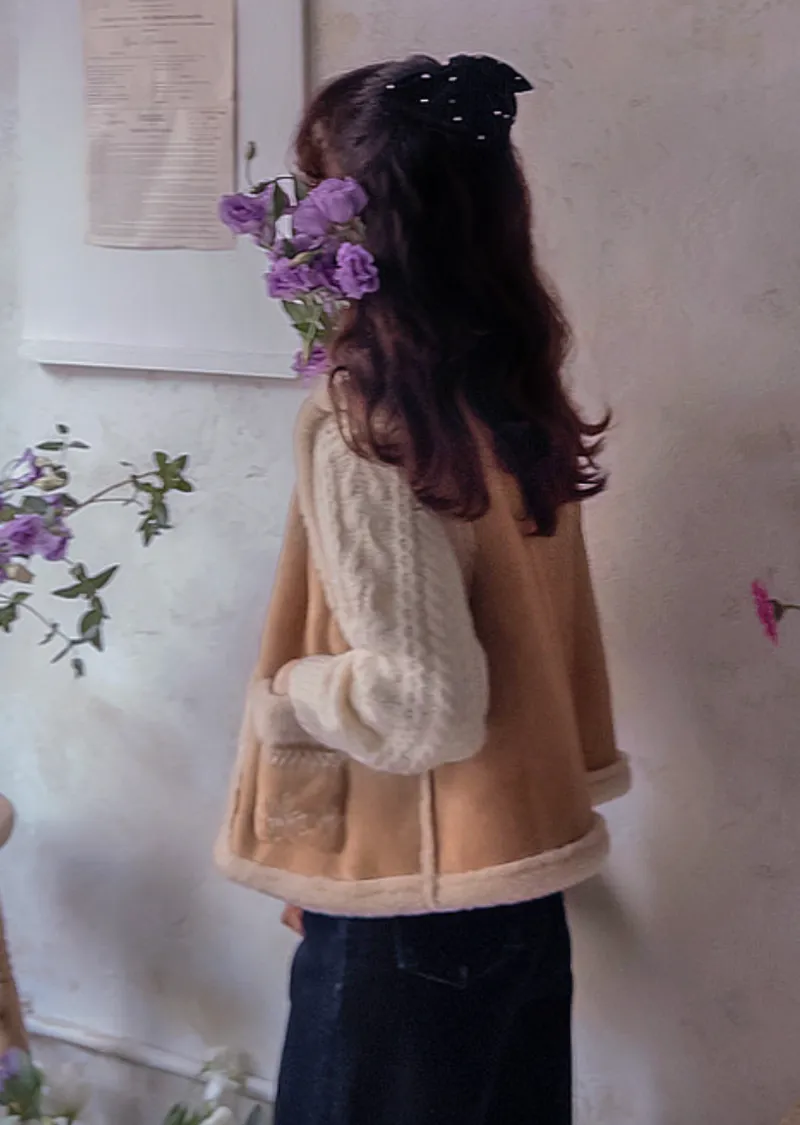 可愛花朵刺繡口袋內襯保暖麂皮背心