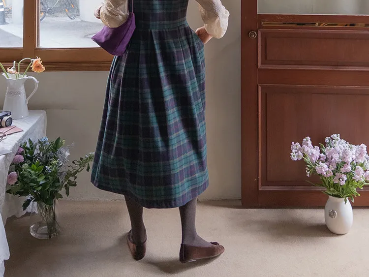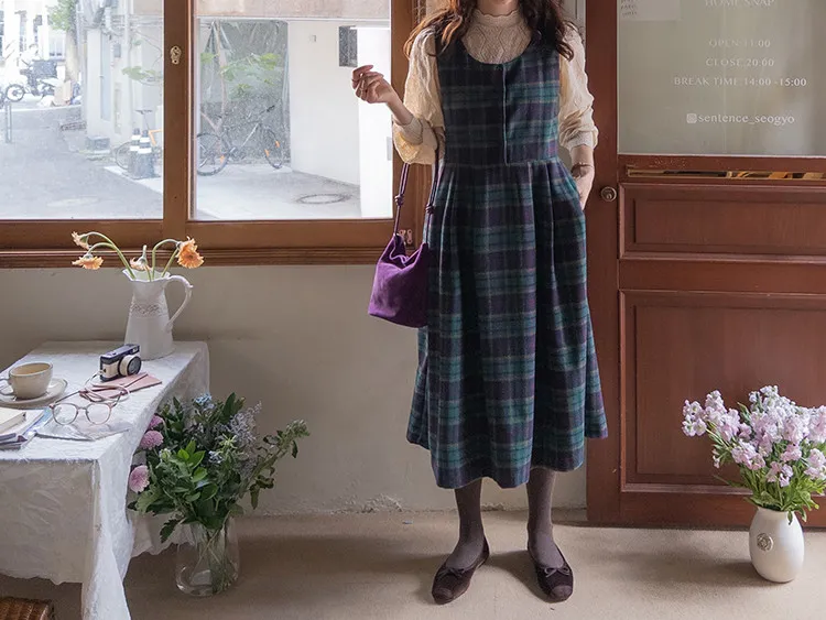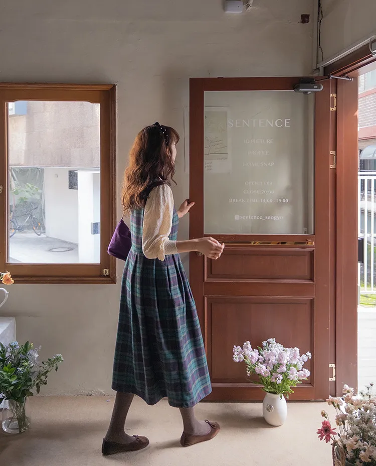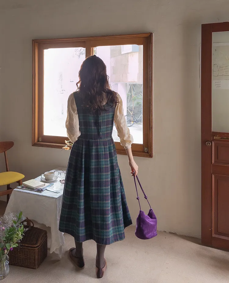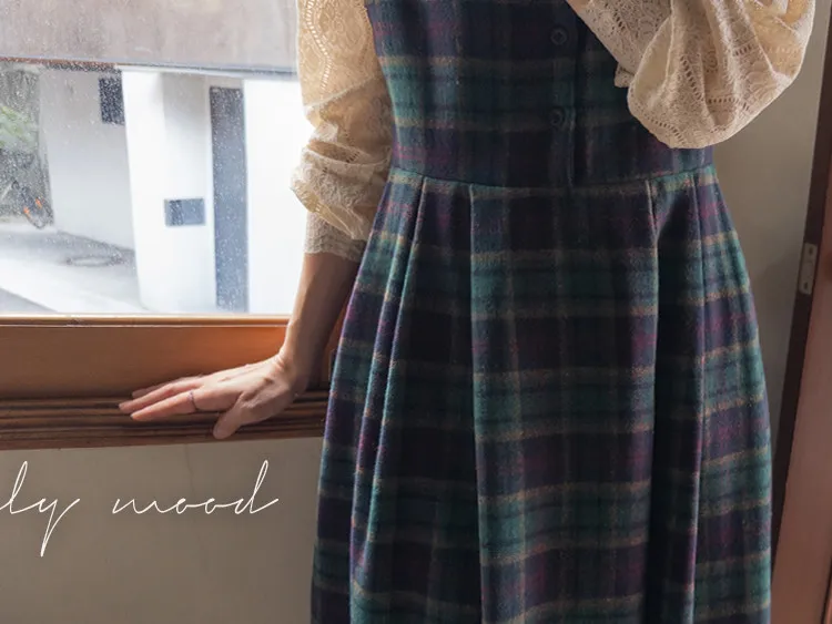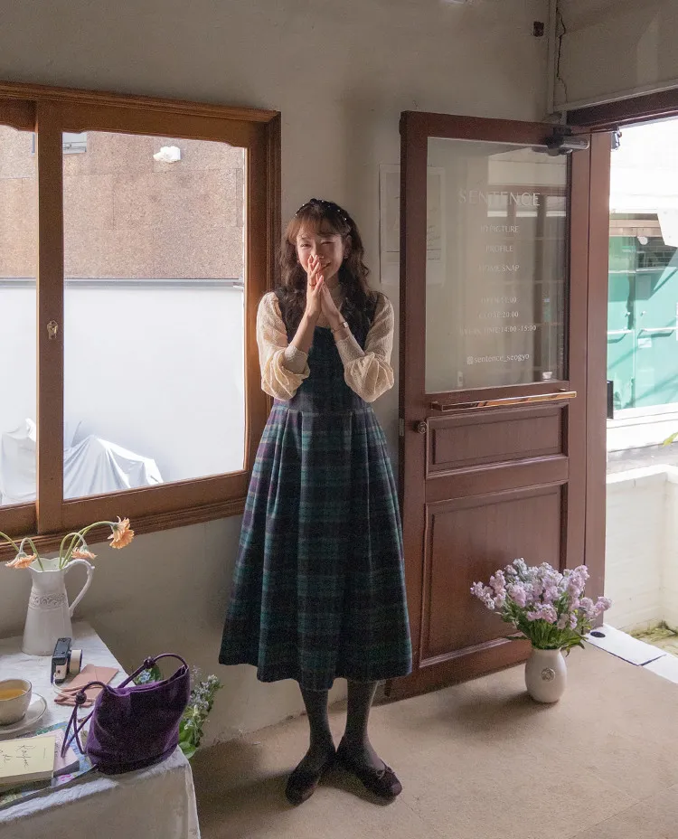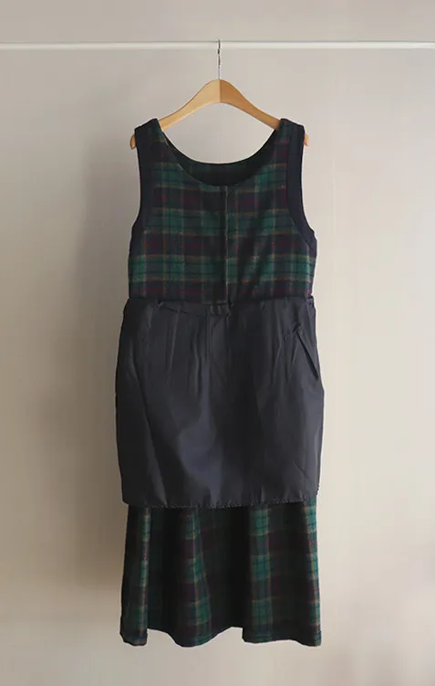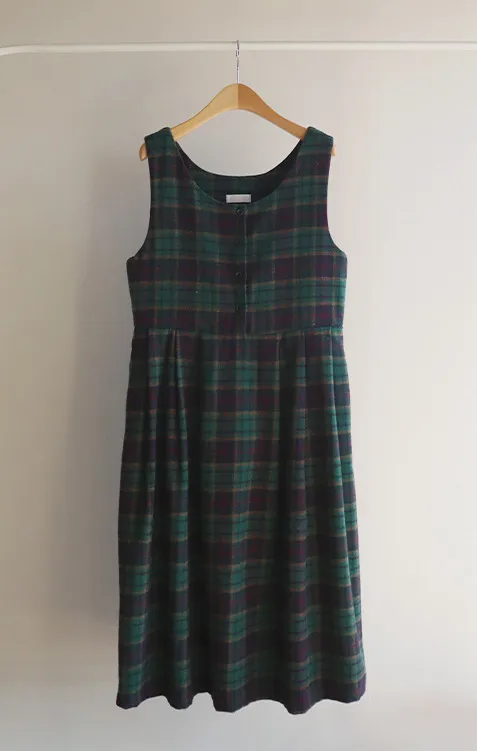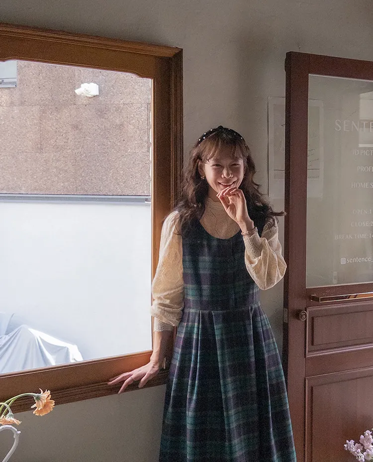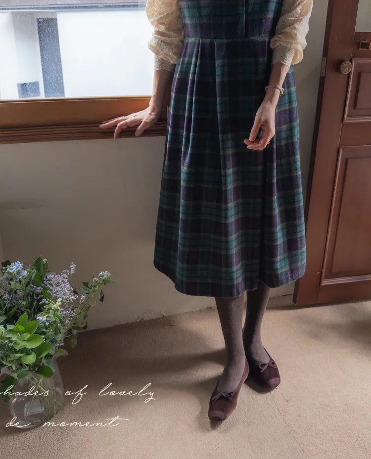 【溫暖舒適的格紋連身裙,配有羊毛內襯👗】 【前後都可以穿的雙向設計】 【根據內搭的不同,風格各異! 】 【從秋天到冬都很漂亮~】