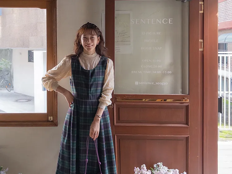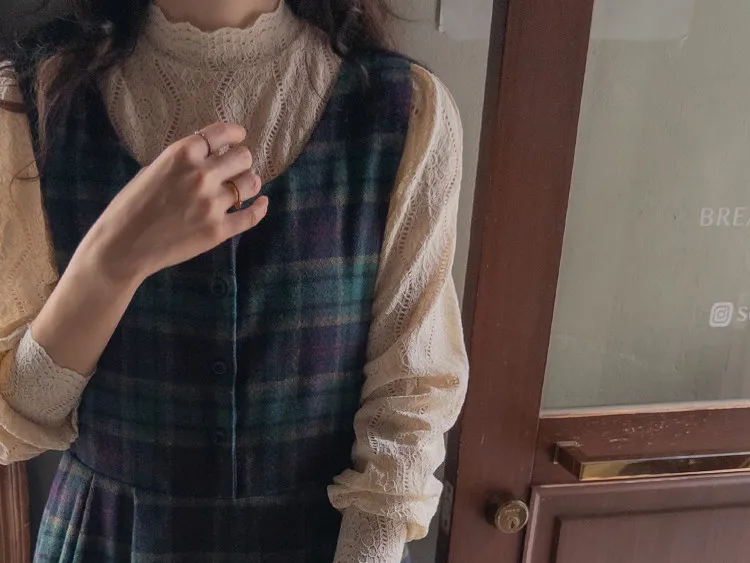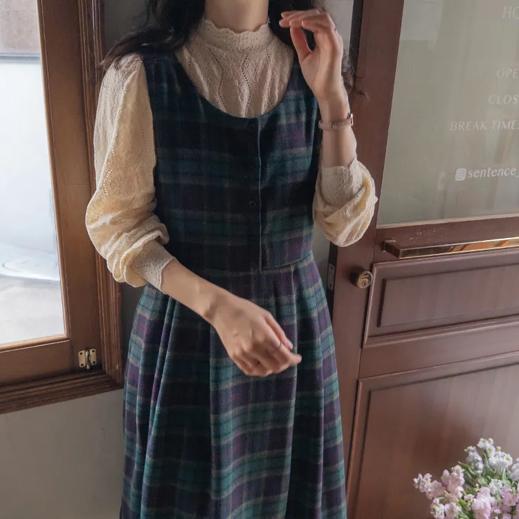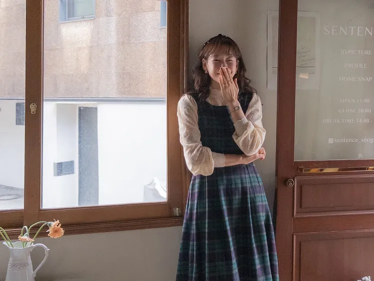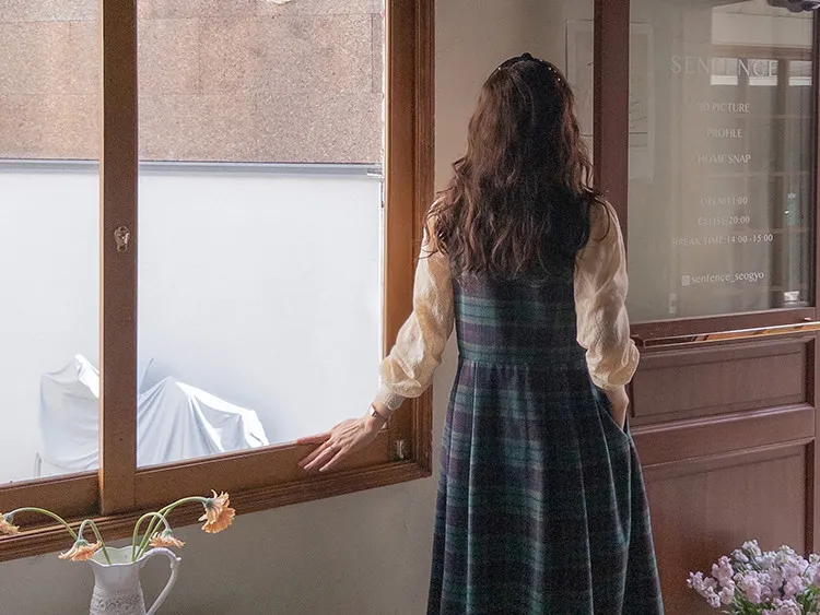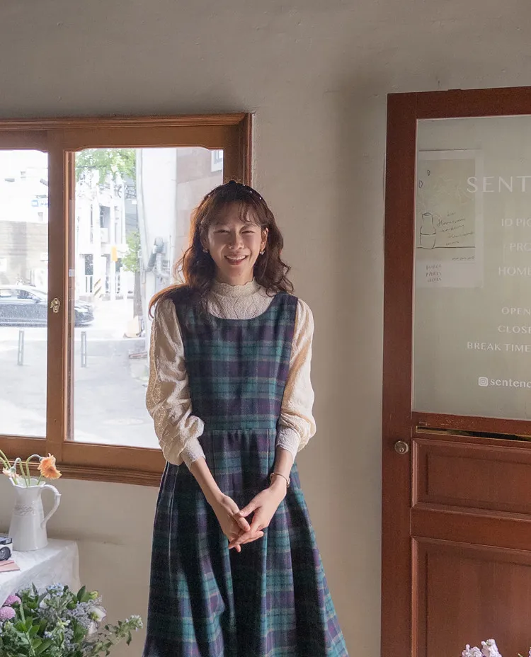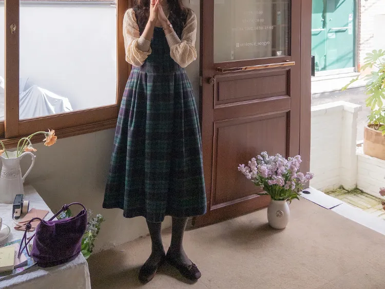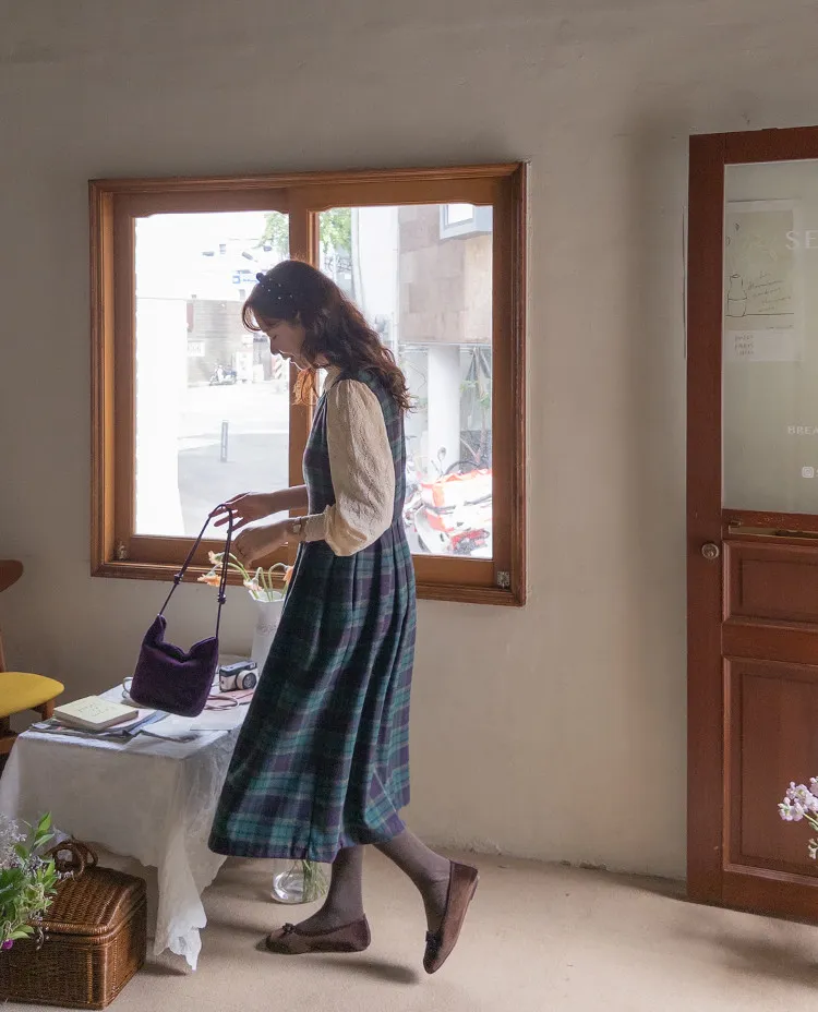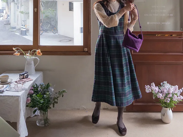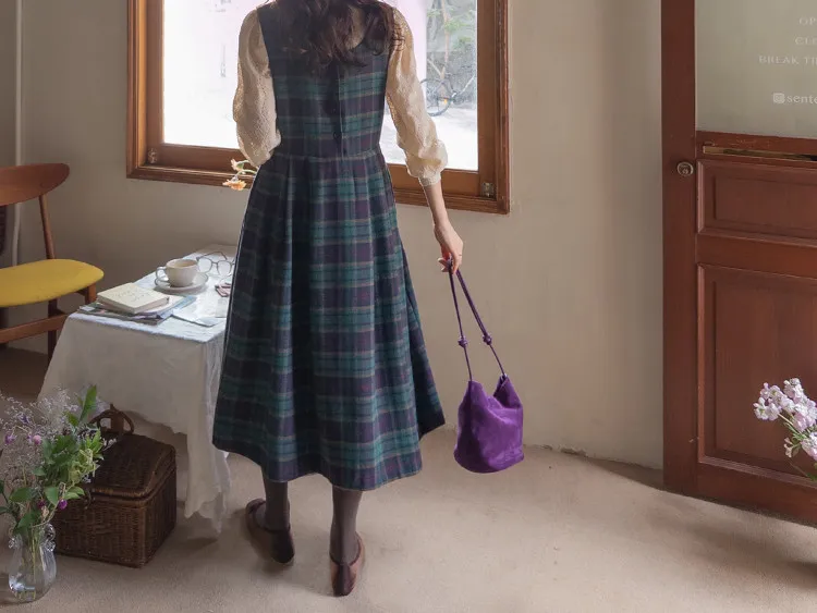 【溫暖舒適的格紋連身裙,配有羊毛內襯👗】 【前後都可以穿的雙向設計】 【根據內搭的不同,風格各異! 】 【從秋天到冬都很漂亮~】
