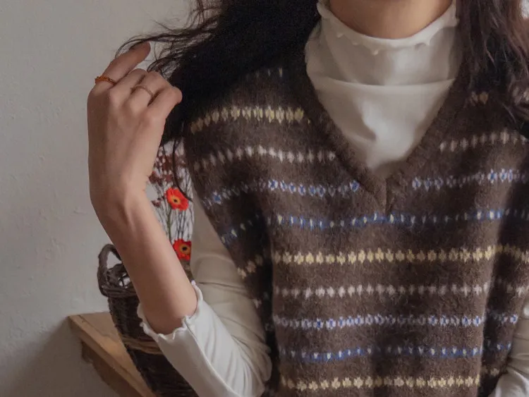 秋冬氛圍顏色線條緹花穿搭針織背心