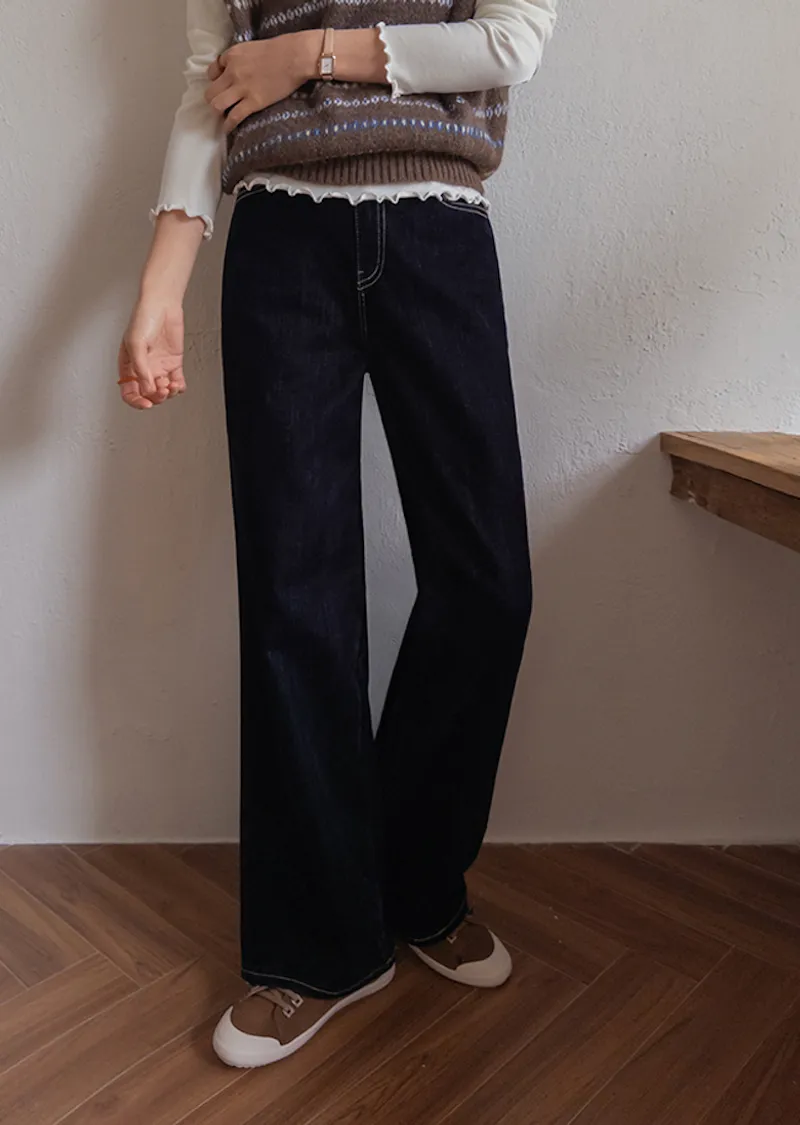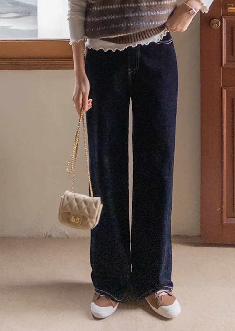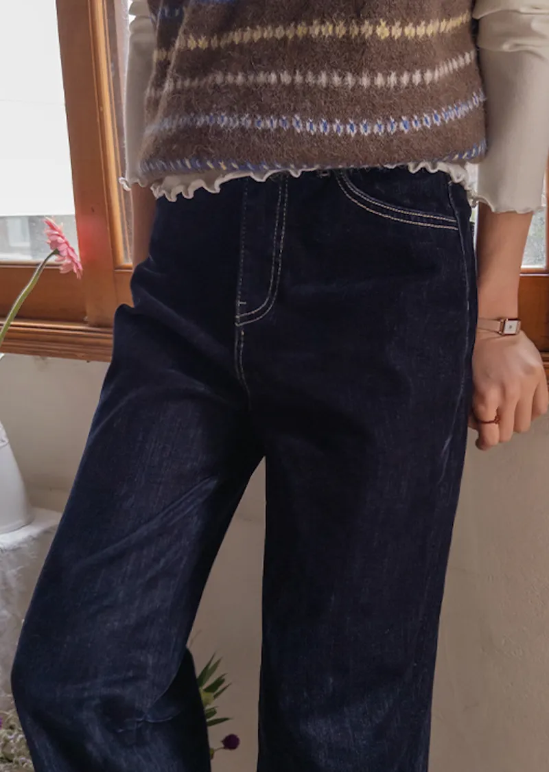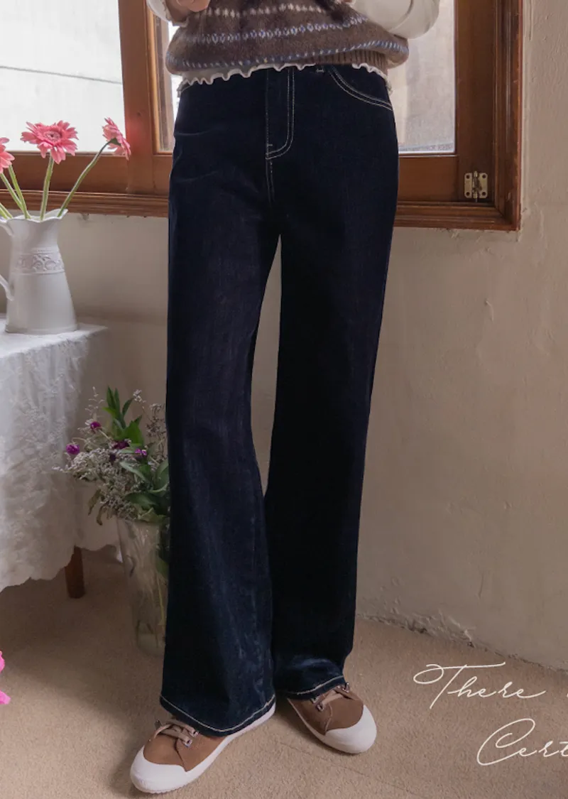 [奢華的天鵝絨牛仔褲] [隨著光線變化的微妙光澤] [適合每年長期穿著的材質] [舒適的全腰隱形彈性帶]