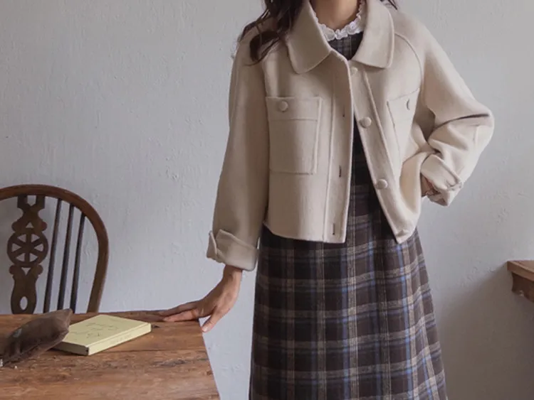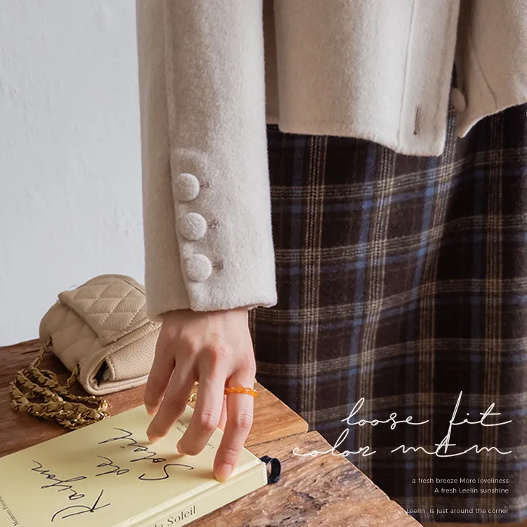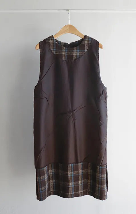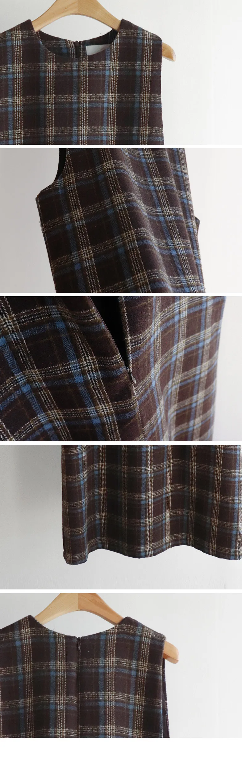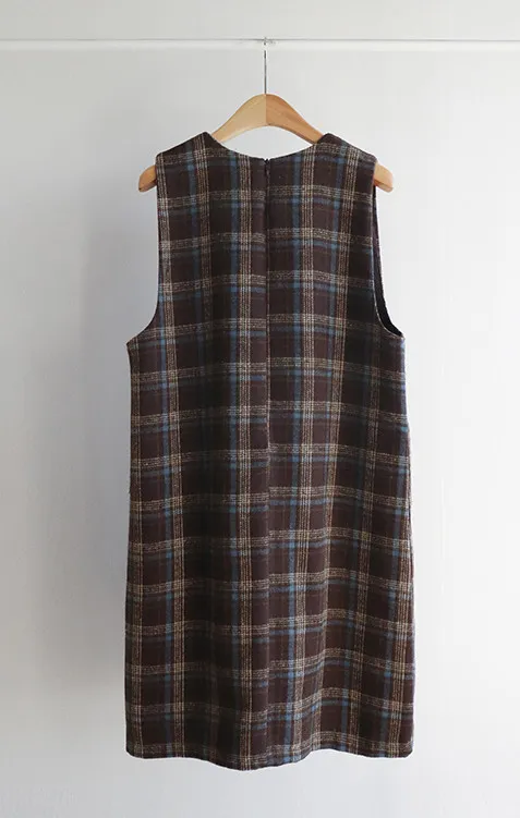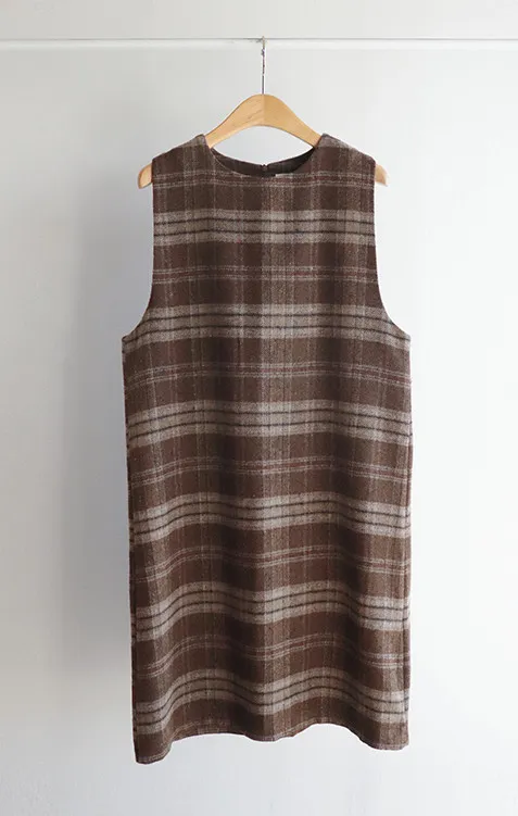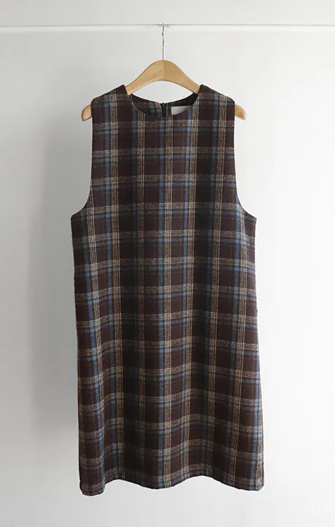[帶有格紋圖案的百搭冬季穿搭連身裙♥] [羊毛混紡,可整個冬天穿著〜^^] [寬袖孔,舒適] [中長款也適合支撐身形-! ]