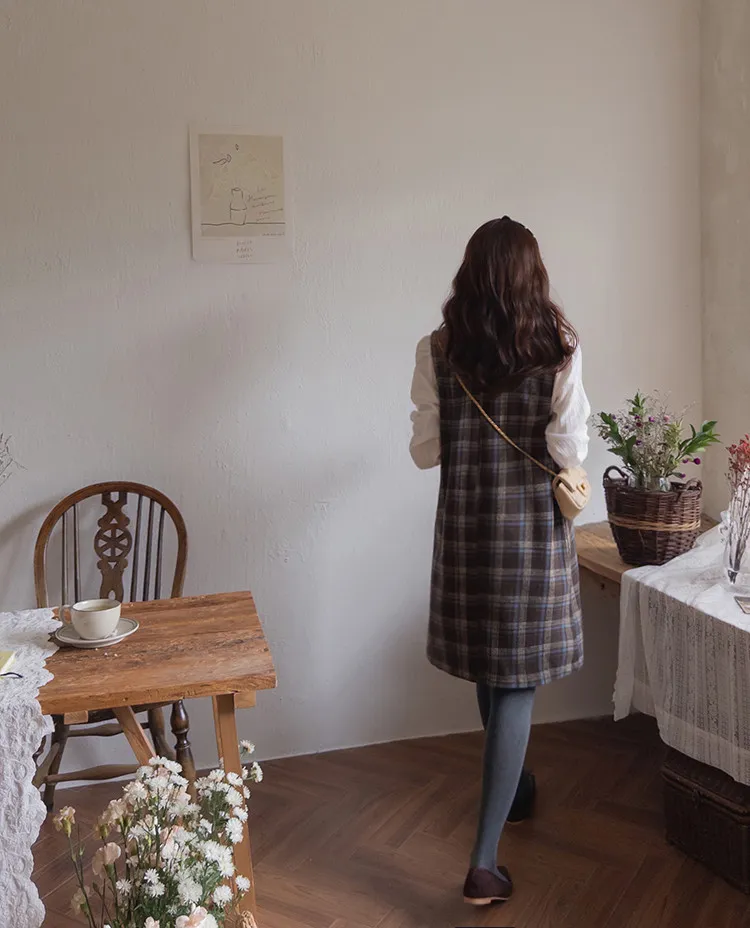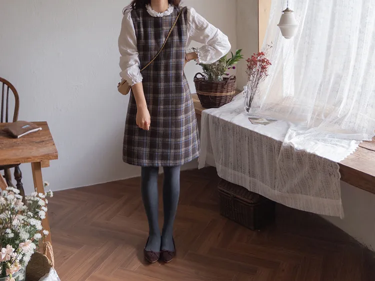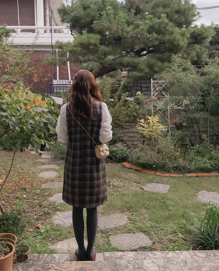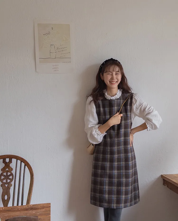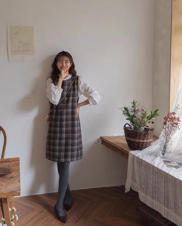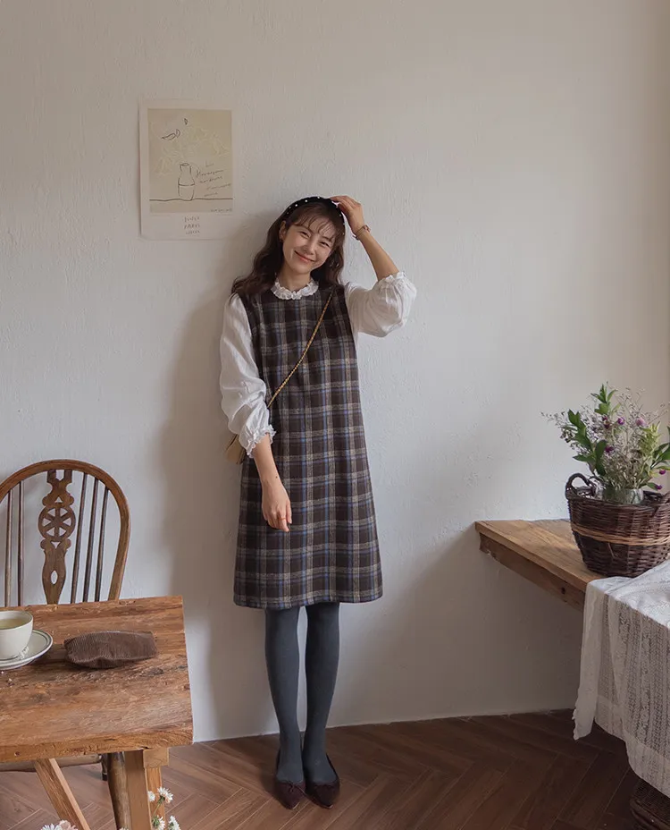 可愛秋冬氛圍格紋穿搭連身裙