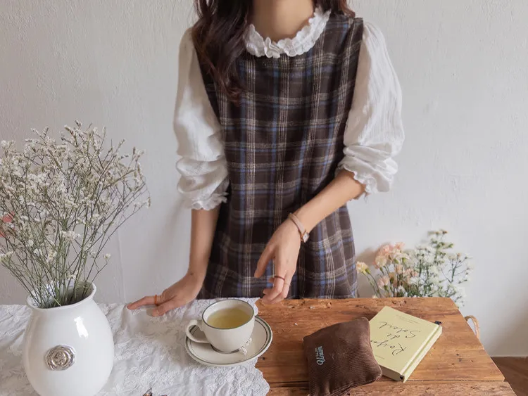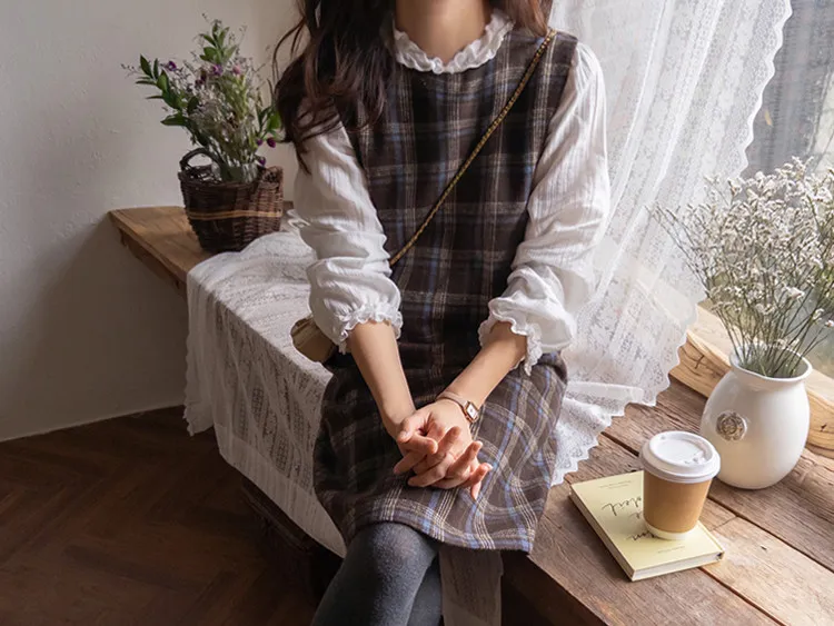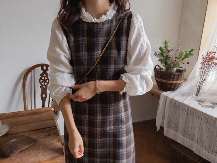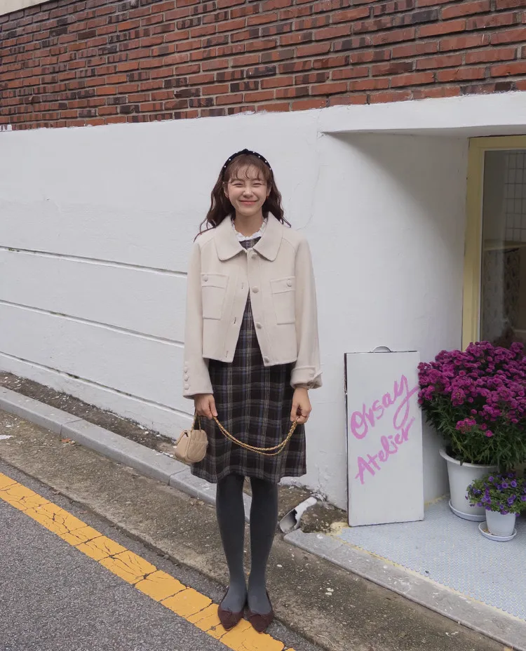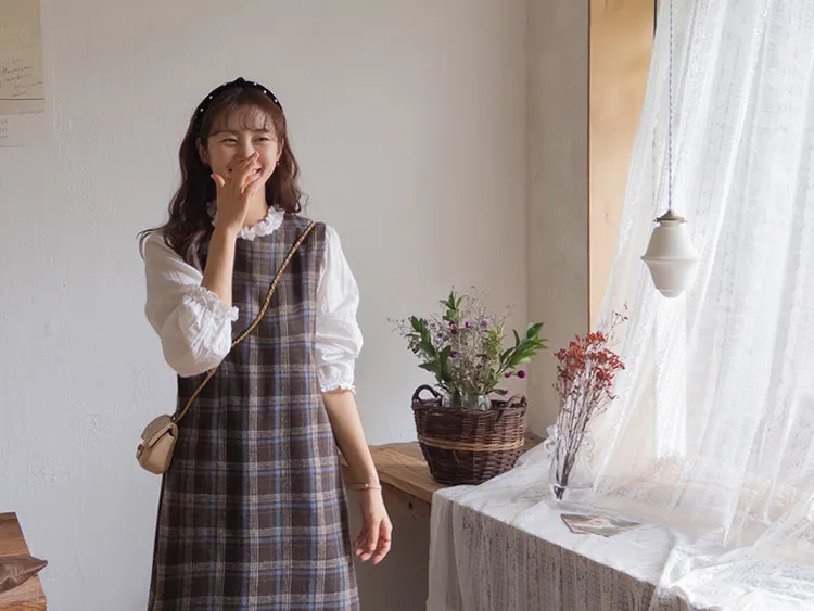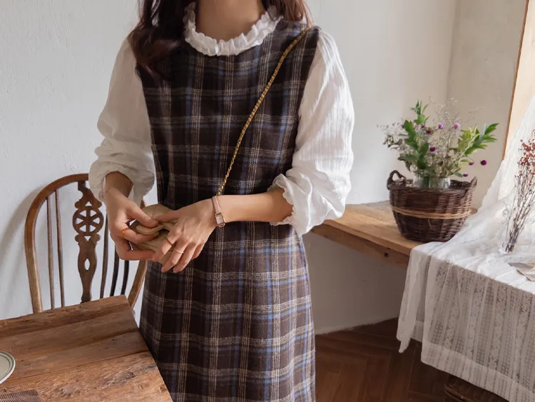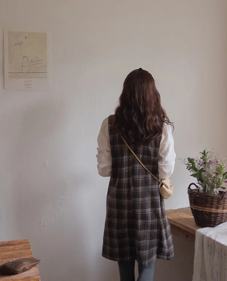可愛秋冬氛圍格紋穿搭連身裙