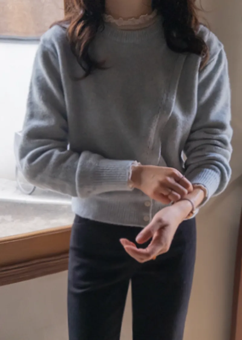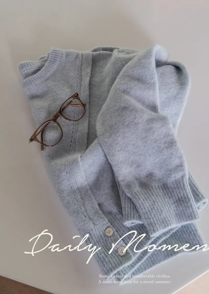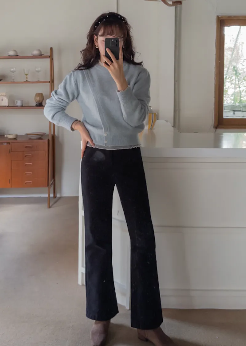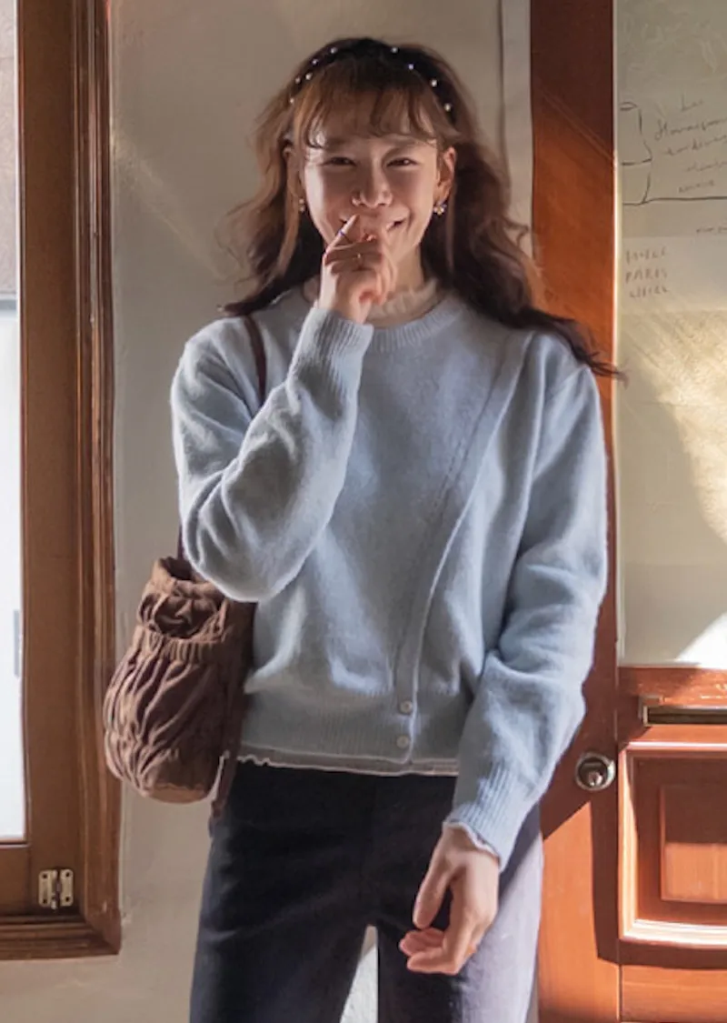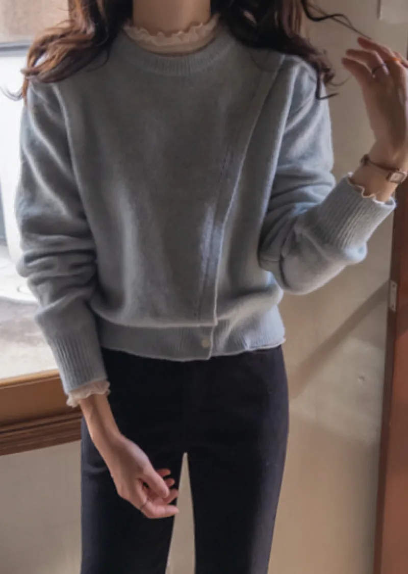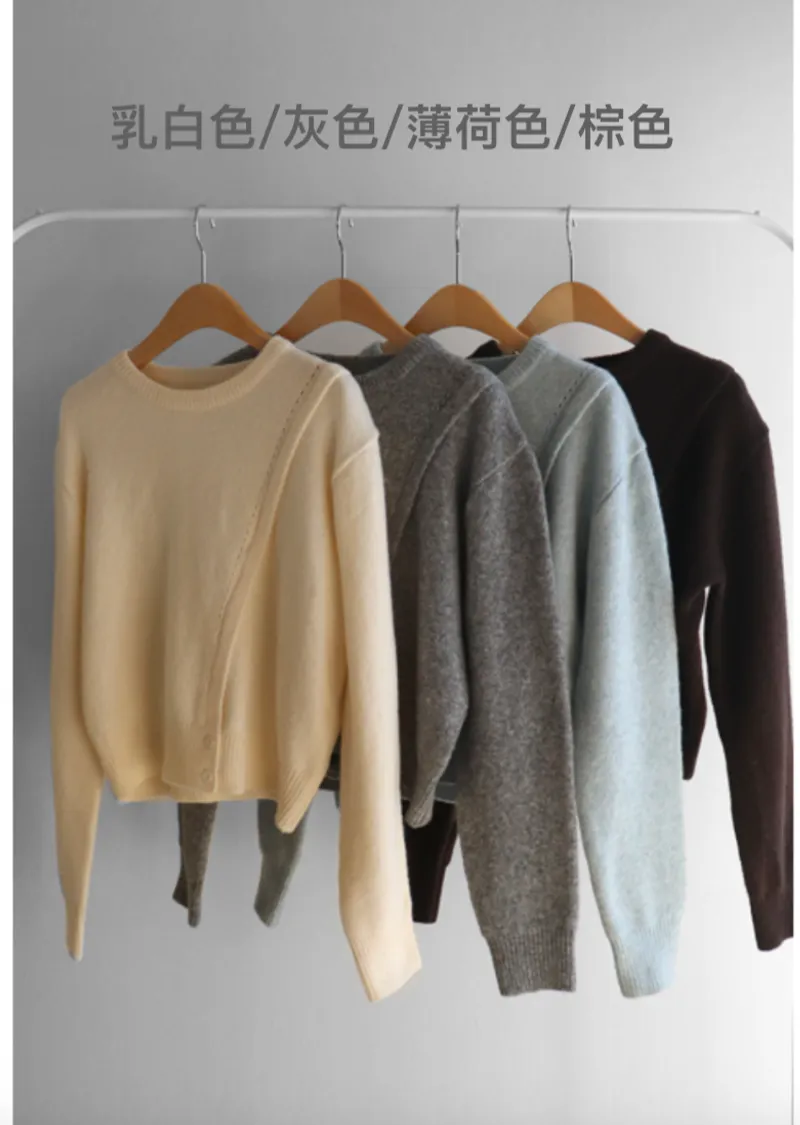 [斜角鈕扣細節的舒適針織💞] [質地柔軟的材質] [適合搭配任何下裝的中短款] [無論搭配什麼造型都能打造平靜的心情-! ]