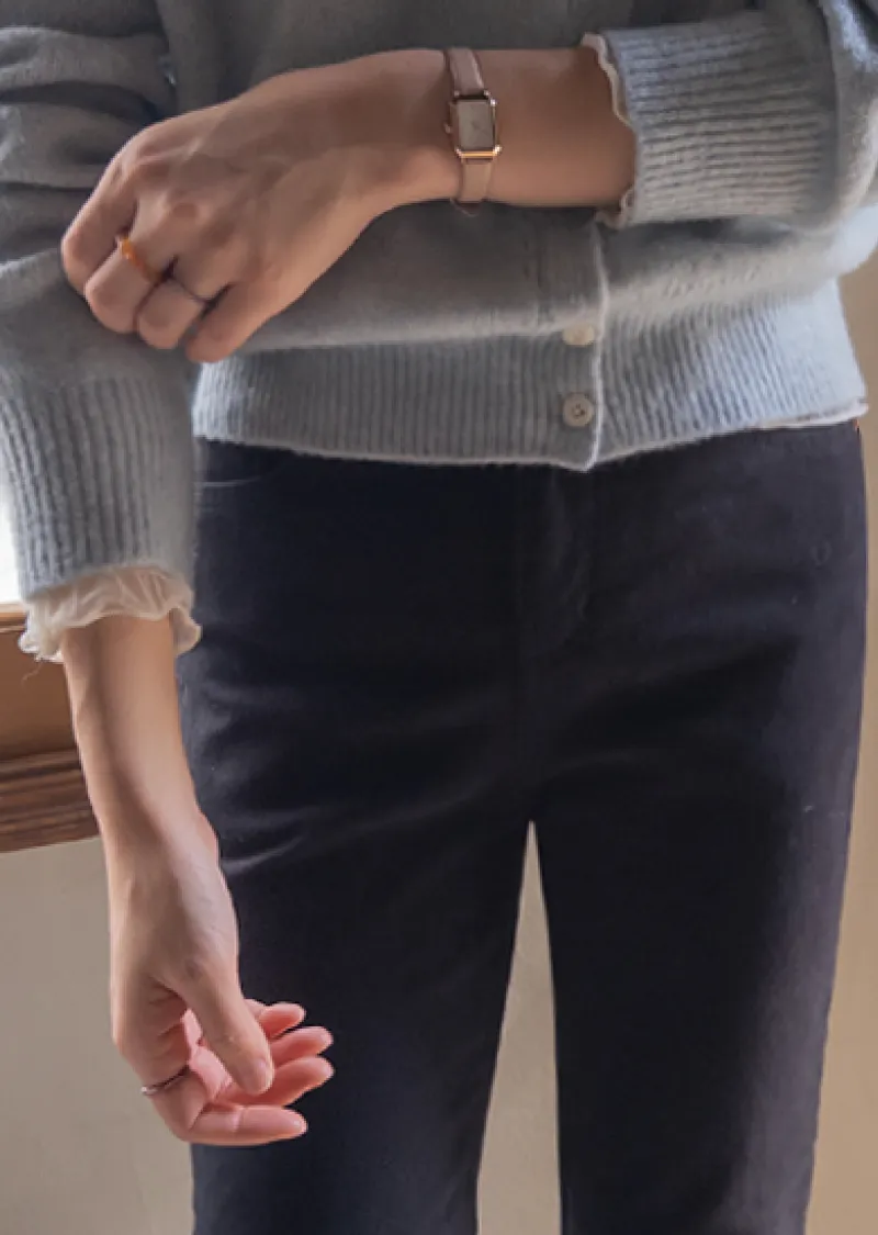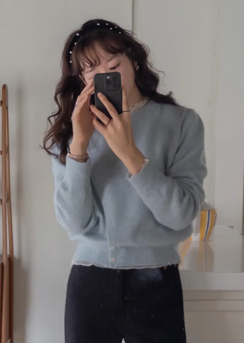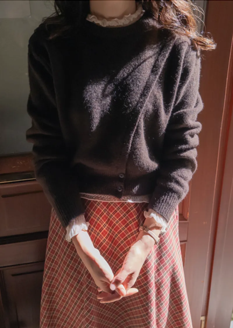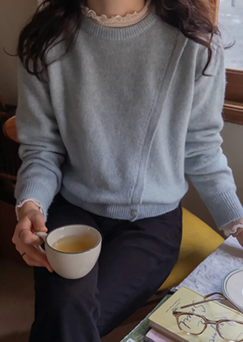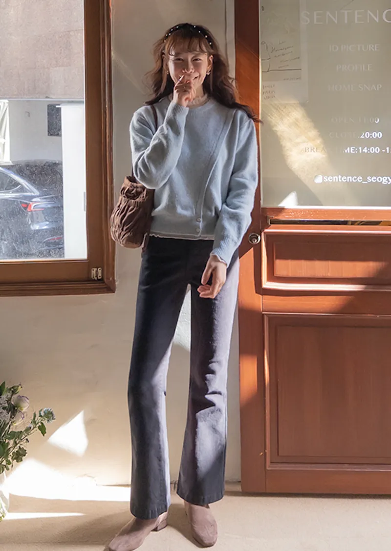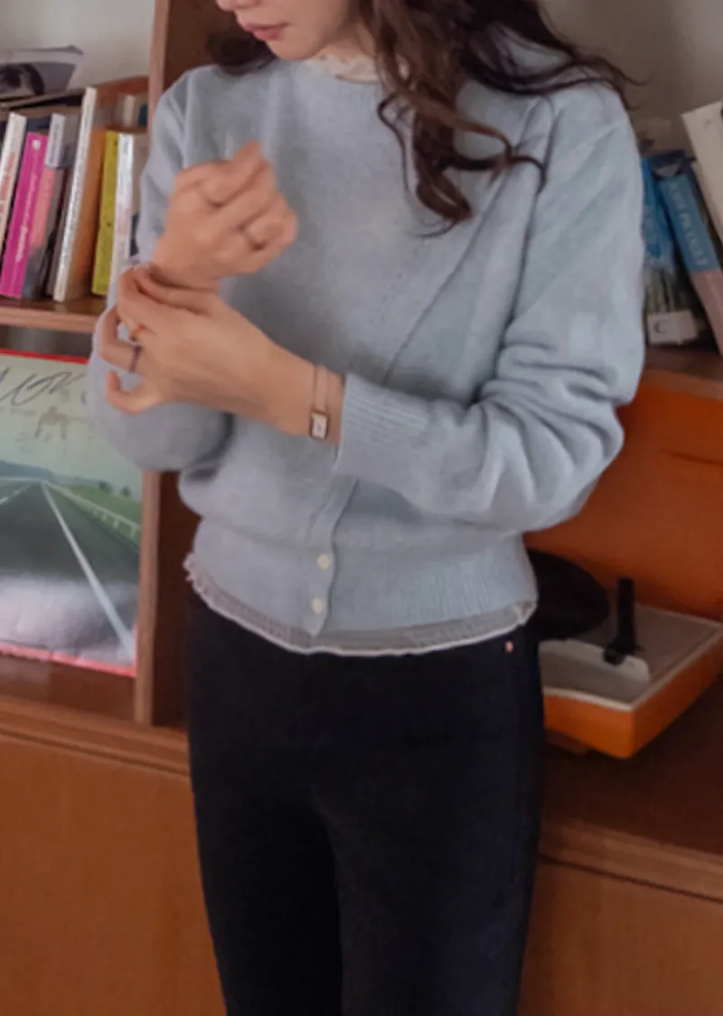 [斜角鈕扣細節的舒適針織💞] [質地柔軟的材質] [適合搭配任何下裝的中短款] [無論搭配什麼造型都能打造平靜的心情-! ]