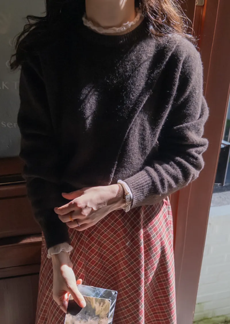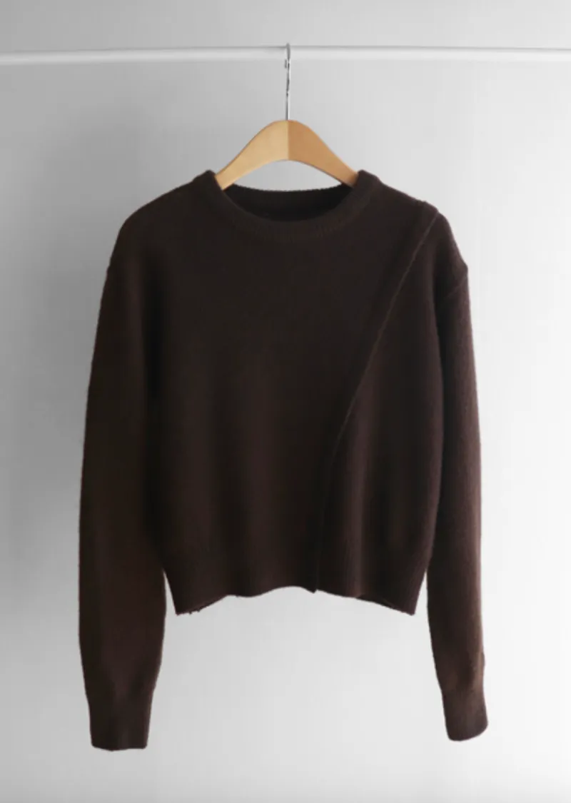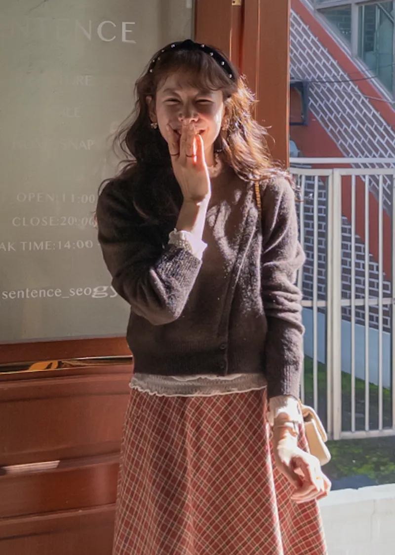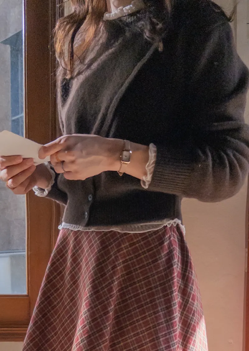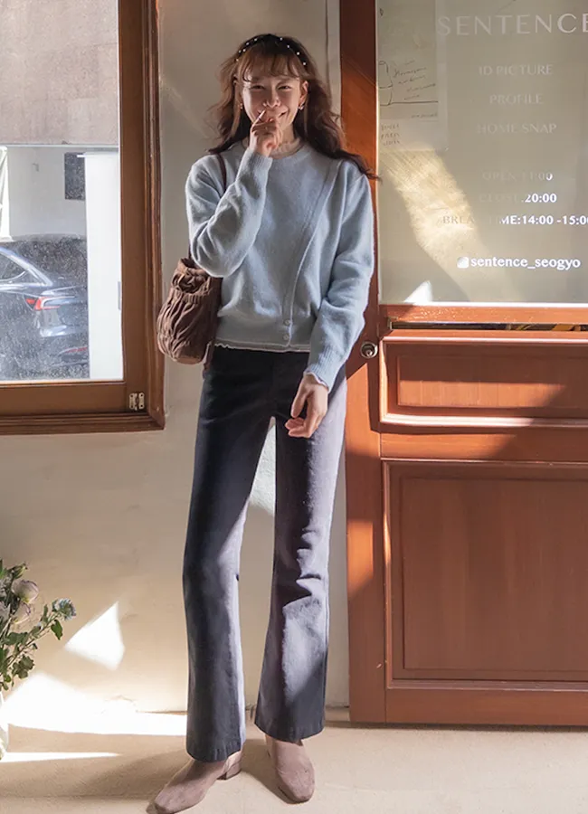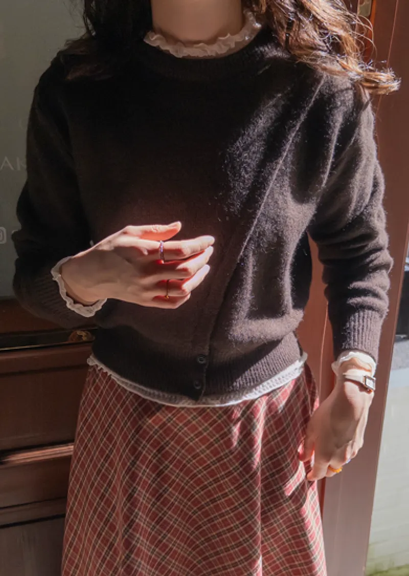 [斜角鈕扣細節的舒適針織💞] [質地柔軟的材質] [適合搭配任何下裝的中短款] [無論搭配什麼造型都能打造平靜的心情-! ]
