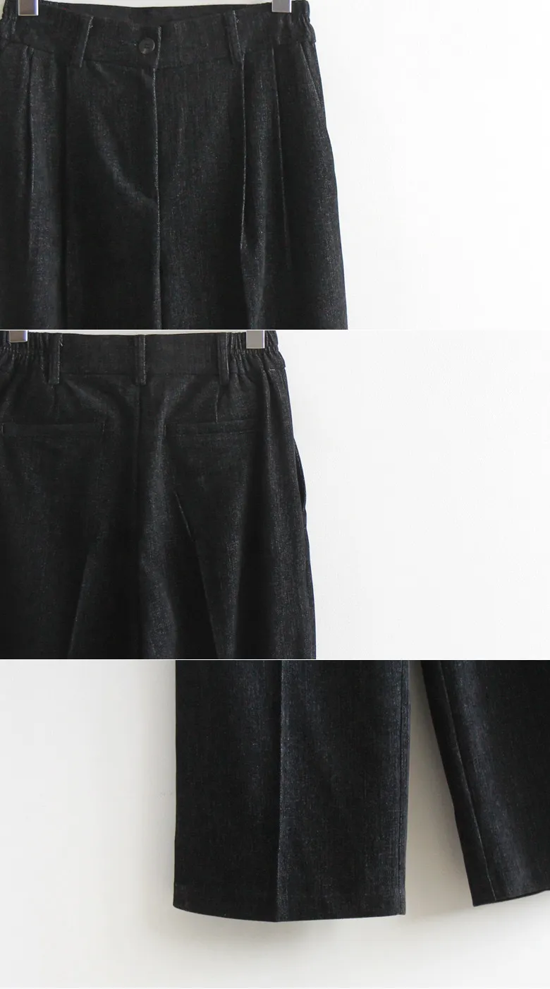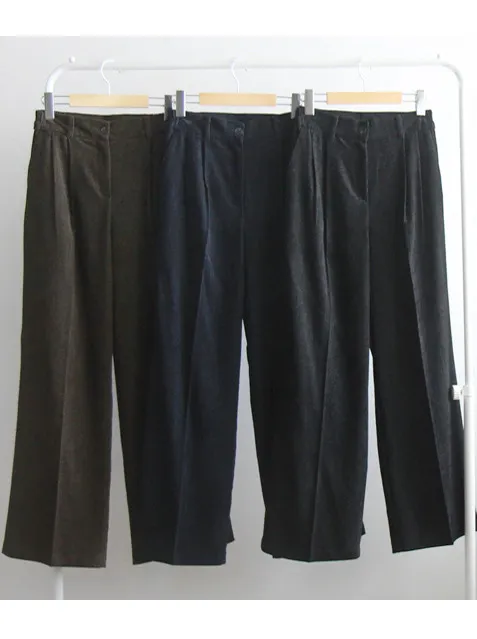 秋冬溫暖舒適彈性雙褶修身休閒褲